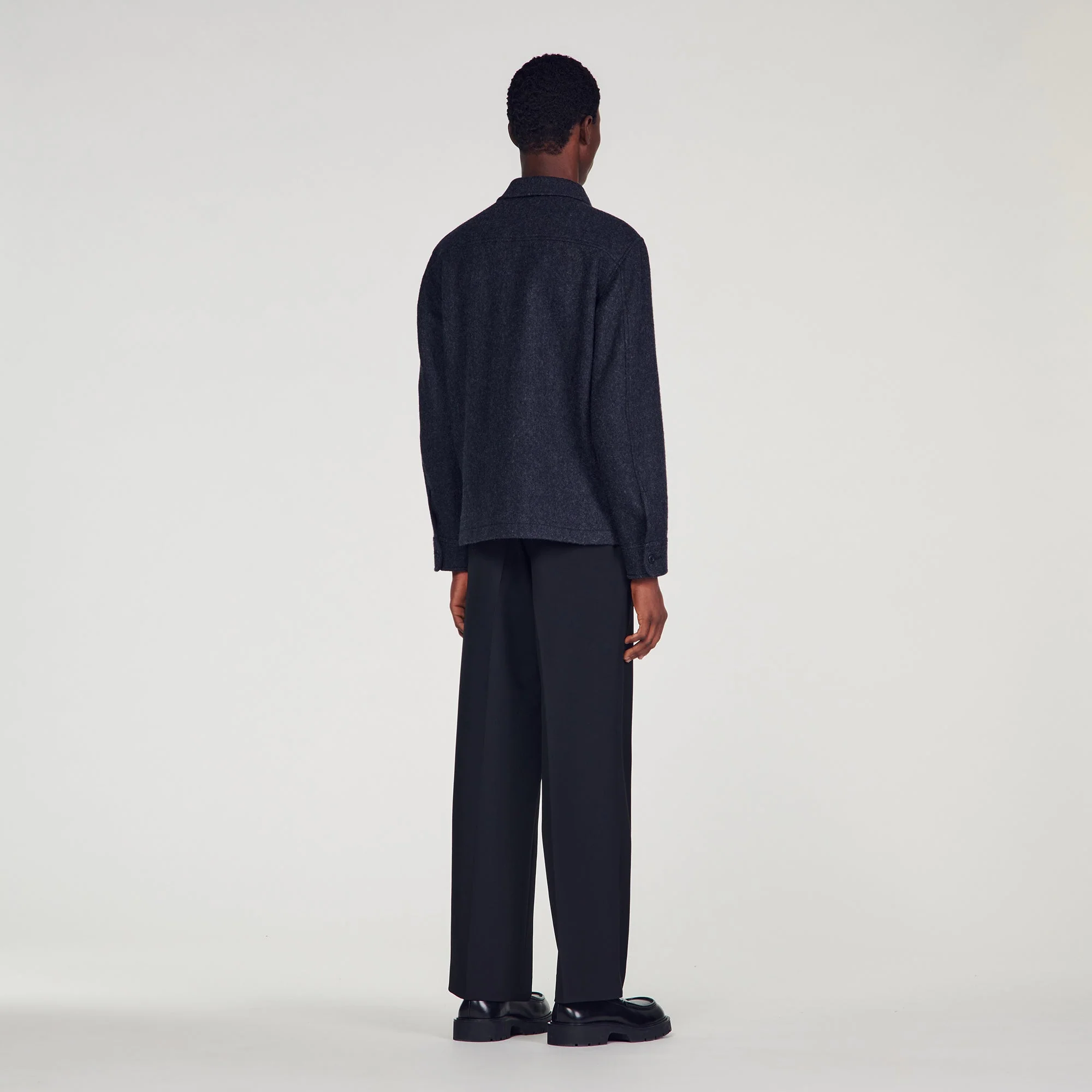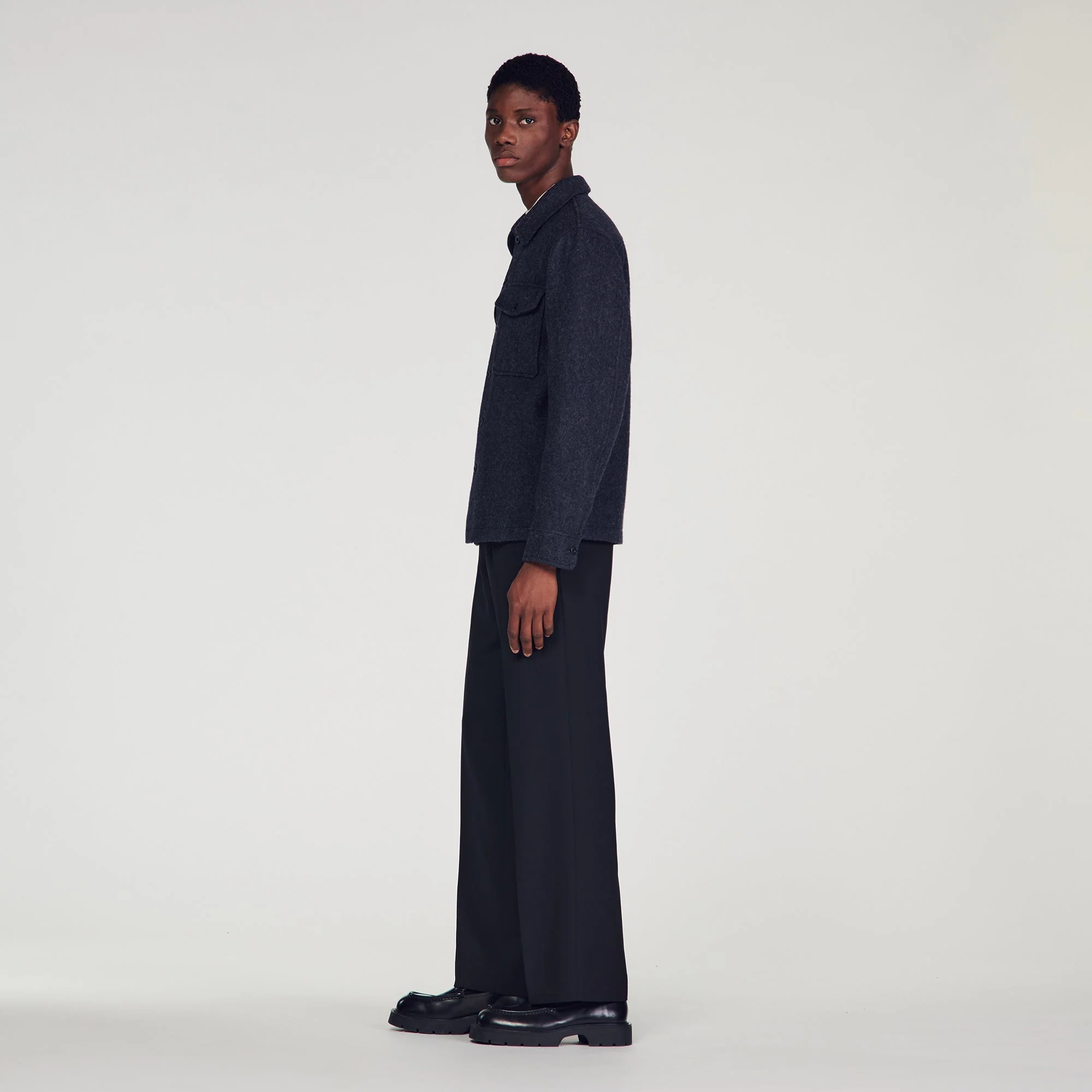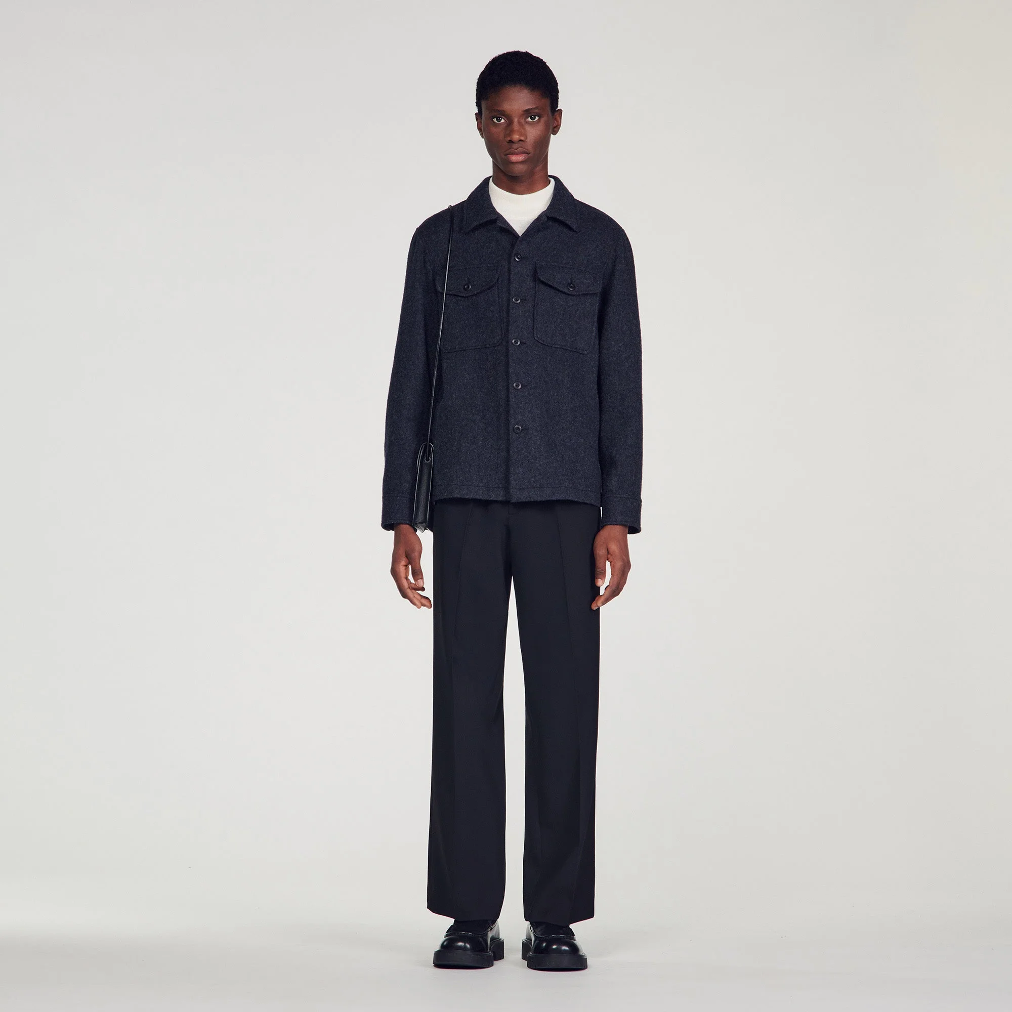 Sobrecamisa de lana con cierre de cotones, mangas largas con puños abotonados, bolsillos con solapa en el pecho y aberturas laterales.• Sobrecamisa de lana Sandro
