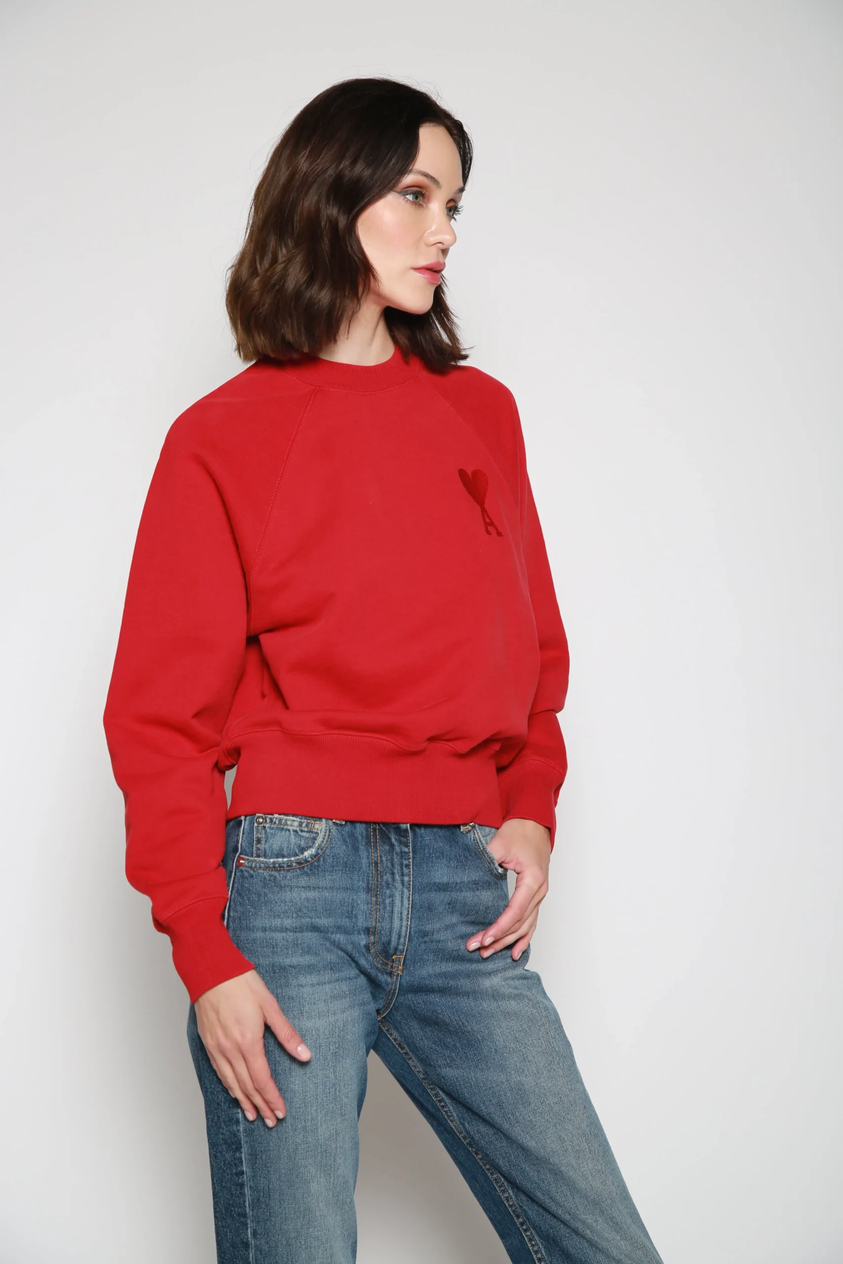 Sudadera Big Ami Rojo , marca AMI Paris. CONSULTAR COMPOSICIÓN Y CUIDADOS EN ETIQUETA INTERNA.