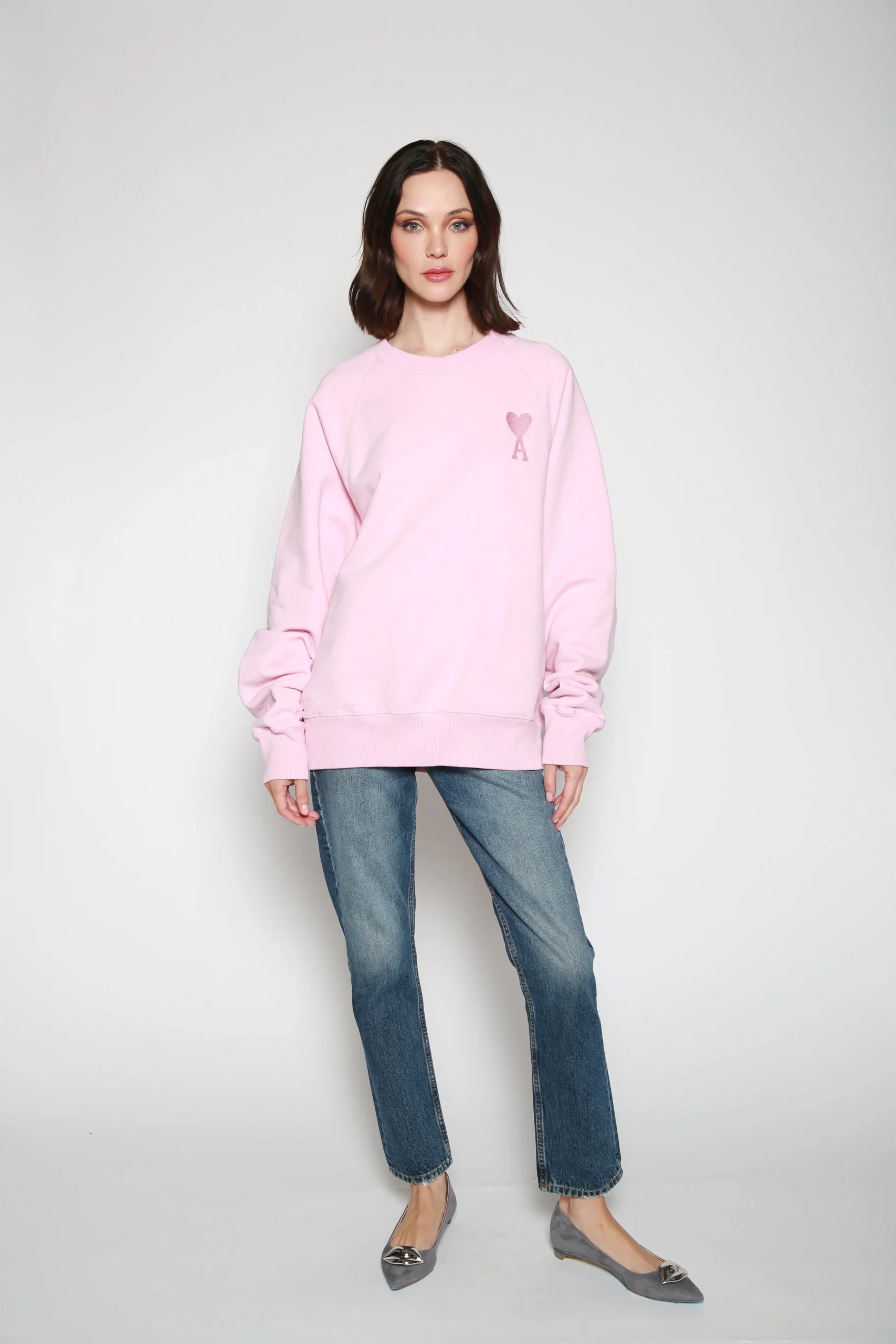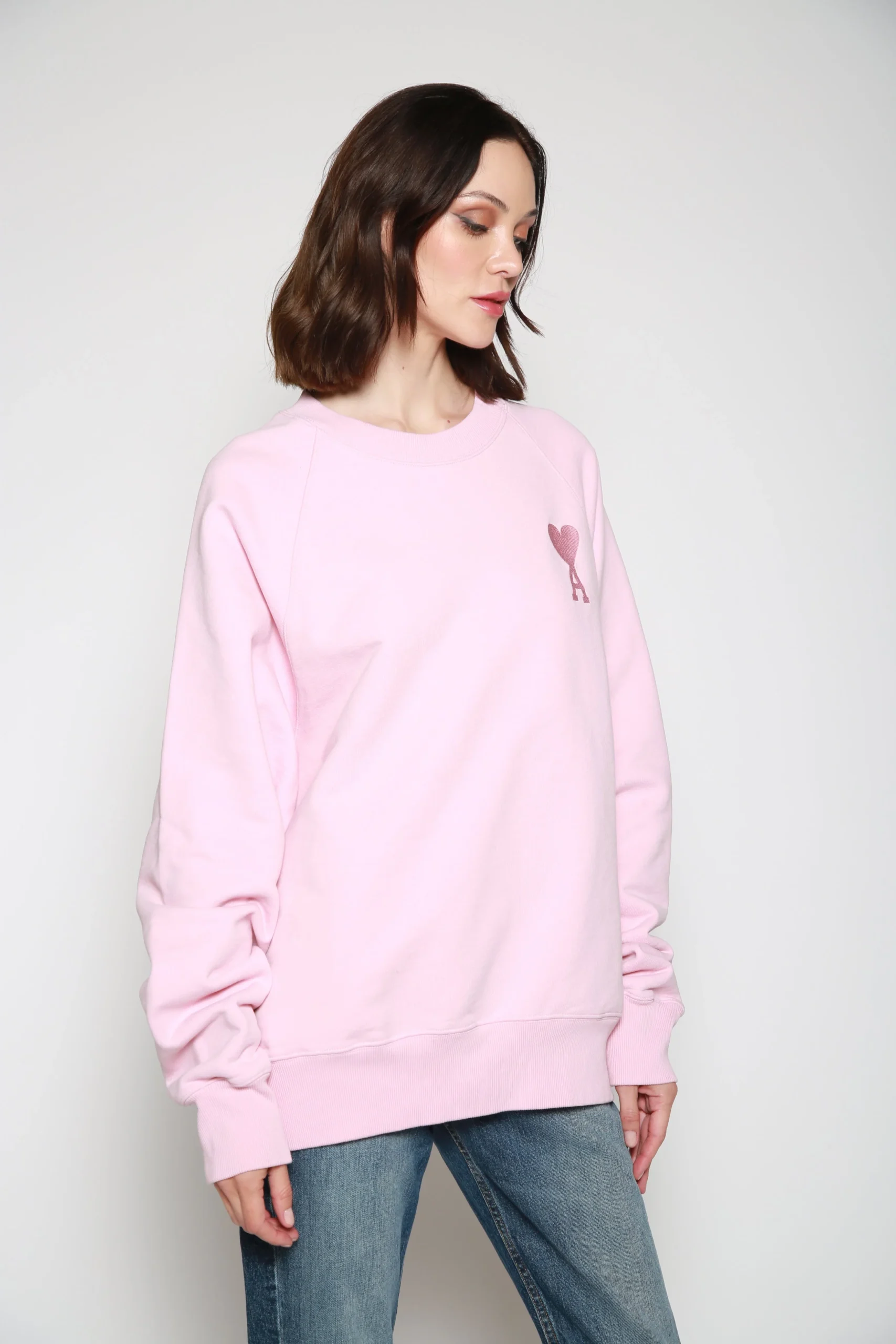 Sudadera Big Ami Rosa , marca AMI Paris. CONSULTAR COMPOSICIÓN Y CUIDADOS EN ETIQUETA INTERNA.