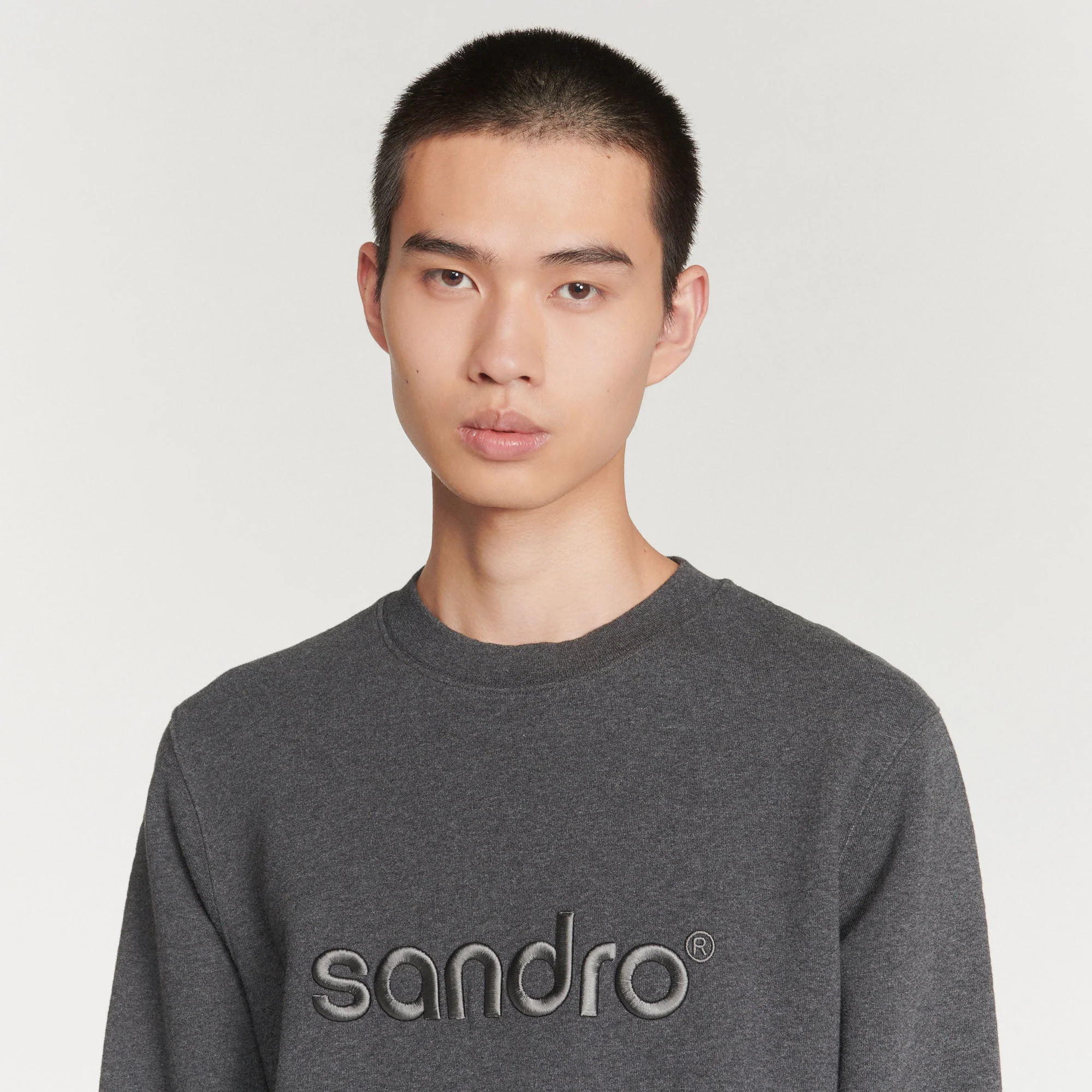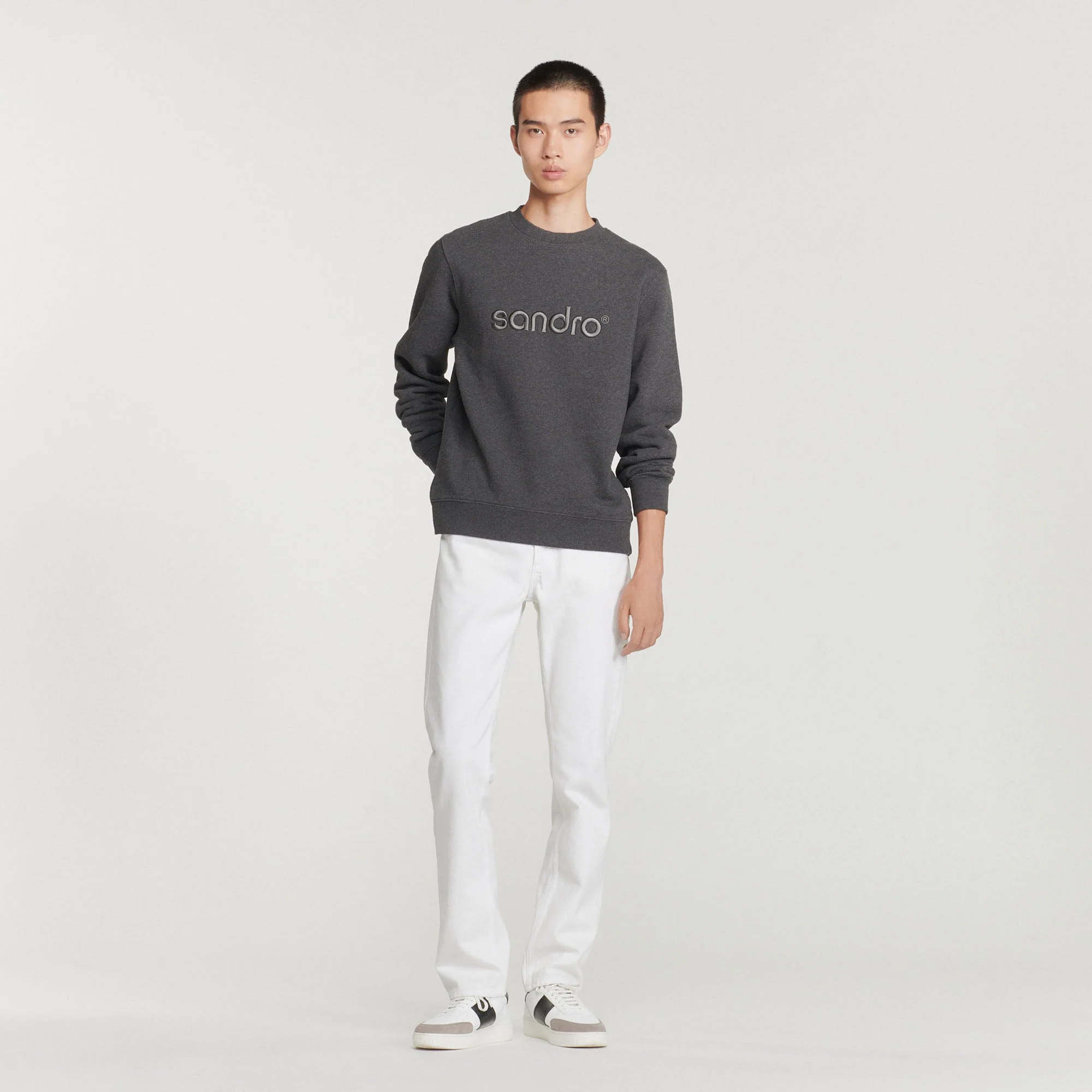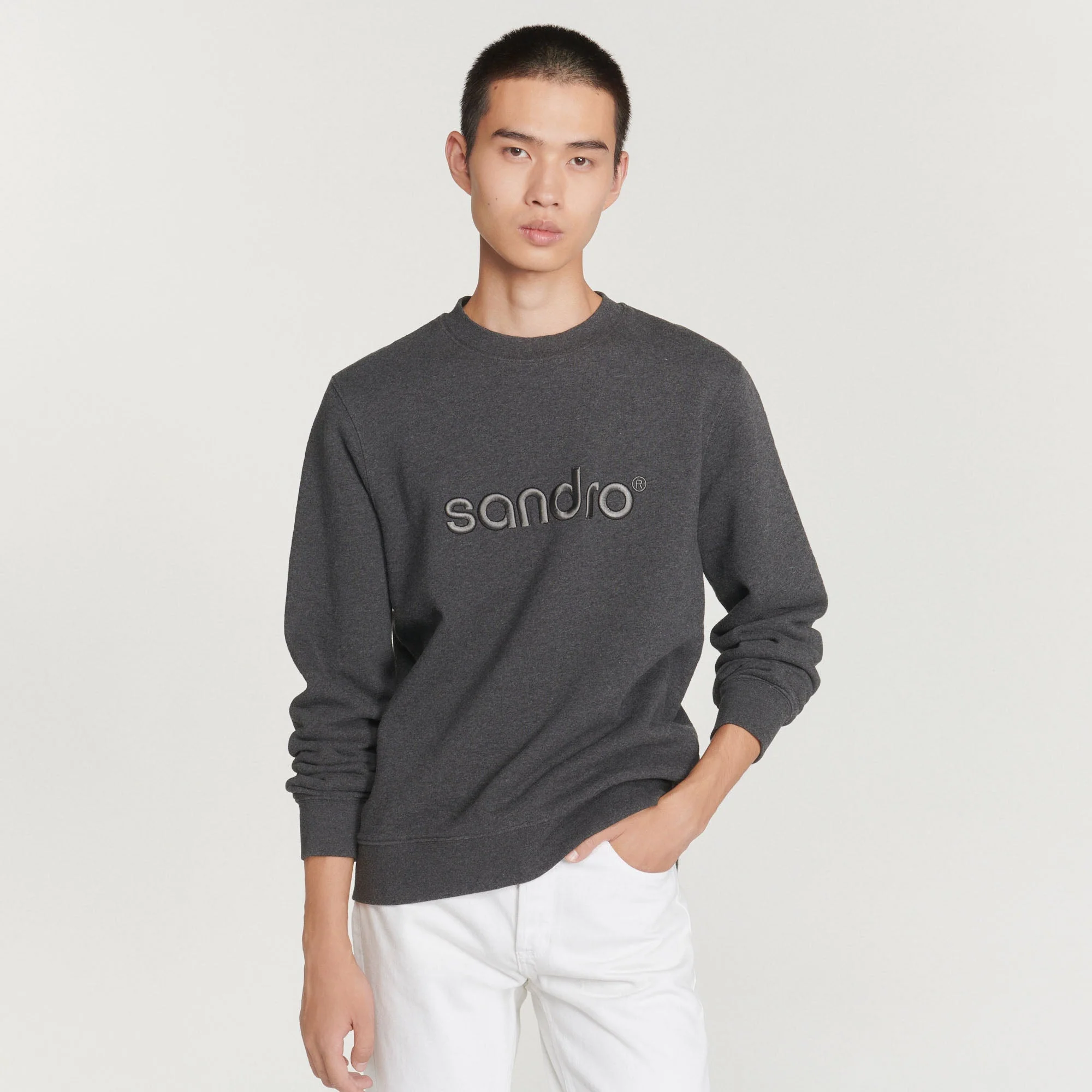 Sudadera de manga larga y cuello redondo de muletón rascado, sublimada con un bordado Sandro tono sobre tono.