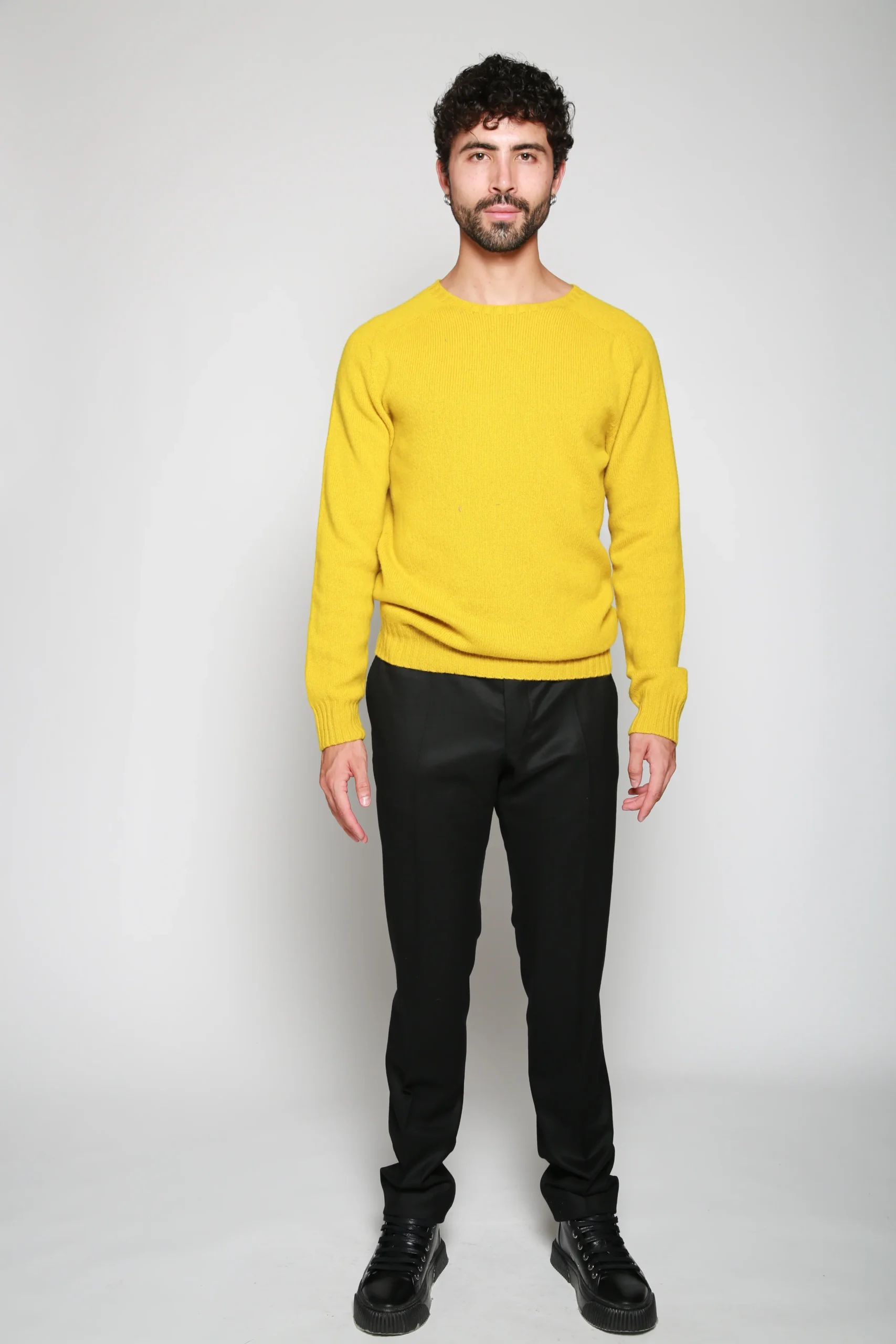 Sweater Knit Amarillo para hombre, marca Officine Générale. COMPOSICIÓN Y LAVADO: Consultar etiqueta interna.