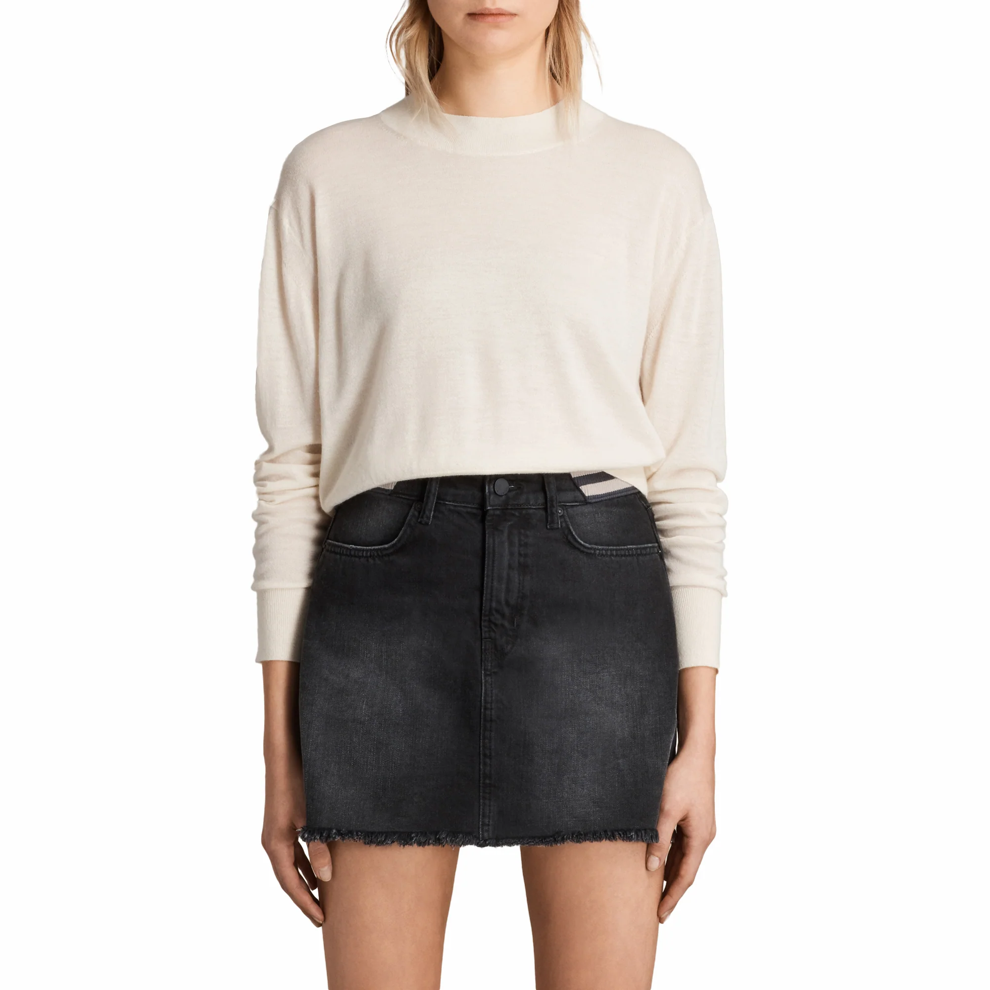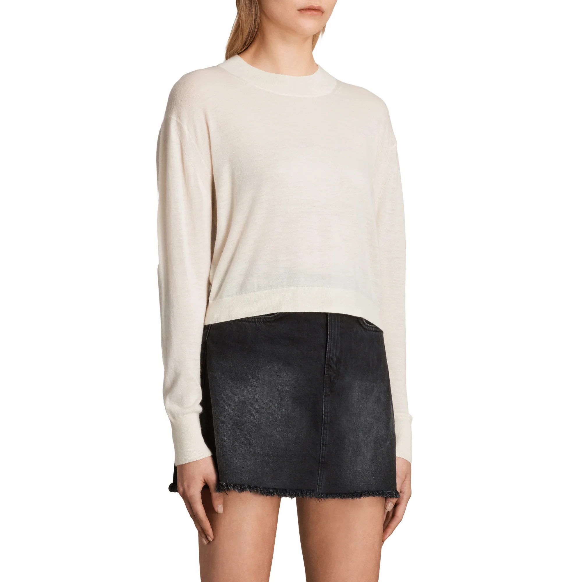 SWEATER LOTUS CROPPED JUMPER, MARCA ALLSAINTS. SWEATER DE PUNTO, CUELLO REDONDO, MANGAS CORTAS. 100% CASHMERE. LAVADO A MANO O LAVADO EN SECO.