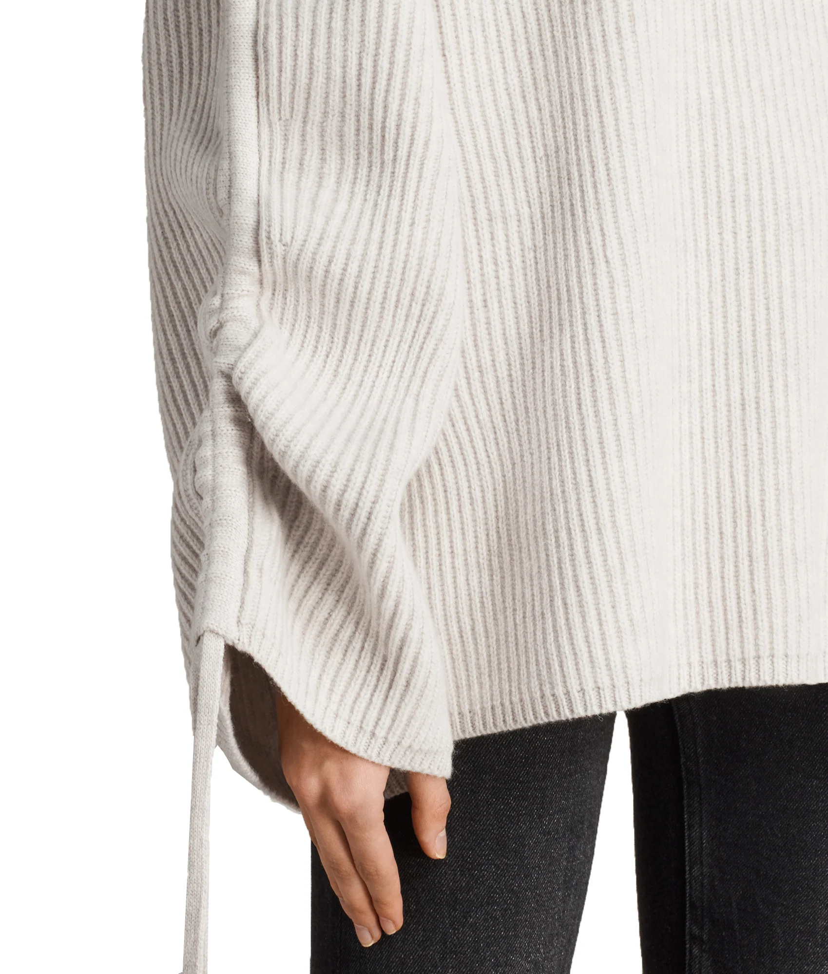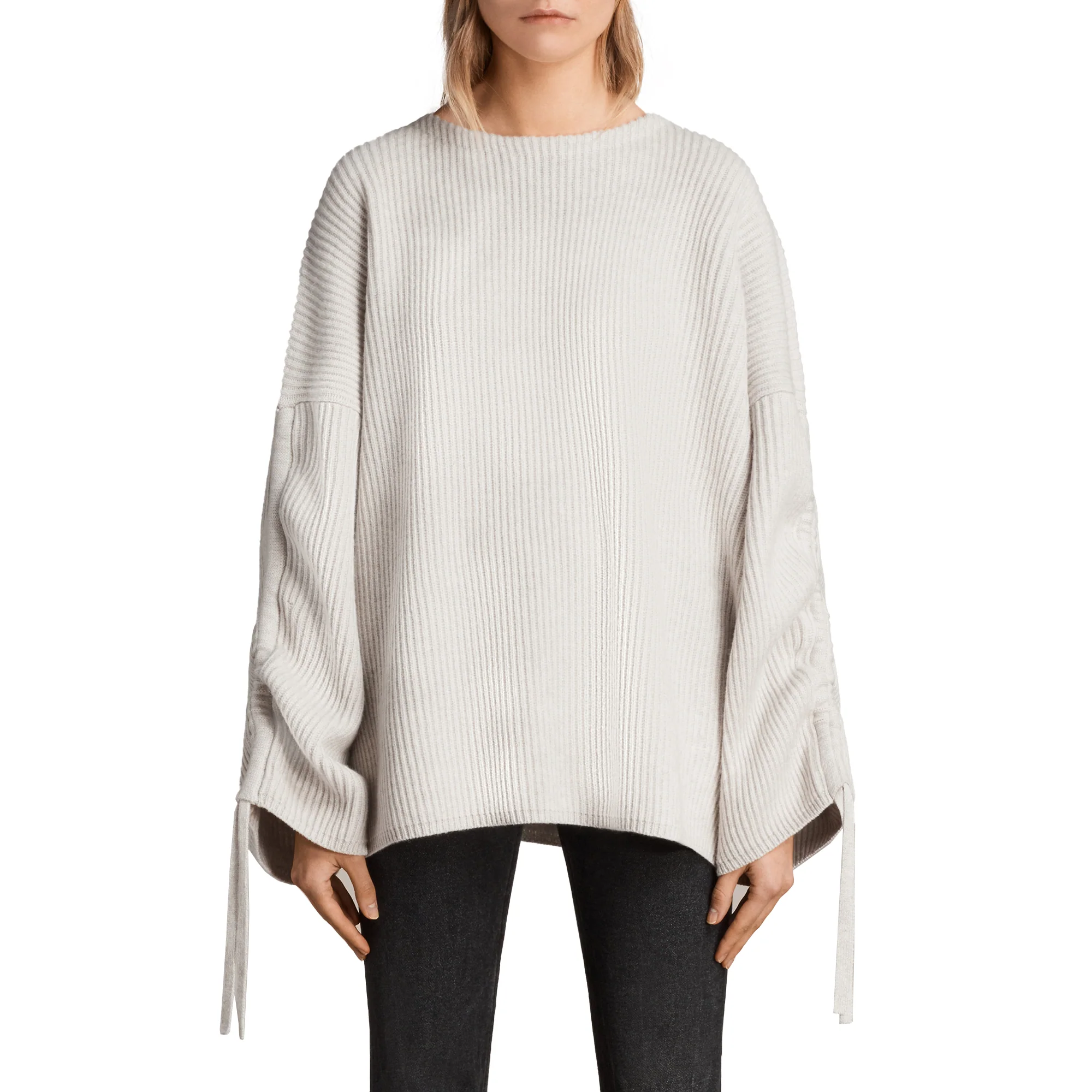 SWEATER ROMA CREW, MARCA ALLSAINTS. SWEATER DE PUNTO OVERSIZE, CUELLO REDONDO, MANGAS LARGAS ACAMPANADAS CON DETALLE DE CORDONES . 80% LANA, 20% NYLON. LAVADO A MANO O LAVADO EN SECO.