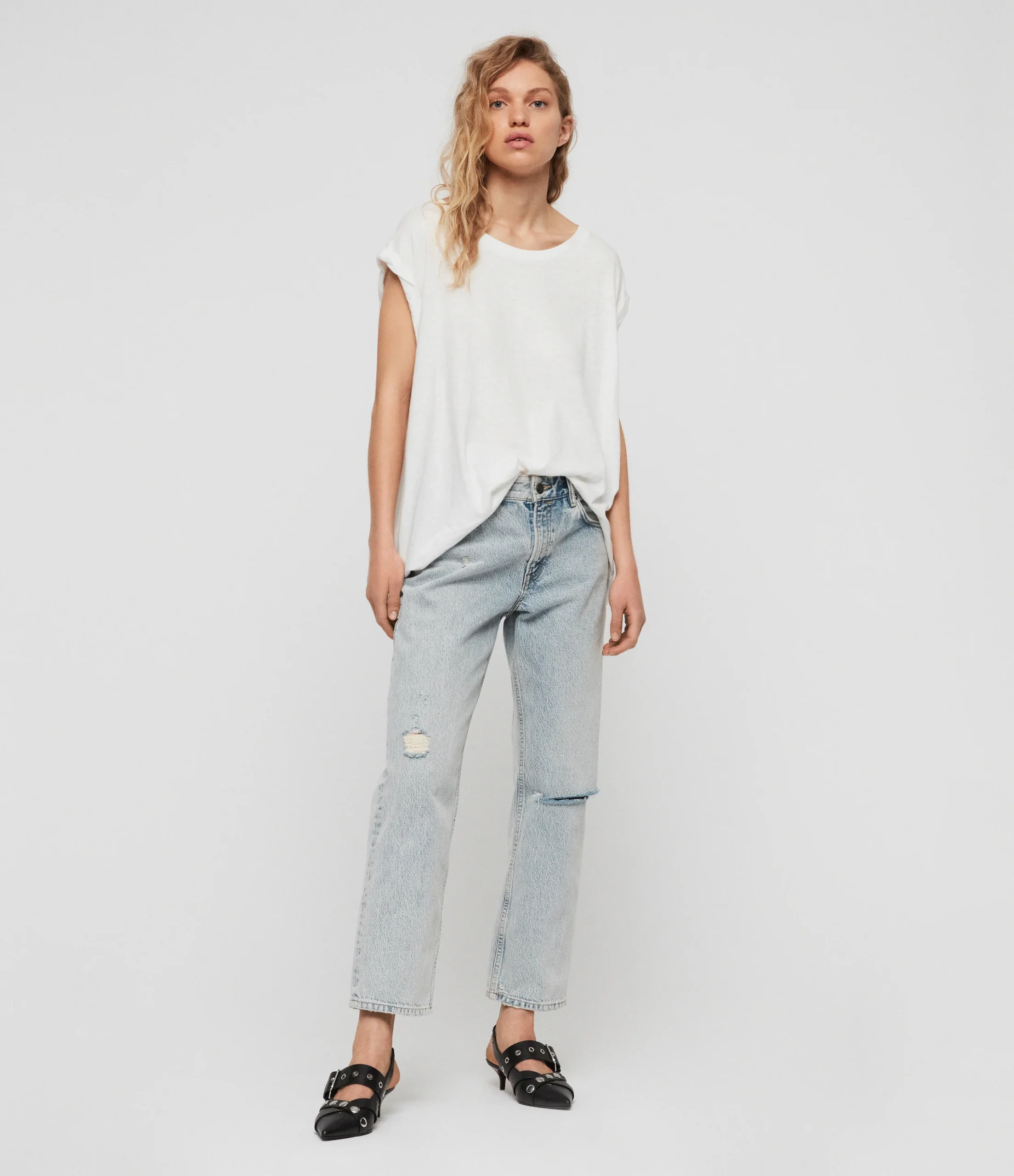 Tank Sanza Chalk White, marca AllSaints. Composición: 70%COTTON 30%LINEN