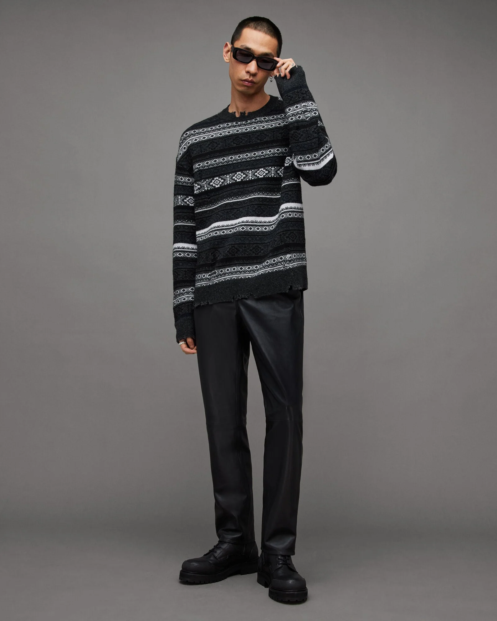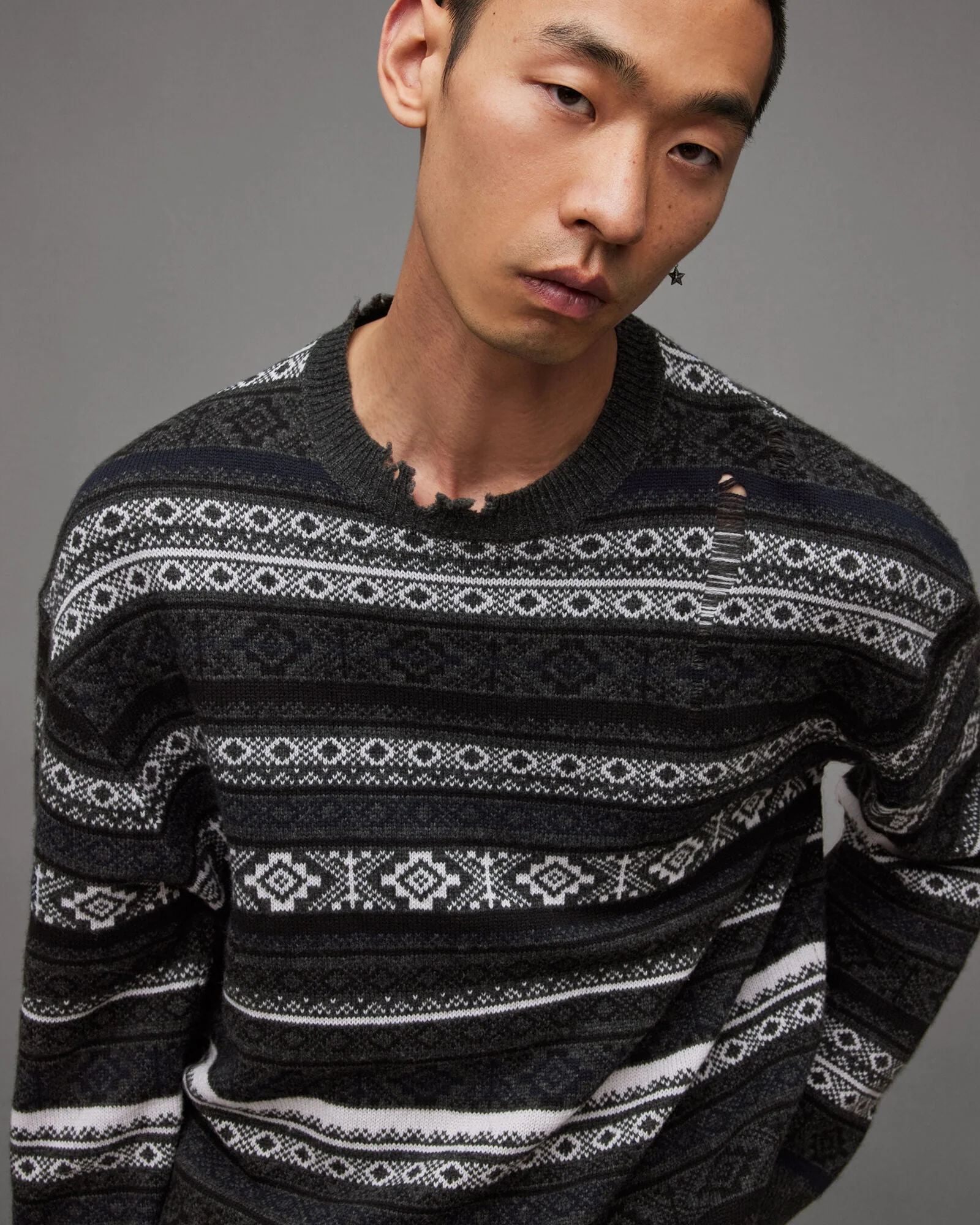 Tejido Halldor Gris para hombre, marca AllSaints, con cuello redondo. COMPOSICIÓN Y LAVADO: Consultar etiqueta interna.