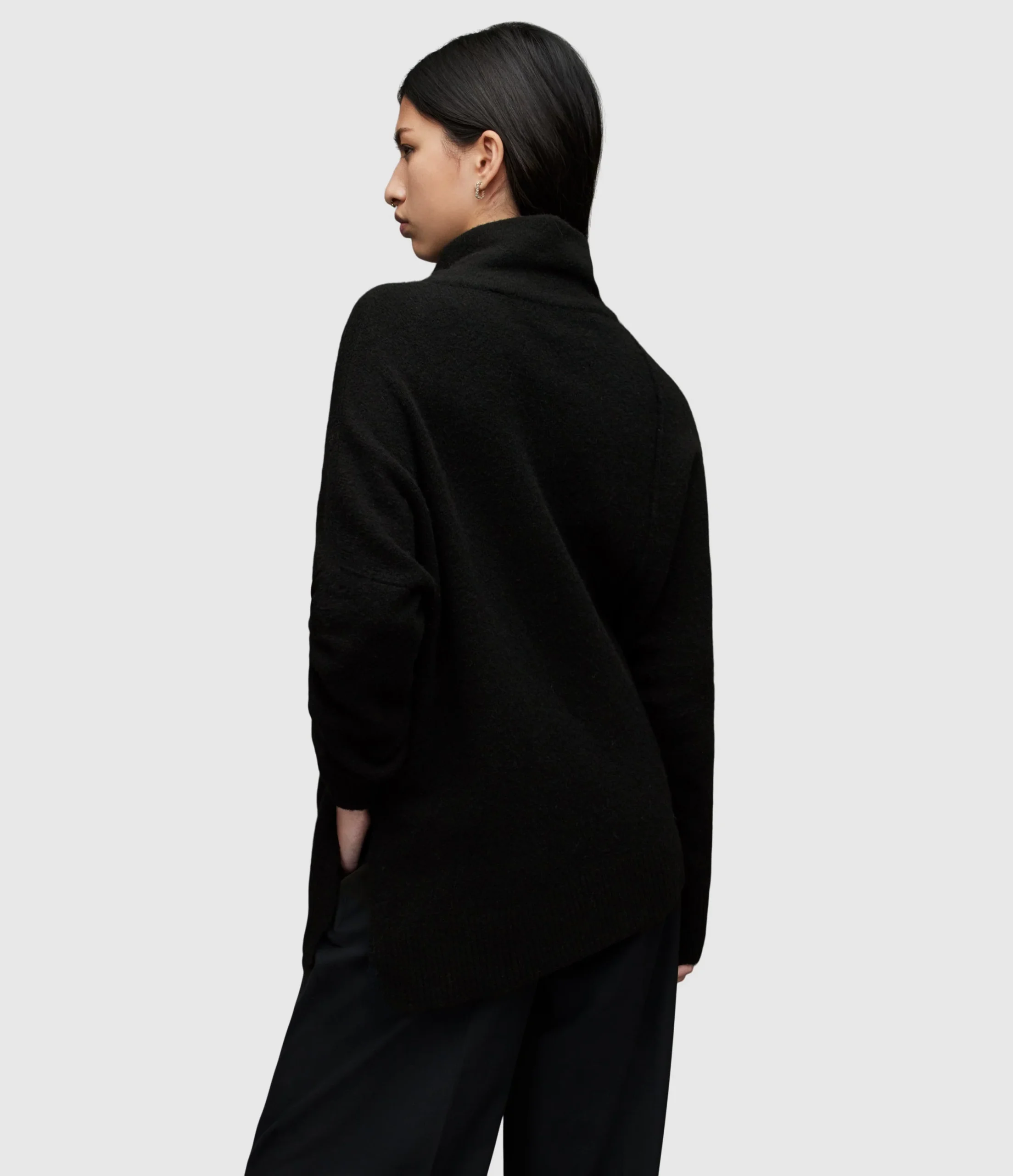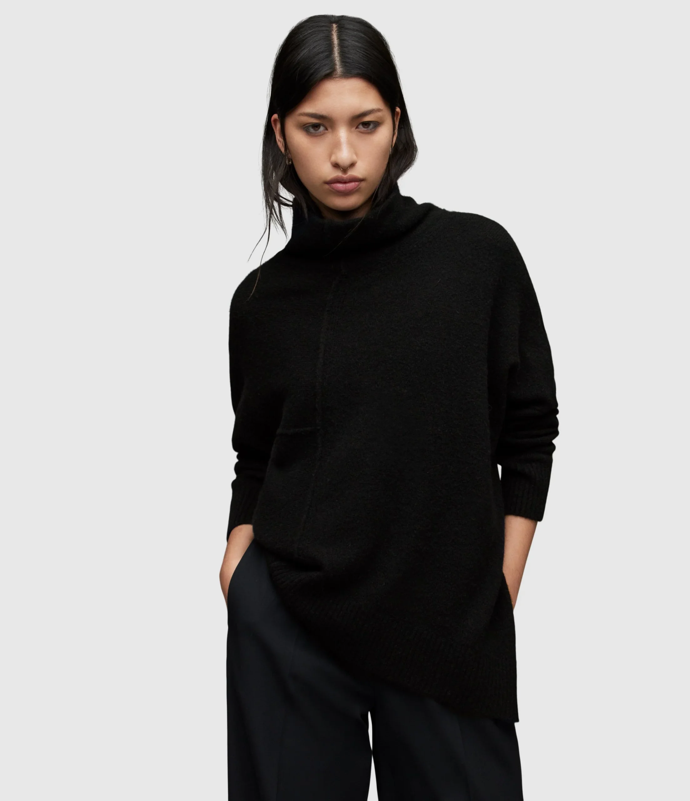 Tejido Lock Negro para mujer, marca AllSaints, cuello enrollado. COMPOSICIÓN Y LAVADO: Consultar etiqueta interna.