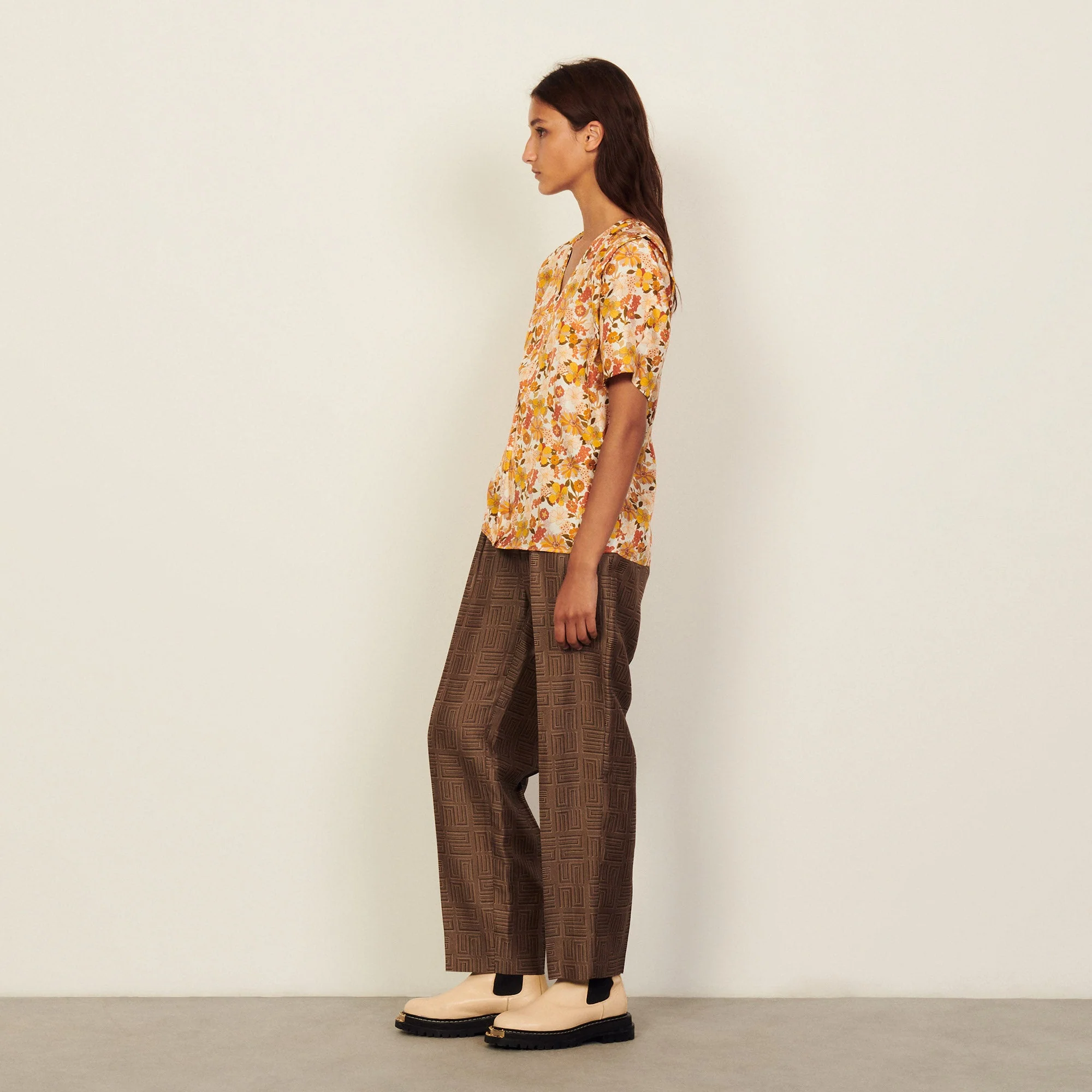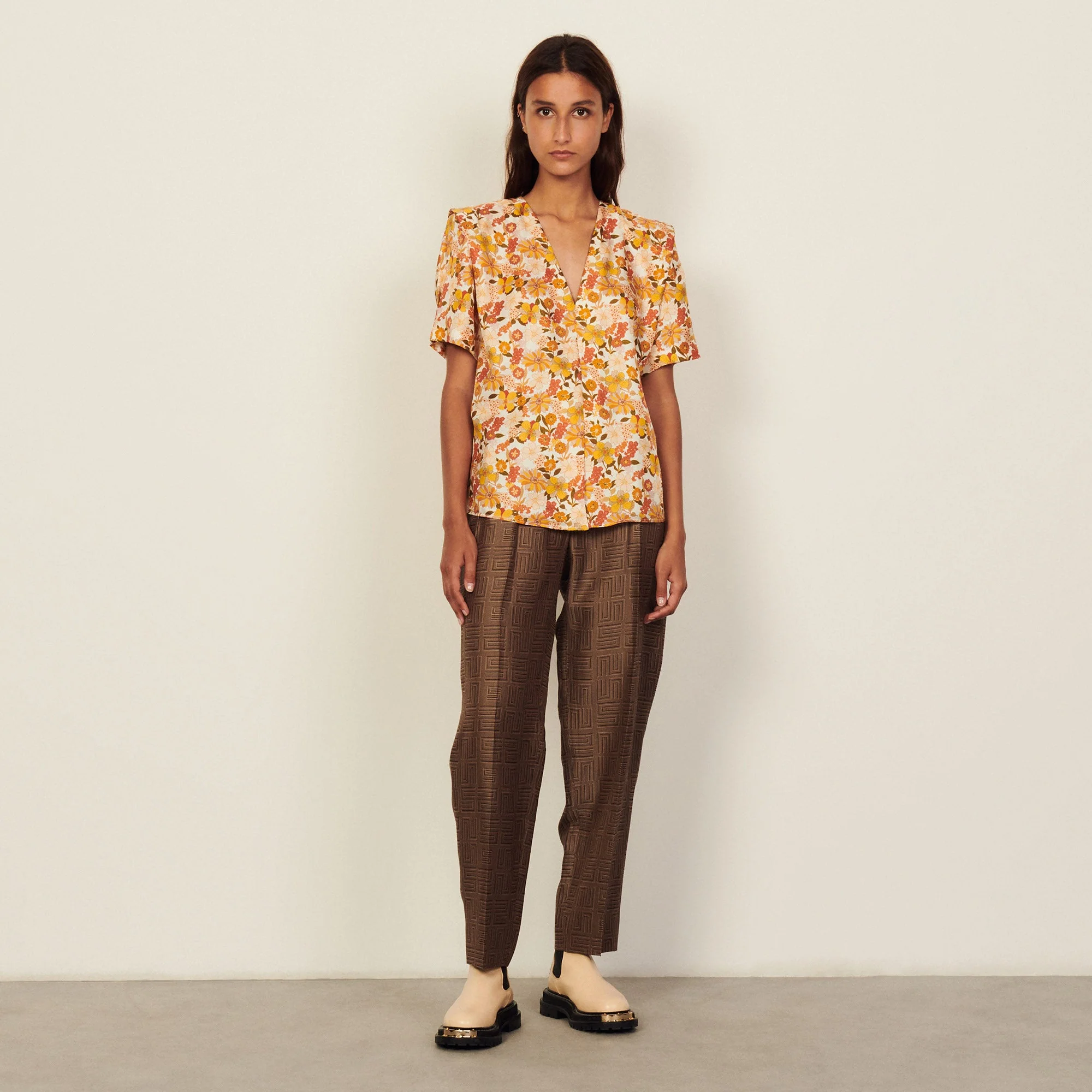 • Manga corta con pliegues de tablas de piqué en la parte inferior de la manga