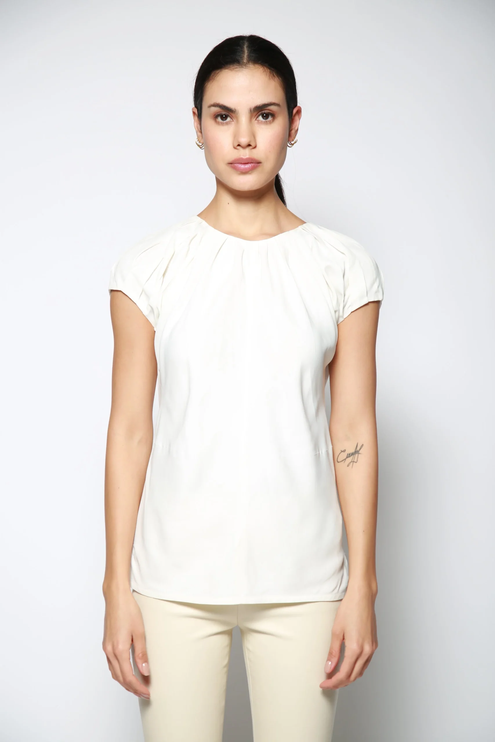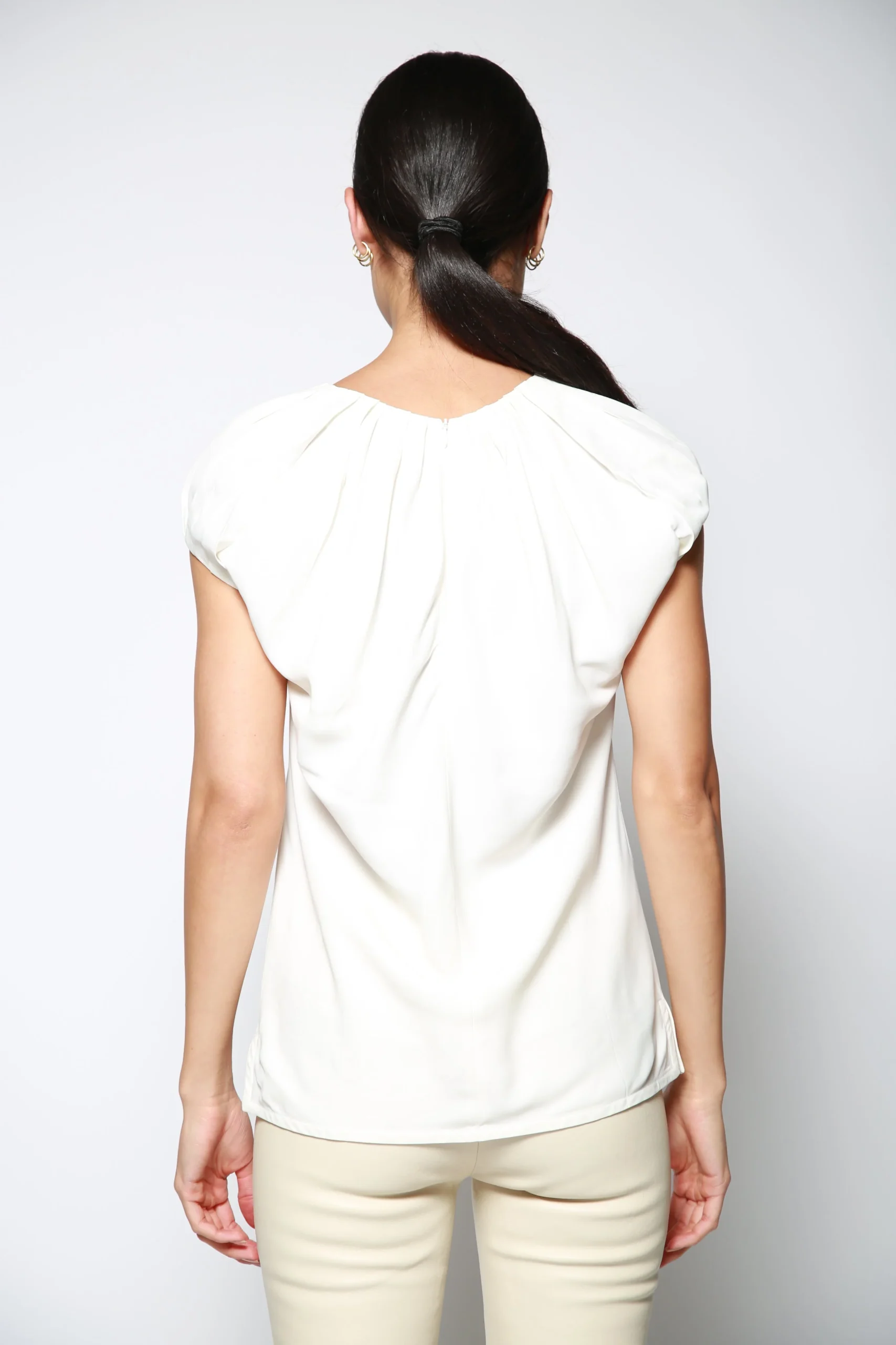 Top Pleated Cap Blanco , marca Helmut Lang. CONSULTAR COMPOSICIÓN Y CUIDADOS EN ETIQUETA INTERNA.