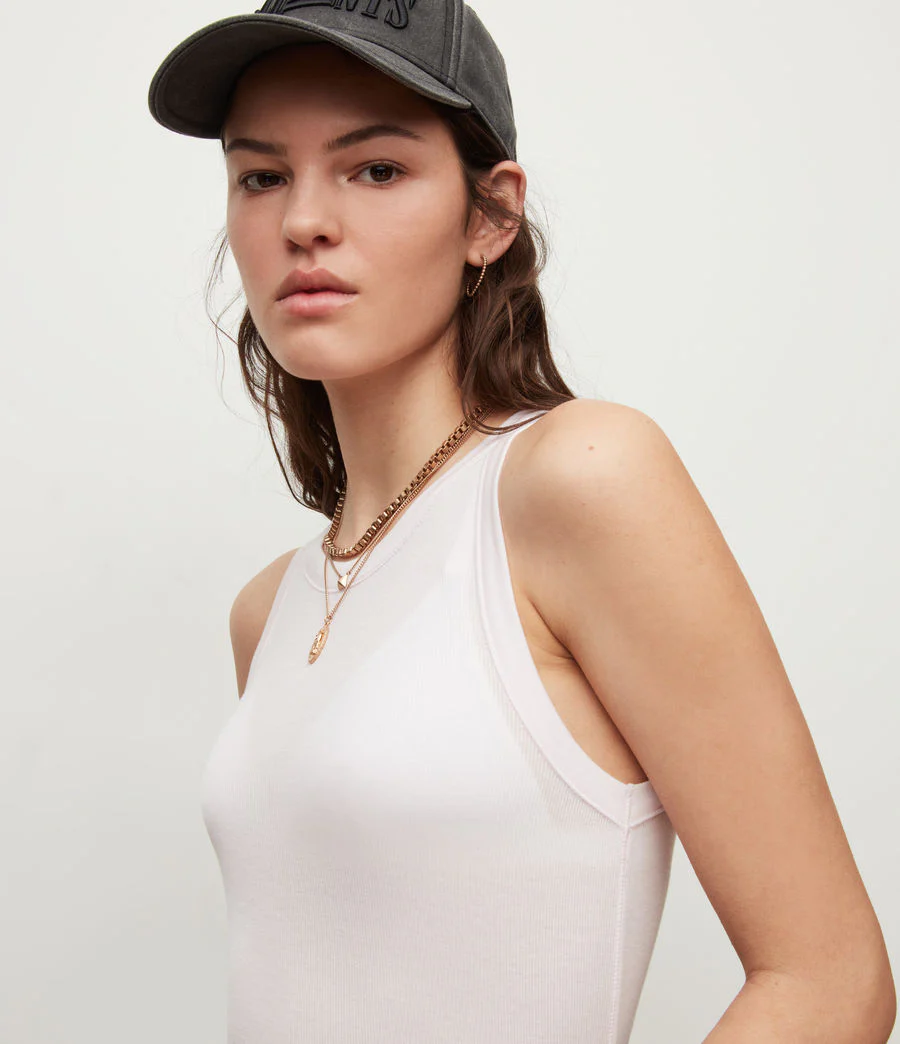 Top Rina Blanco Gis para mujer , marca AllSaints. Consultar composición e instrucciones de lavado en etiqueta interna. Los tallajes numéricos para esta marca están expresados en tallas británicas, para conocer su equivalencia, consulta el cuadro de tallas