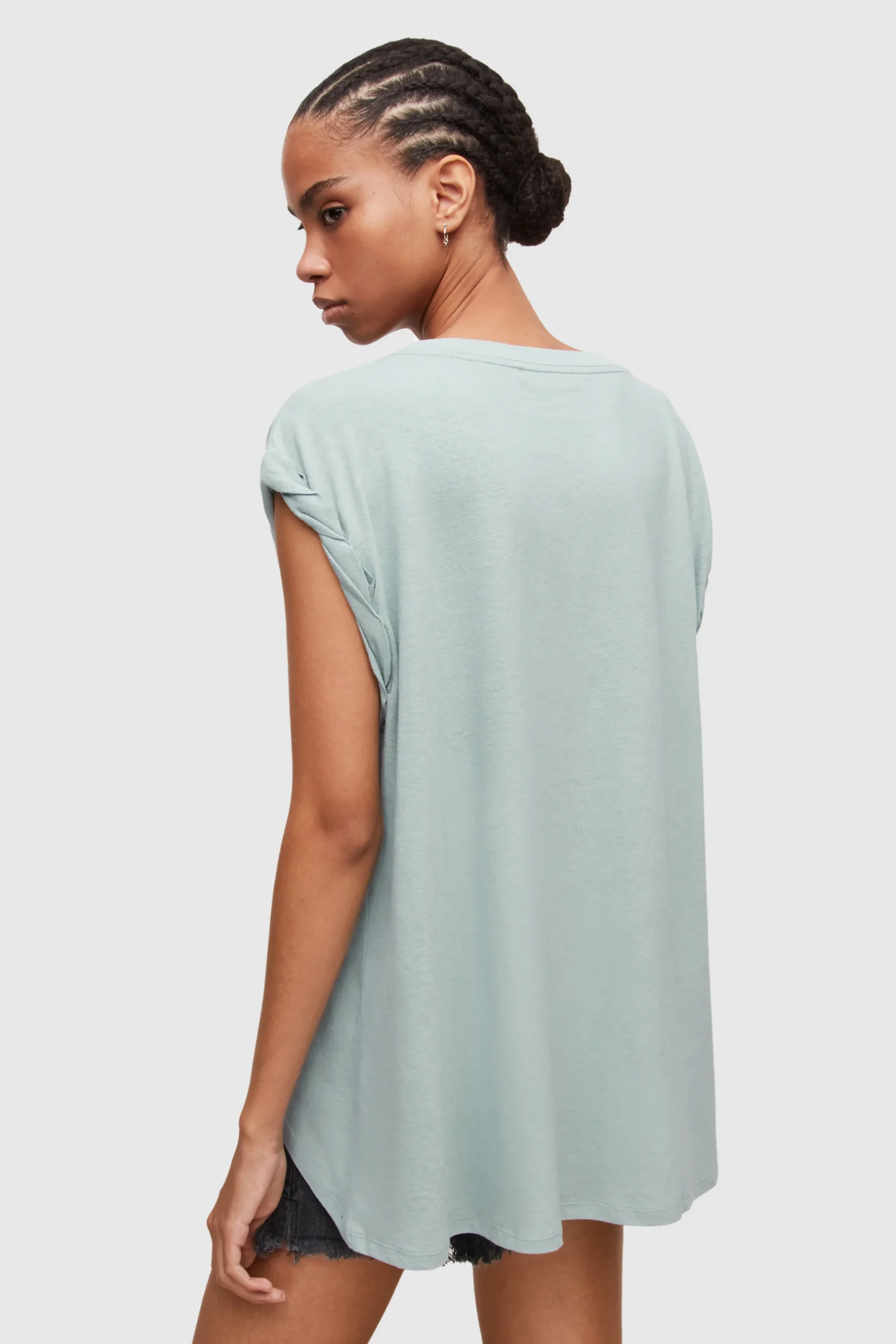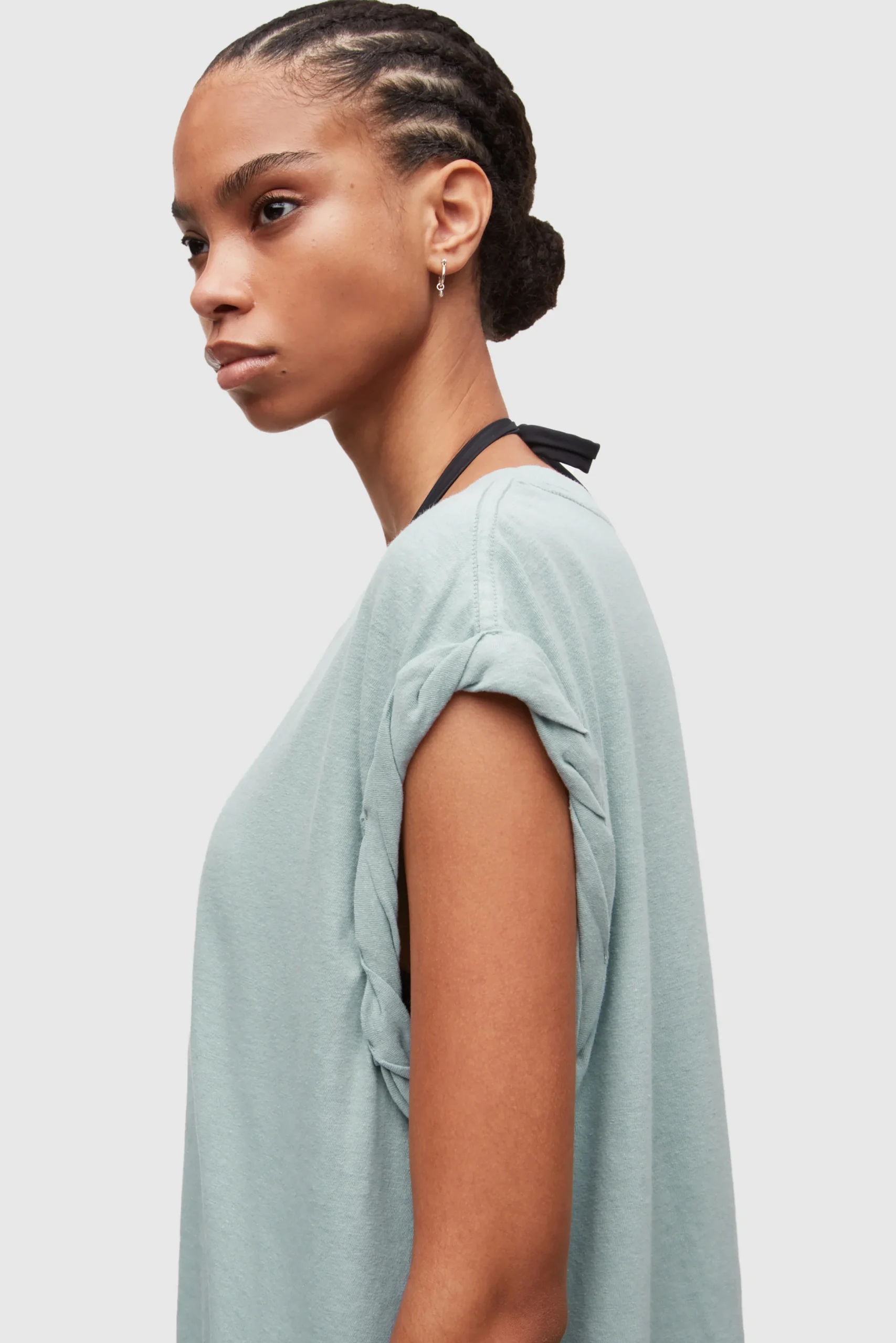 Top Sanza Azul Atardecer, marca AllSaints. Composición: 70% Algodón 30% Lino