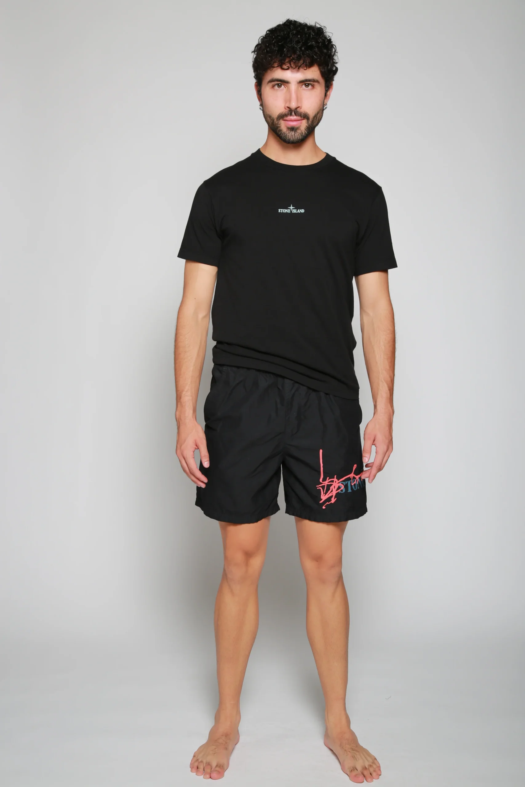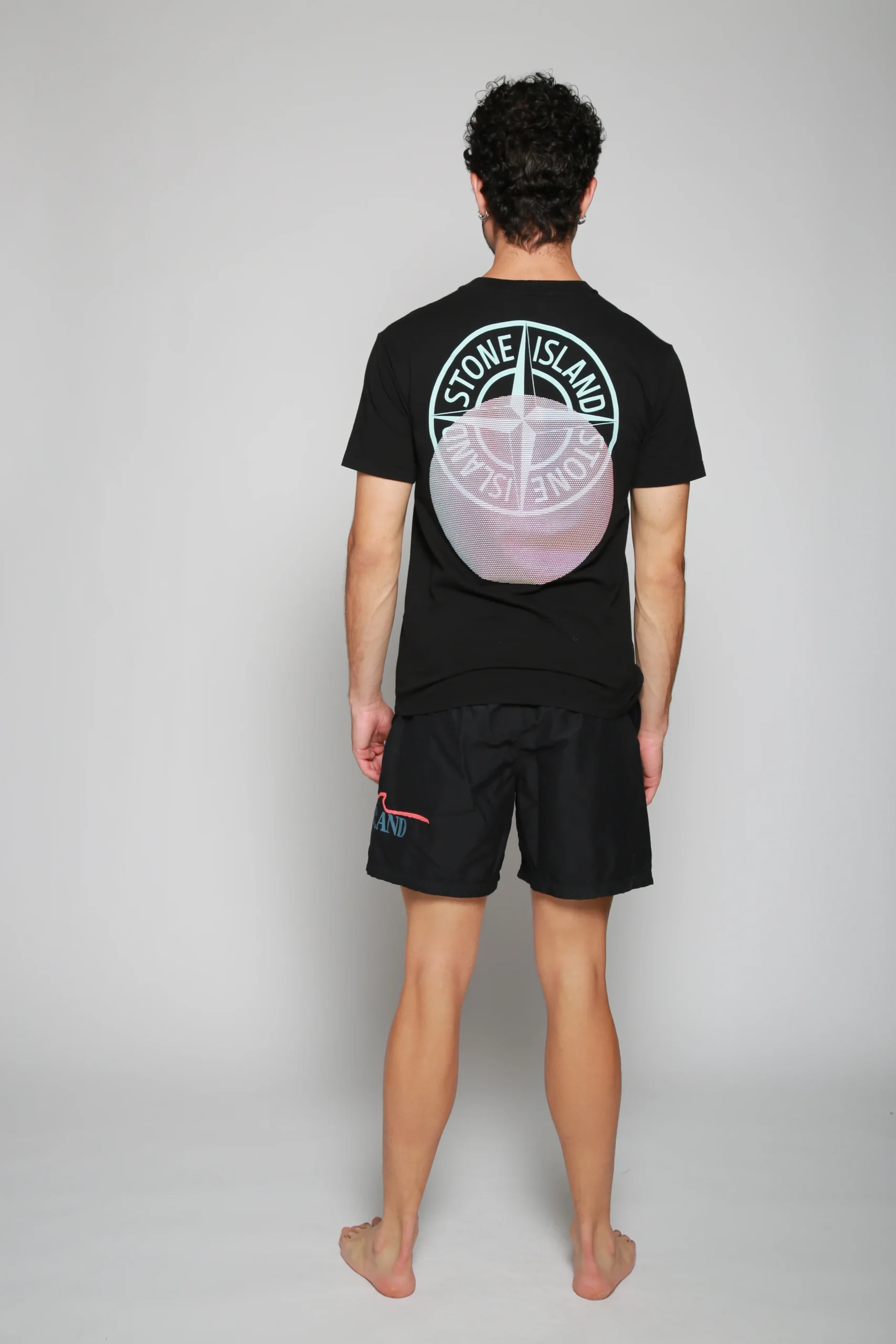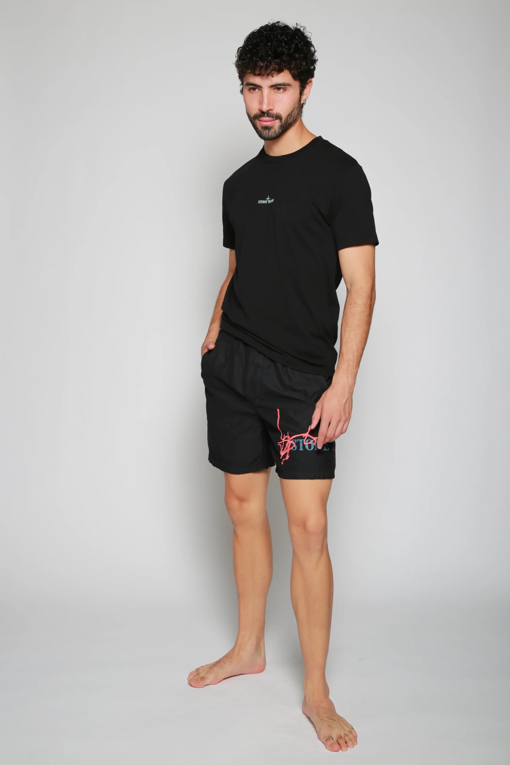 Traje De Baño Negro para hombre, marca Stone Island. COMPOSICIÓN Y LAVADO: Consultar etiqueta interna.