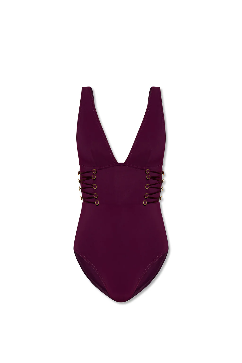 Traje De Baño Rosa Corset Lace Vino, marca Zimmermann. Consultar composición y cuidados de lavado en etiqueta interna.