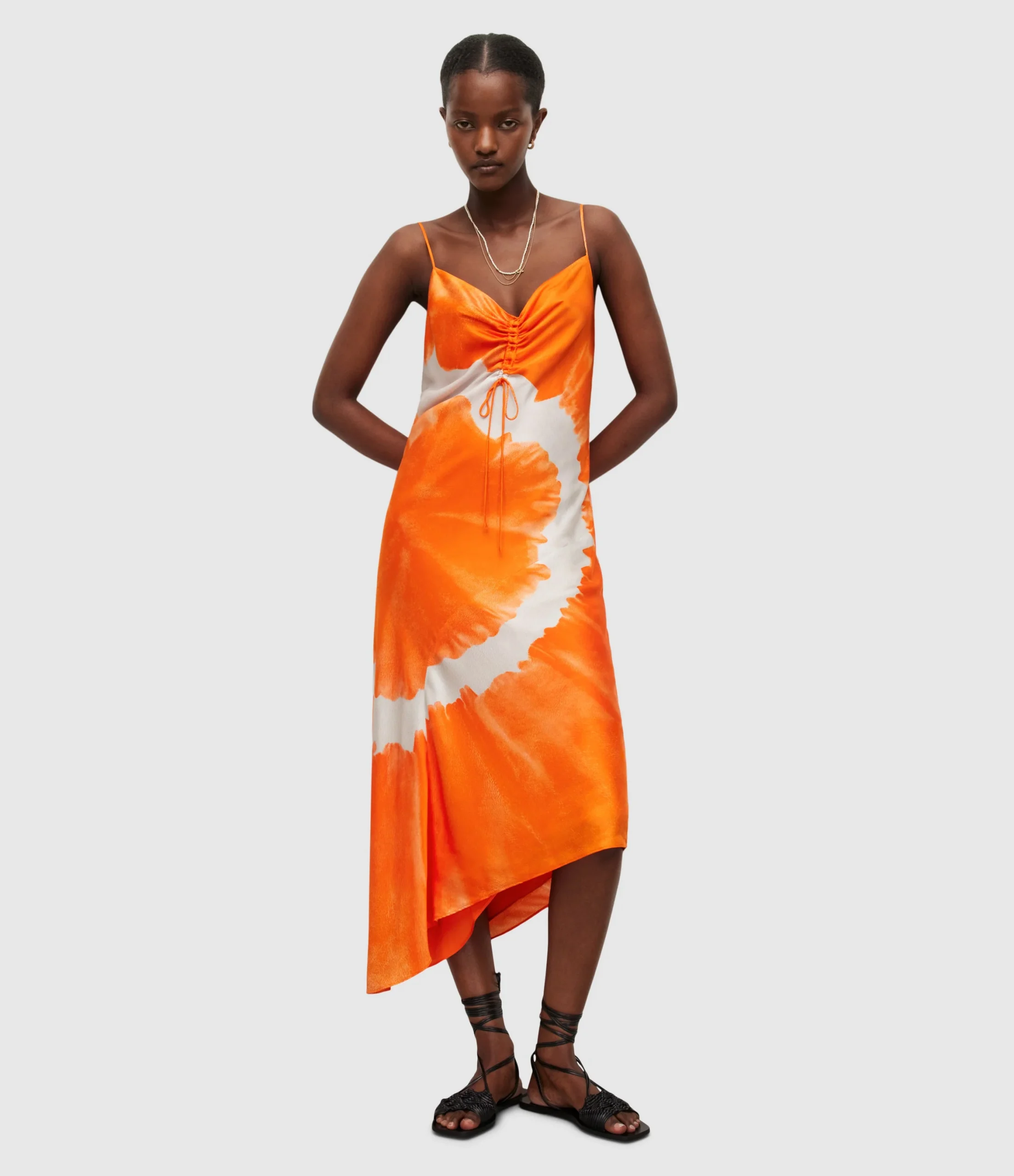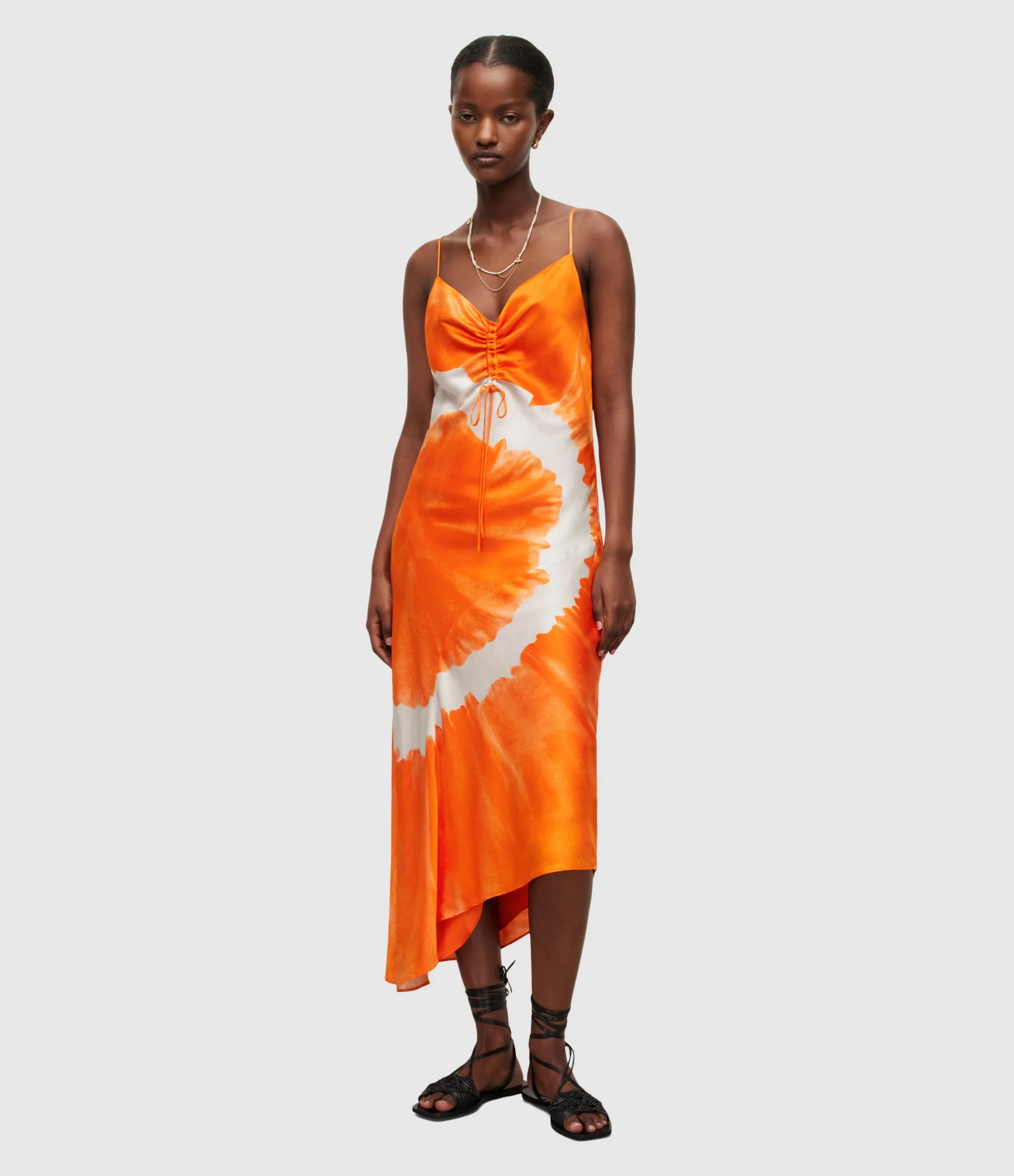 Vestido Alexia Mariana Naranja para mujer, marca AllSaints. COMPOSICIÓN Y LAVADO: Consultar etiqueta interna.