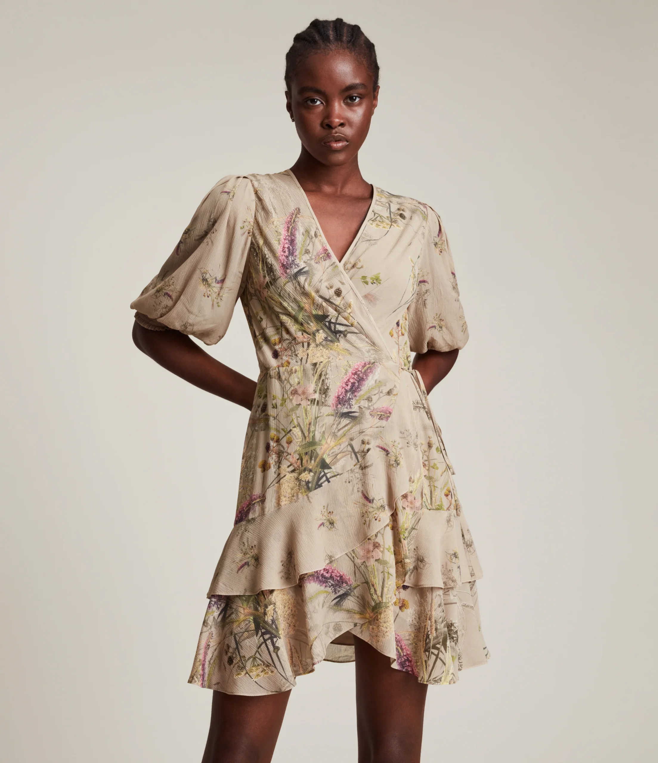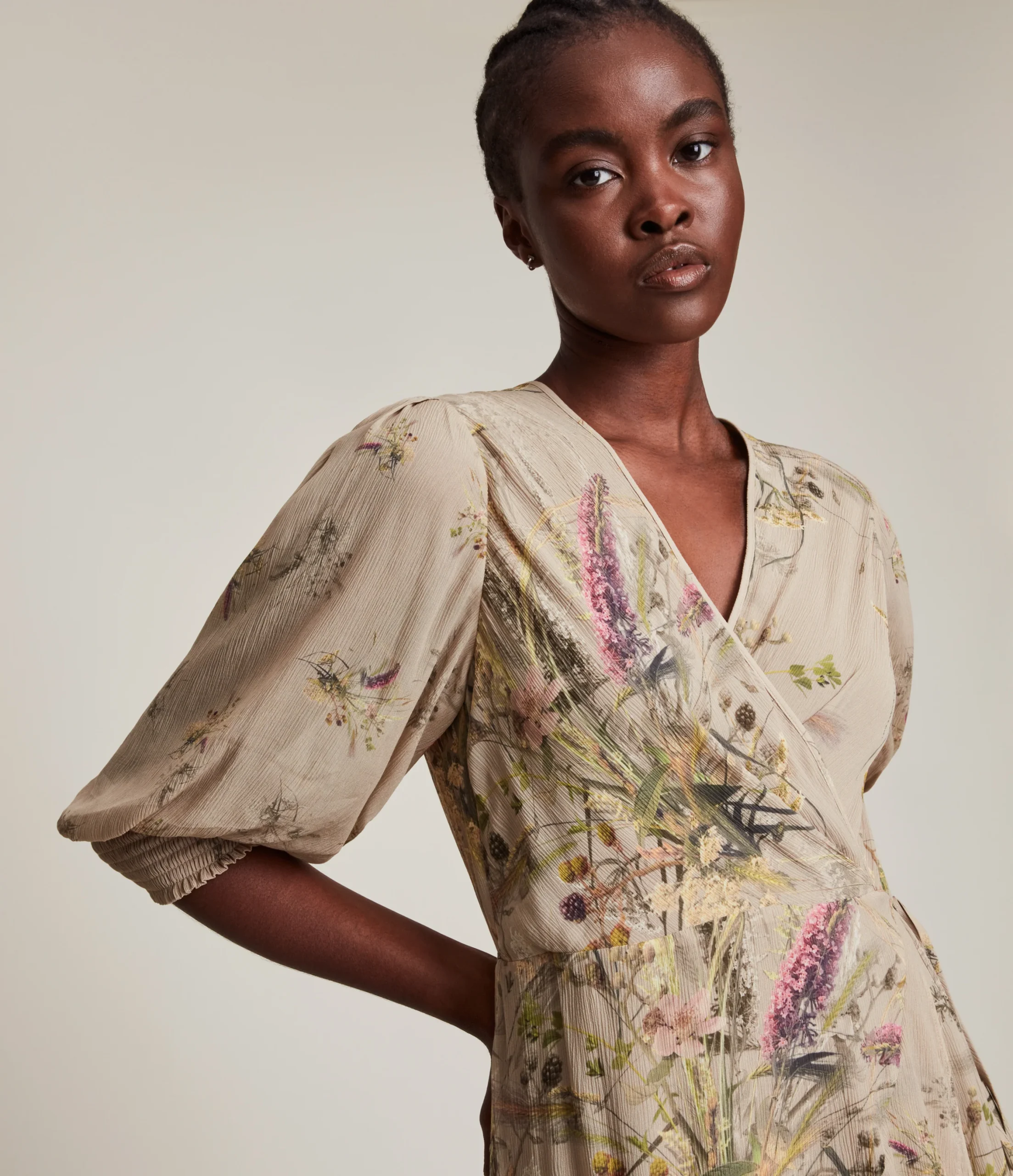 Vestido Ari Khaki, marca AllSaints. Composición: Consultar etiqueta interna.