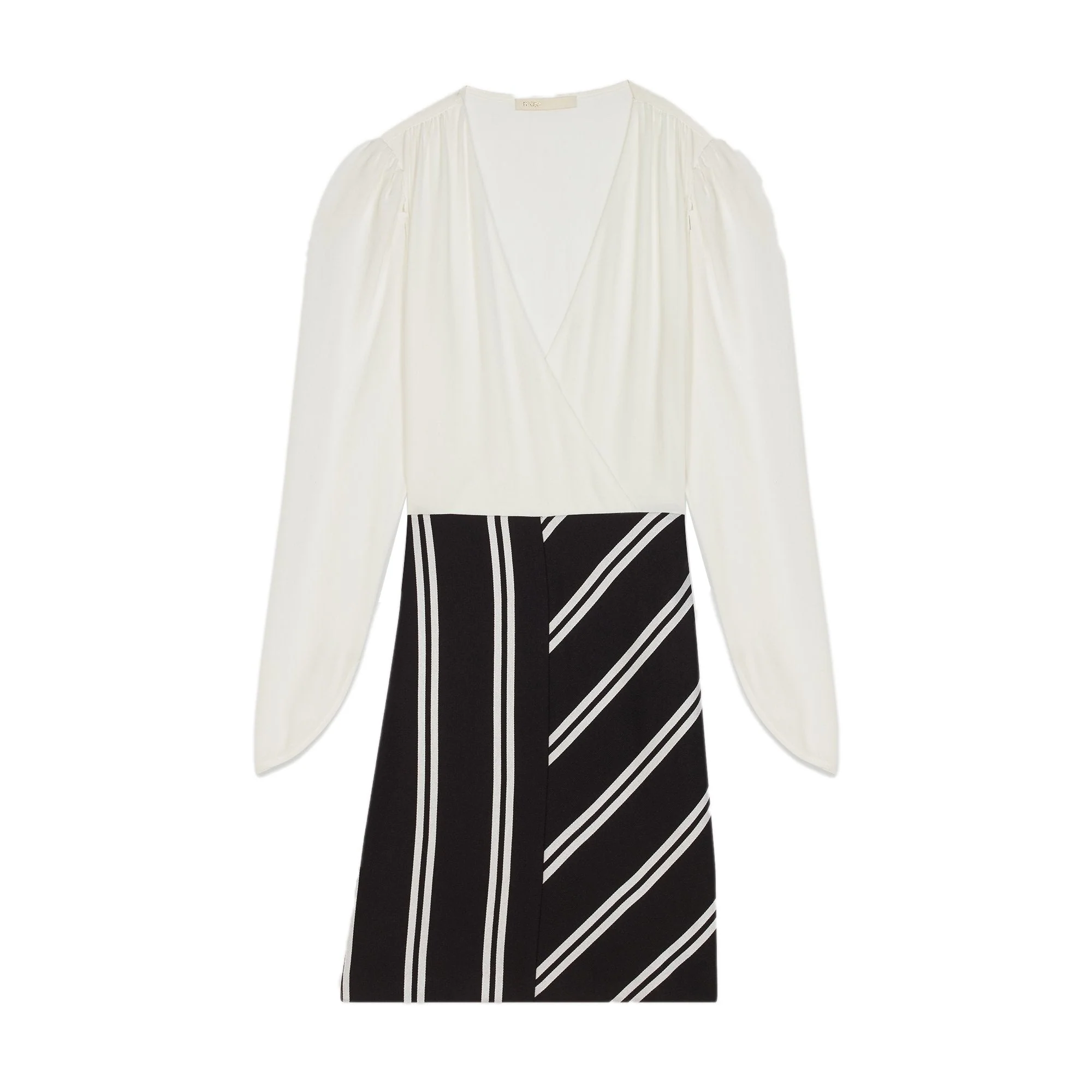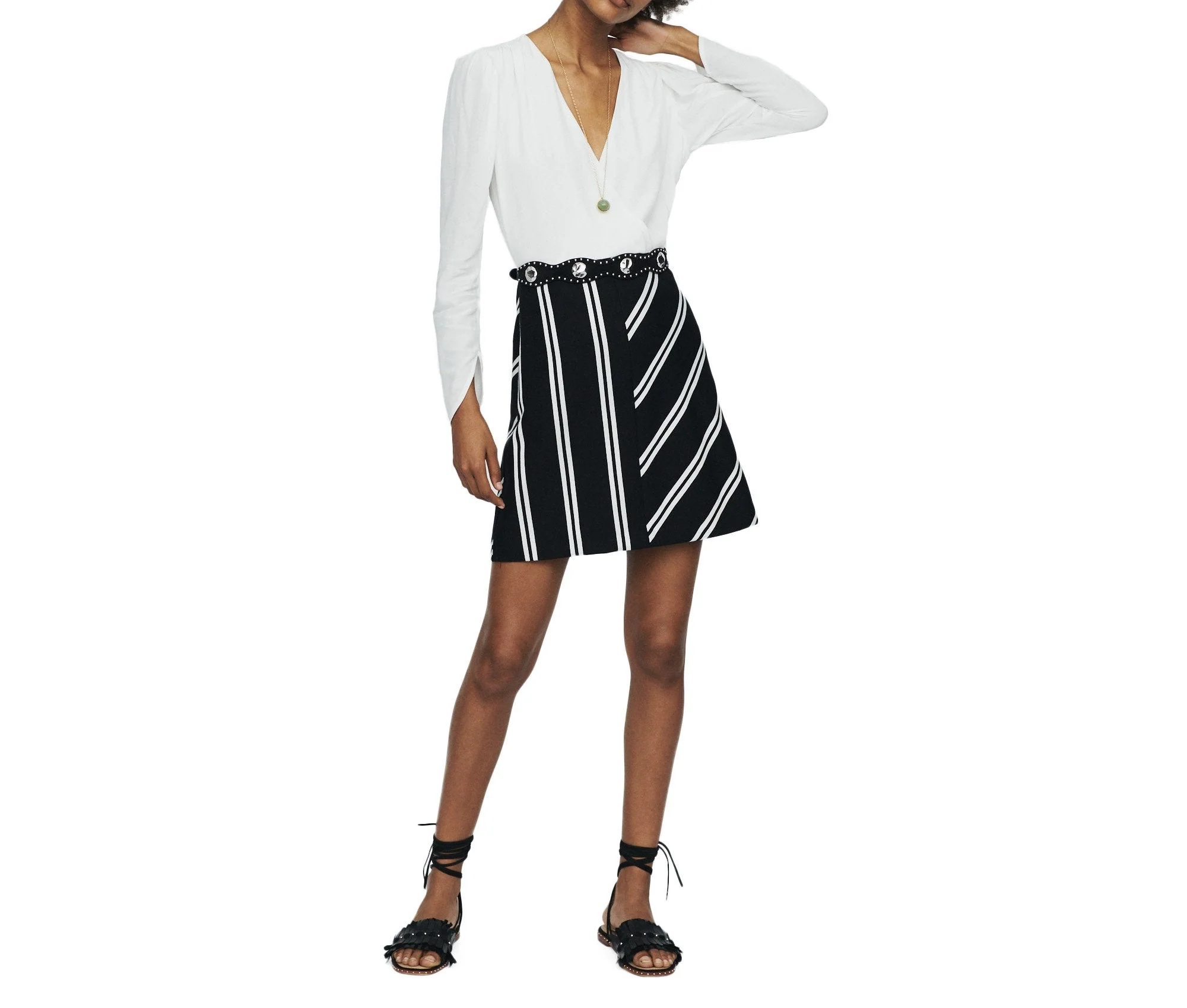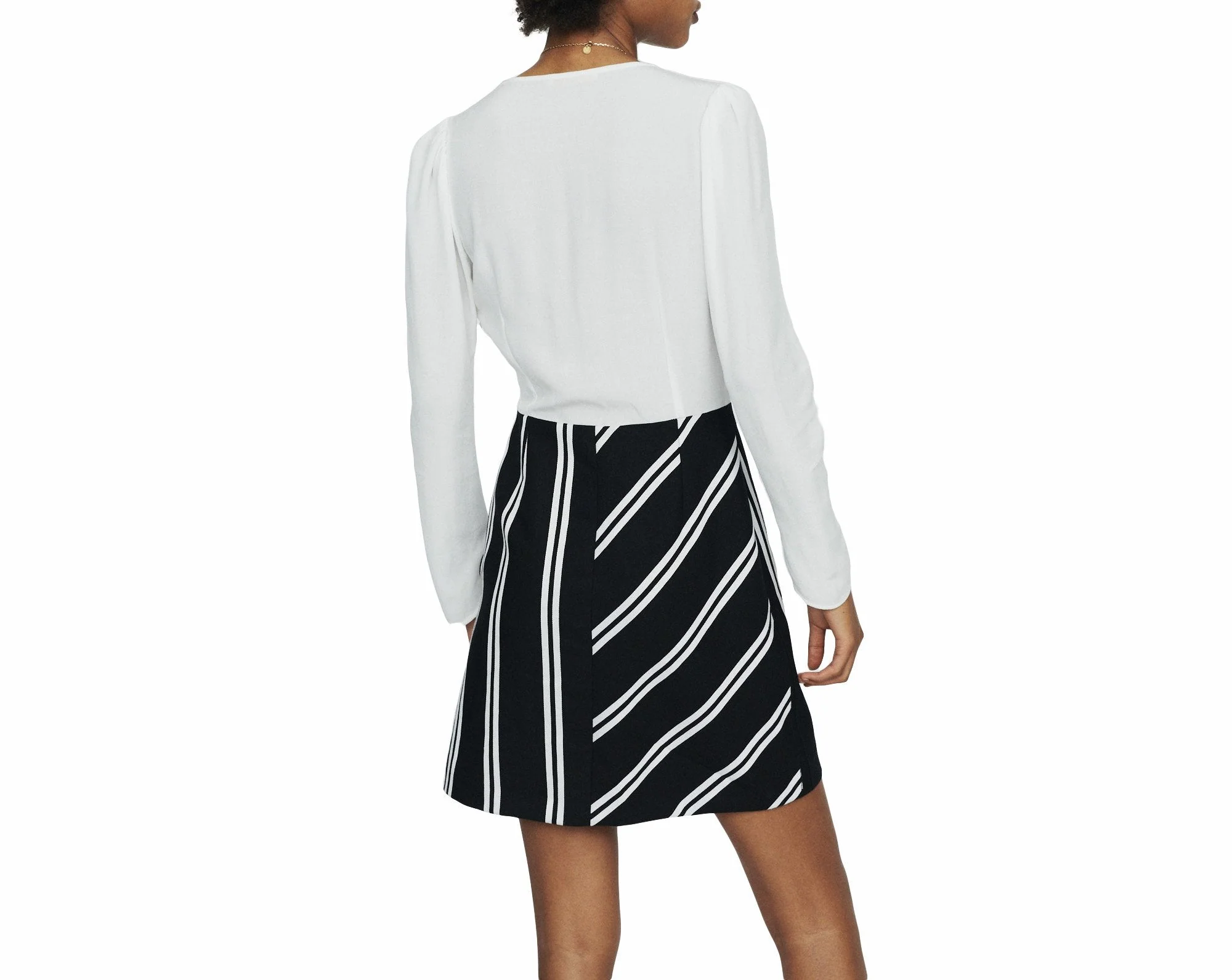 VESTIDO BLANCO/NEGRO, MARCA MAJE. VESTIDO CORTO DE LINO CON CORPIÑO BLANCO Y FALDA A RAYAS BLANCO/NEGRO. TEJIDO PRINCIPAL:80% VISCOSA, 10% LINO, 10% POLIÉSTER;.