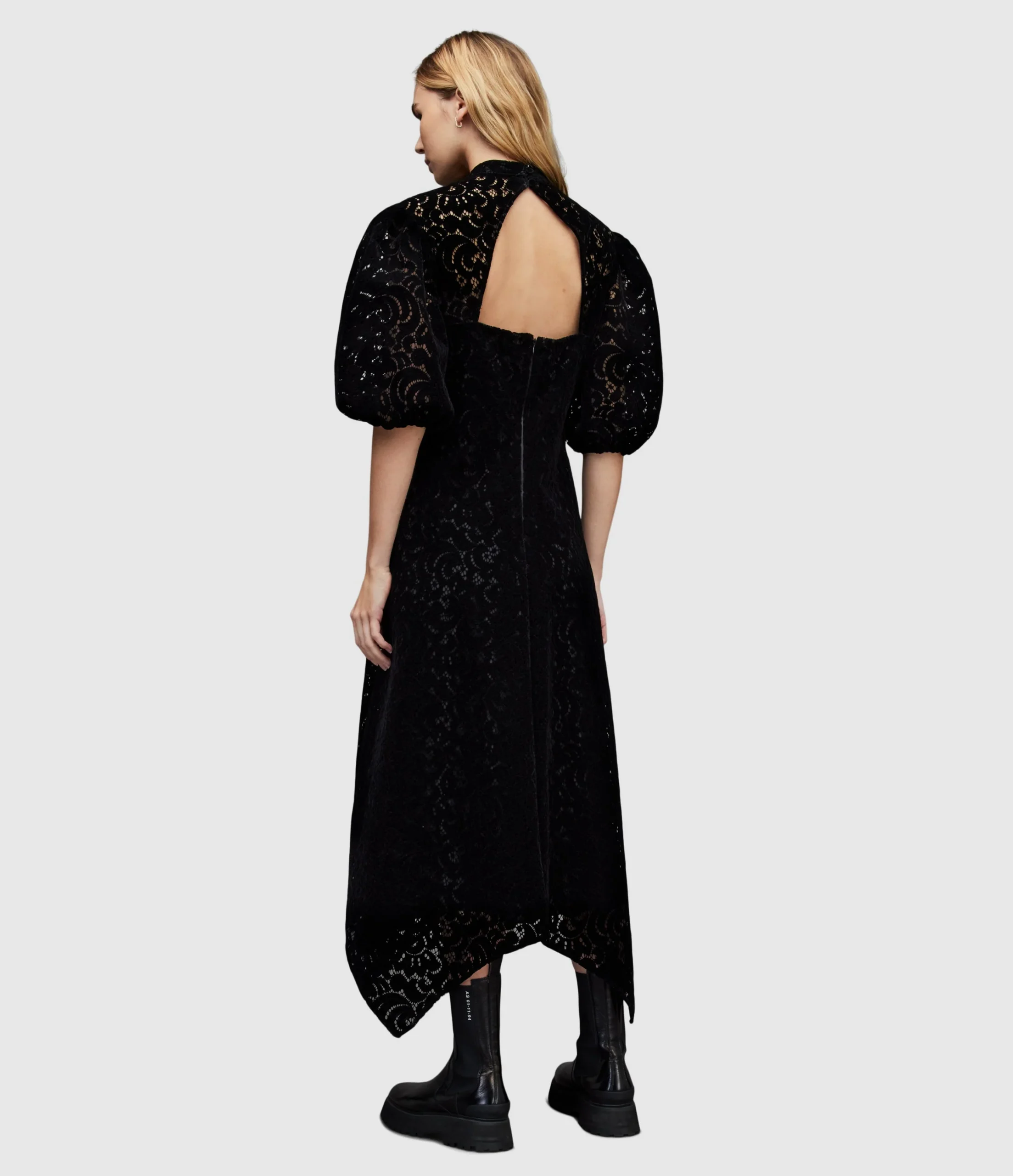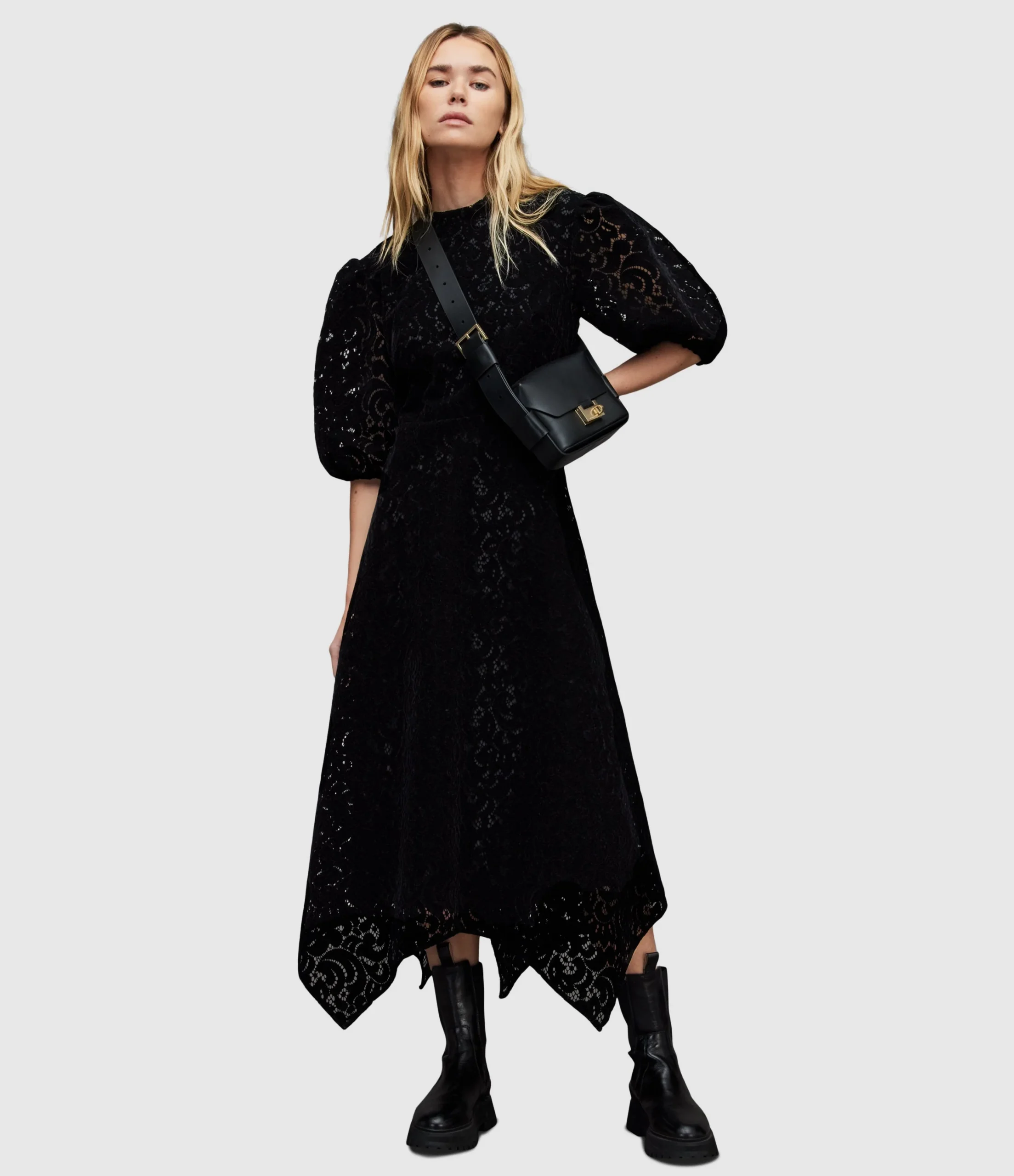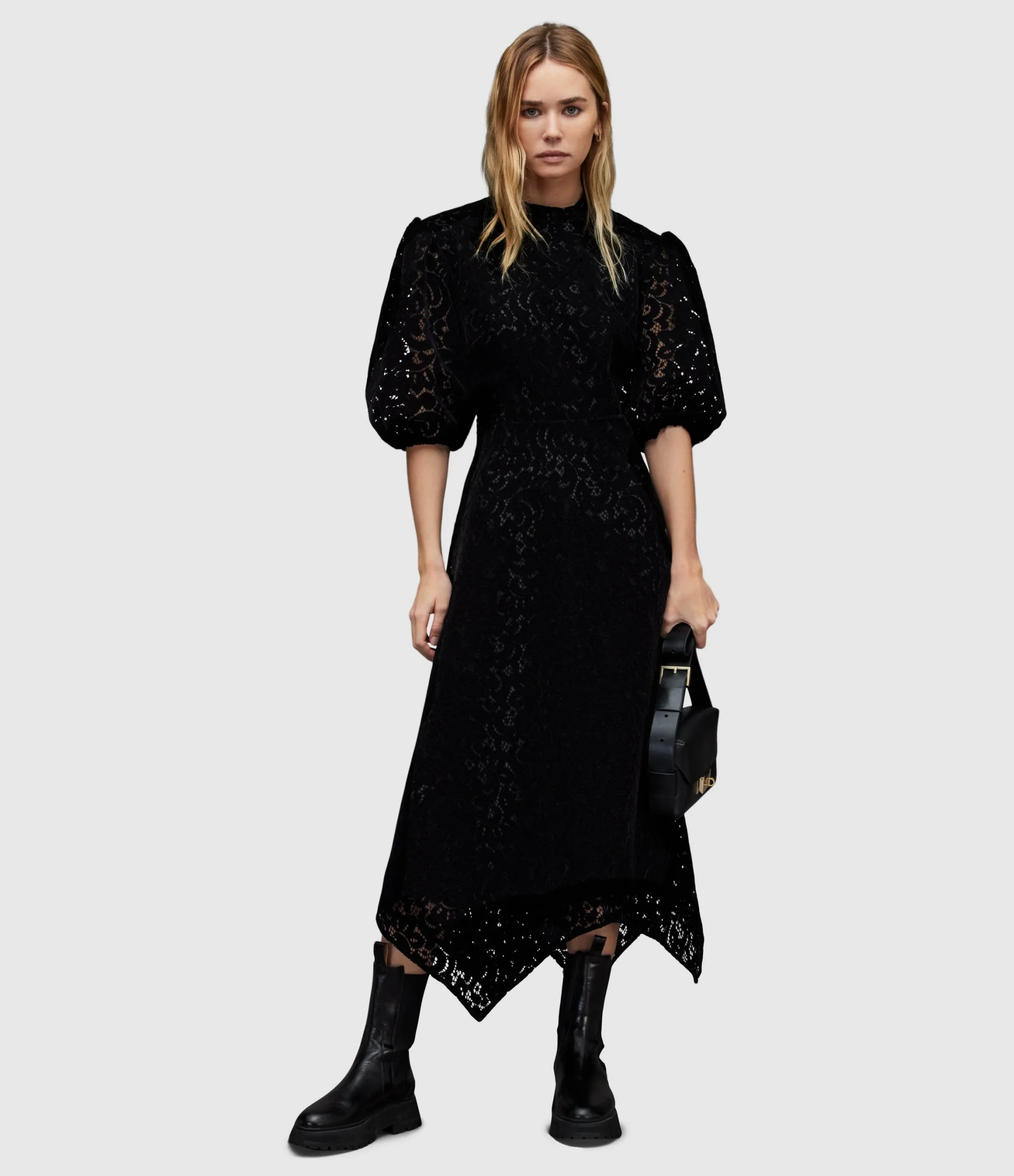 Vestido Camila Negro para mujer, marca AllSaints, de encaje. COMPOSICIÓN Y LAVADO: Consultar etiqueta interna.