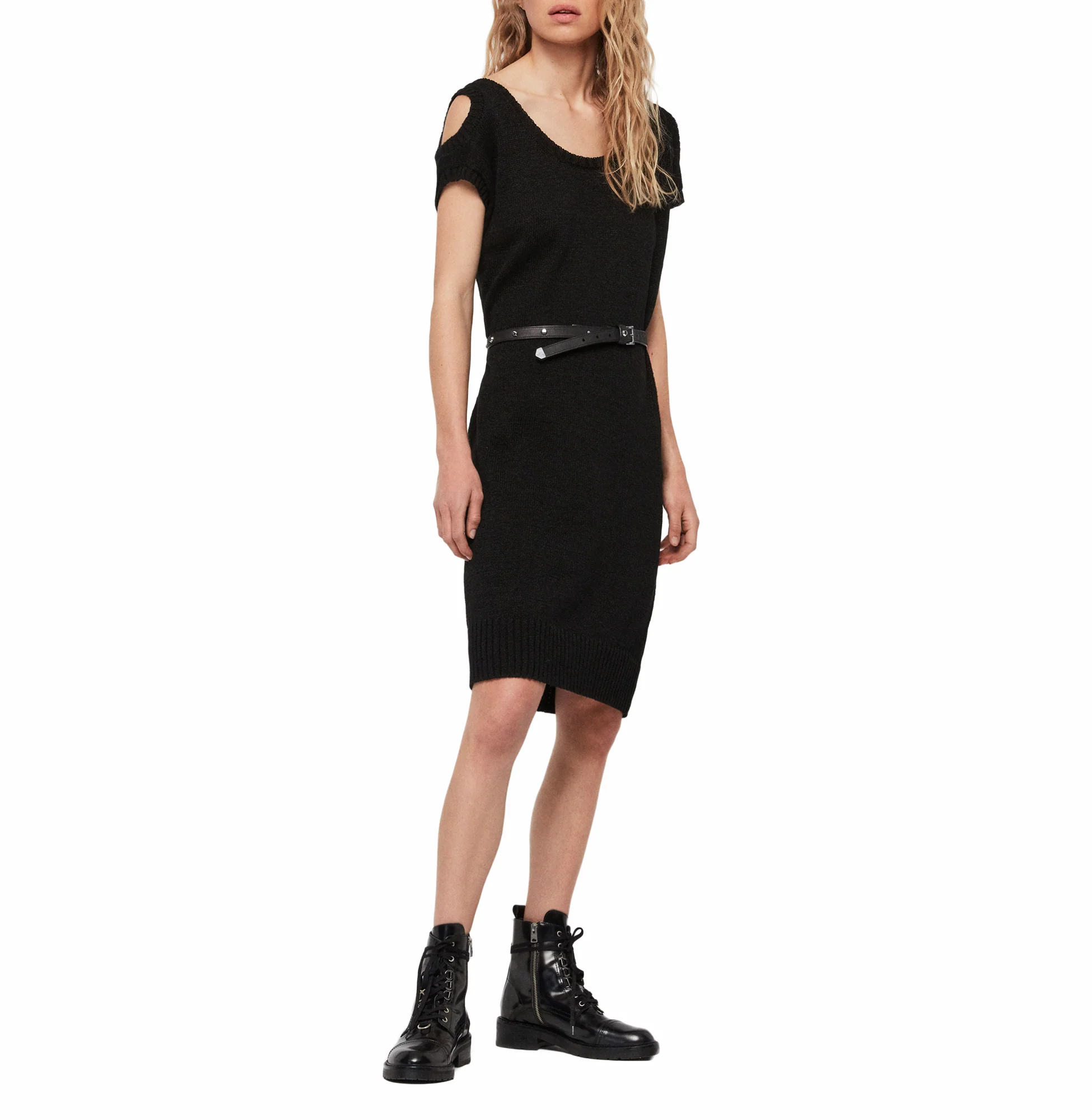 VESTIDO LARGOO CUELLO DE PICO, TIRAS DE ESPAGUETI, ADORNOS DE ENCAJE FLORAL TRANSPARENTE, DOBLADILLO FESTONEADO, PARCIALMENTE FORRADO, MARCA ALLSAINTS. COMPOSICIÓN: 58% ALGODÓN, 42% POLIÉSTER. INSTRUCCIONES DE LAVADO: LAVADO EN SECO.