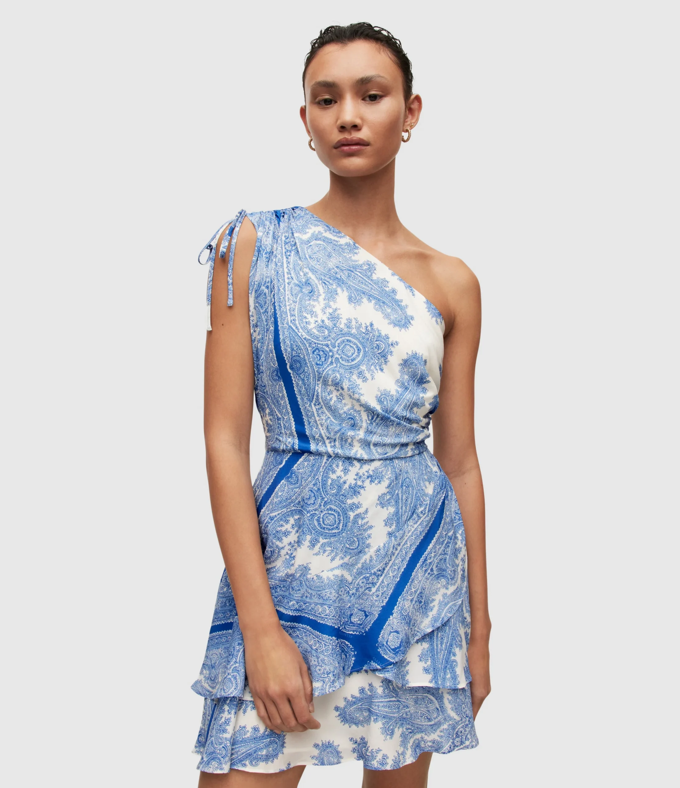 Vestido Cayla Rafaela Azul Medio para mujer, marca AllSaints. COMPOSICIÓN Y LAVADO: Consultar etiqueta interna.