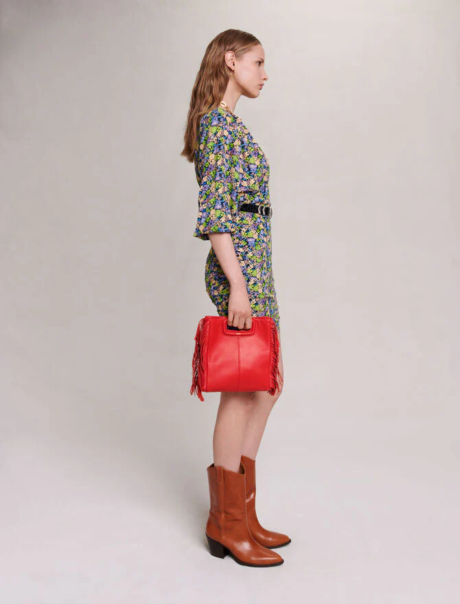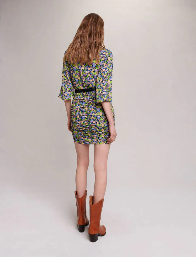 Para la nueva colección, Maje juega con los estampados y los volúmenes, creando contrastes y superposiciones inesperadas.Este vestido corto decorado con un estampado floral tiene un cuello redondo, mangas largas con puños elásticos y una figura delicadamente drapeada.Ablusado en la parte superior, tiene una costura en punta bajo el pecho, fruncidos en los laterales de la falda y un cierre de cremallera en la espalda.Para realzar la cintura, opte por un cinturón de cuero y añada botas del oeste y un bolso insignia con flecos para completar el «look».Ref.: MFPRO03170El tejido principal de esta prenda está fabricado con al menos un 50% de poliéster reciclado. Un nuevo hilo fabricado a partir de residuos plásticos o textiles, para una mayor circularidad.En Maje, imaginamos el futuro. Compartimos el objetivo de reducir, un poquito más cada temporada, el impacto en el medio ambiente de las prendas que diseñamos.