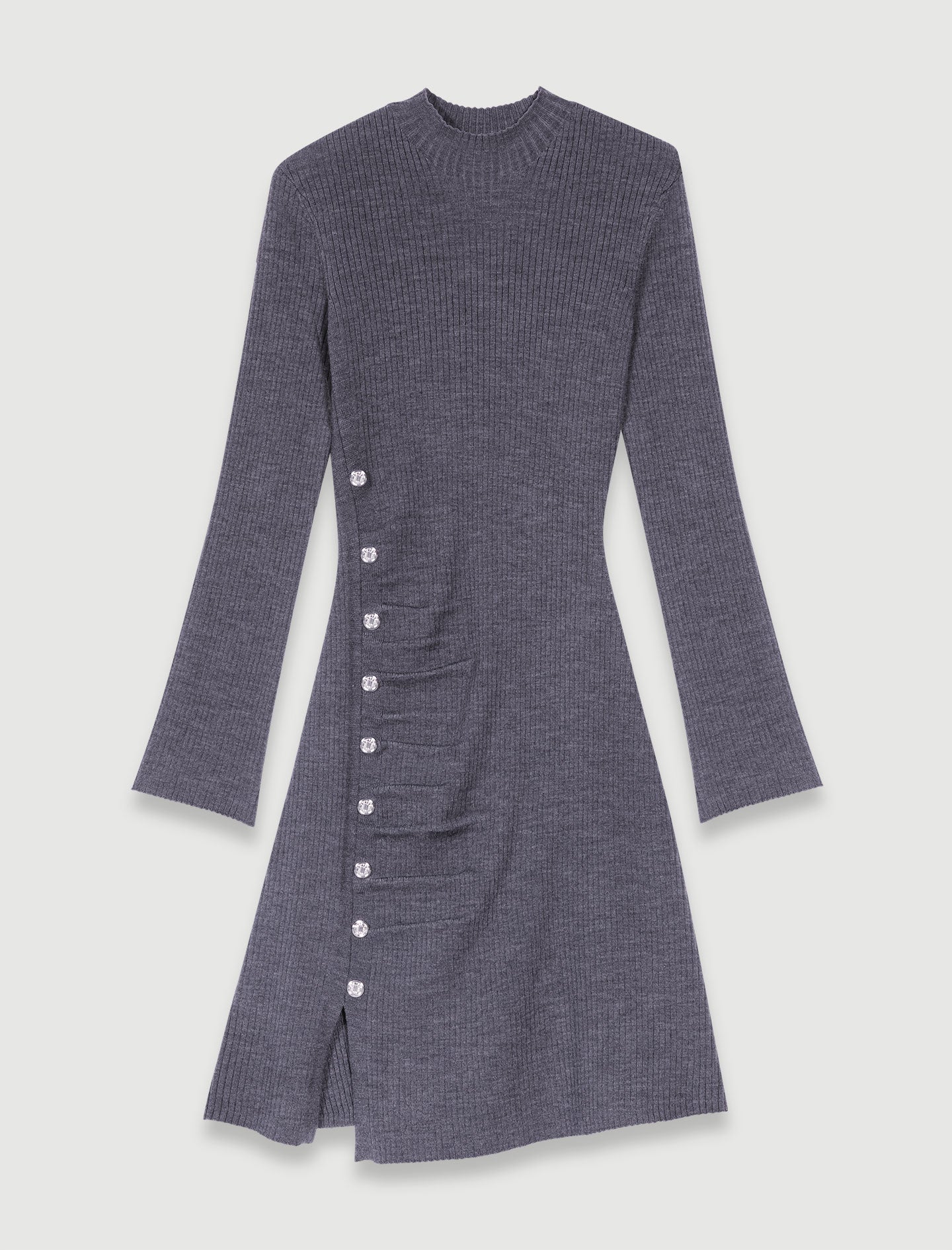 Para esta nueva colección, el estudio se inspira en la elegancia británica. La chica Maje encarna la audacia y mezcla piezas refinadas con detalles seductores.Con un cuello alto y mangas 3/4, este vestido corto de punto de canalé tiene una apariencia irresistible y asertiva. Intensamente elegante, seduce por sus sexis detalles: botones de bisutería con el trébol a lo largo de la silueta, fruncidos y una abertura en el bajo.Con su corte entallado, se puede llevar pegado a la piel y queda bien con cualquier estilo.Fácil de combinar con otras prendas y accesorios, dele una vuelta de tuerca a su «look» con un bolso M, gafas de sol, calcetines altos y botas.Ref.: MFPRO03191