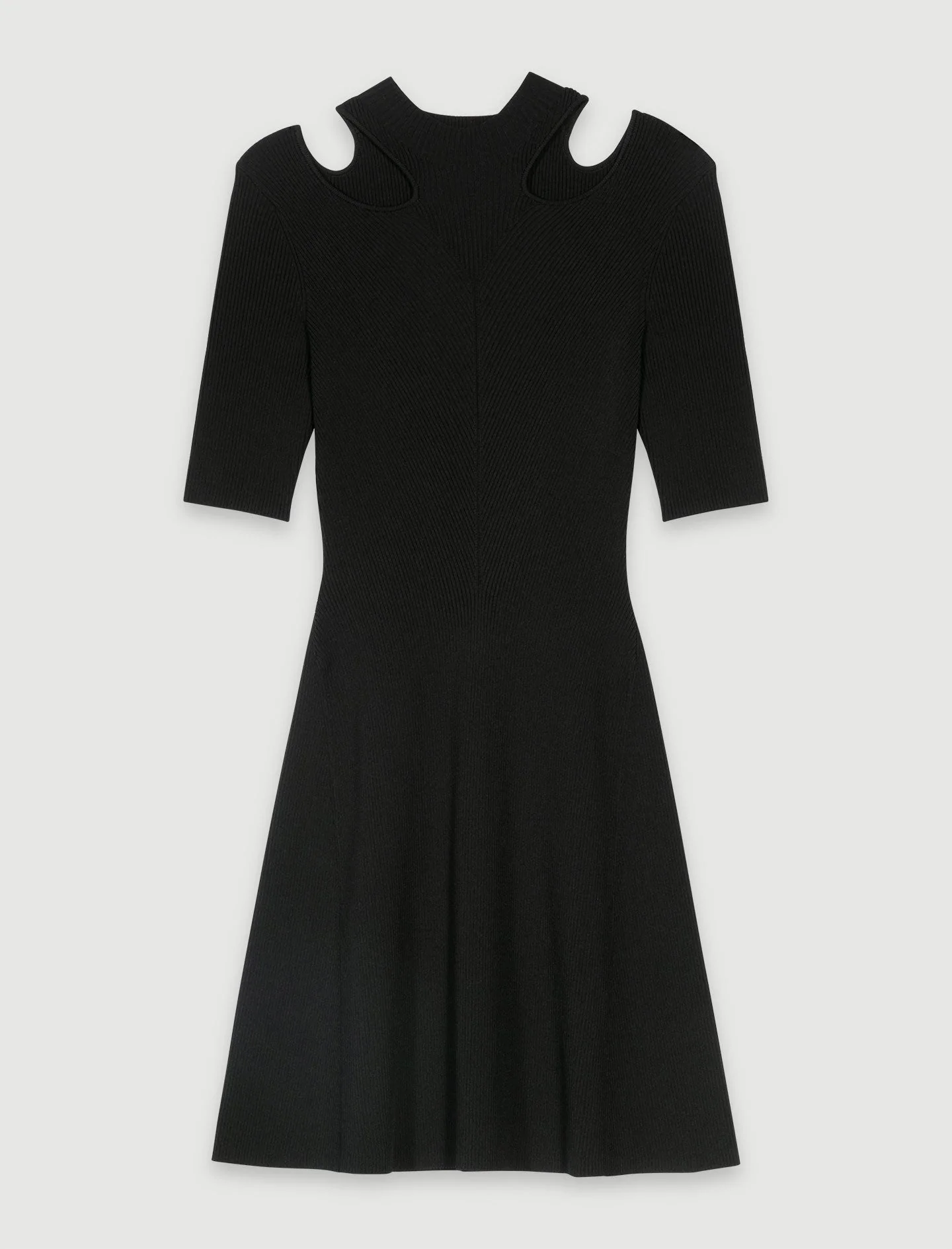 Imbuidos de la elegancia británica de los años 70, esta temporada, los vestidos de niña Maje presentan un atrevido juego de volúmenes y una silueta sexy y cautivadora.Este vestido corto de punto acanalado tiene un efecto de segunda piel, con impresionantes paneles recortados. Con cuello alto y mangas tres cuartos, tiene detalles de corte y falda con vuelo. Ideal para estructurar tu silueta con estilo, combina comodidad y elegancia, aportando un toque de carácter a tu look.Fácil de mezclar y combinar, juega con los contrastes y vístelo con unas botas moteras, una gorra y joyas.Ref: MFPRO03190