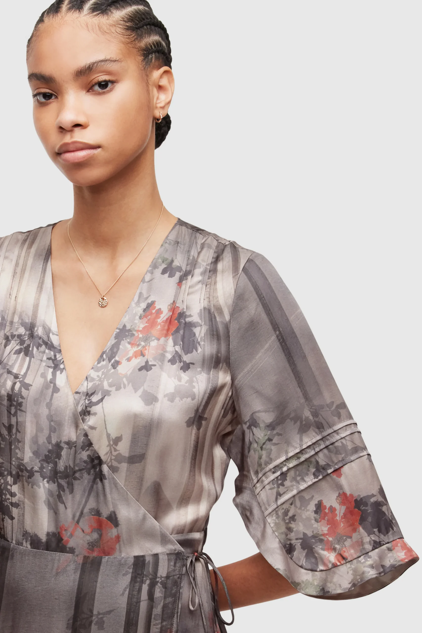 Vestido Delana Koura Gris Sombra, marca AllSaints. Composición: 65% Viscosa 35% seda