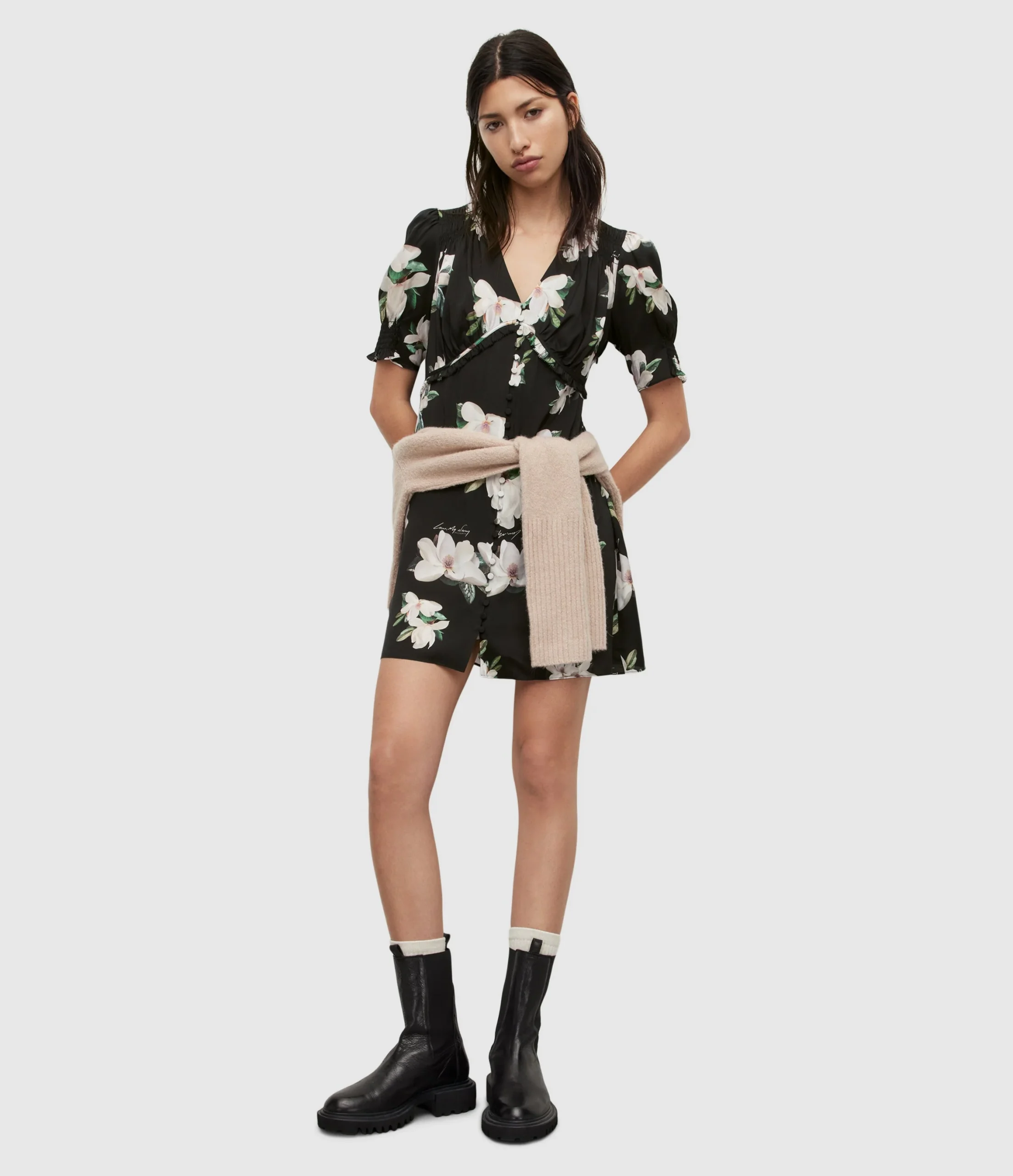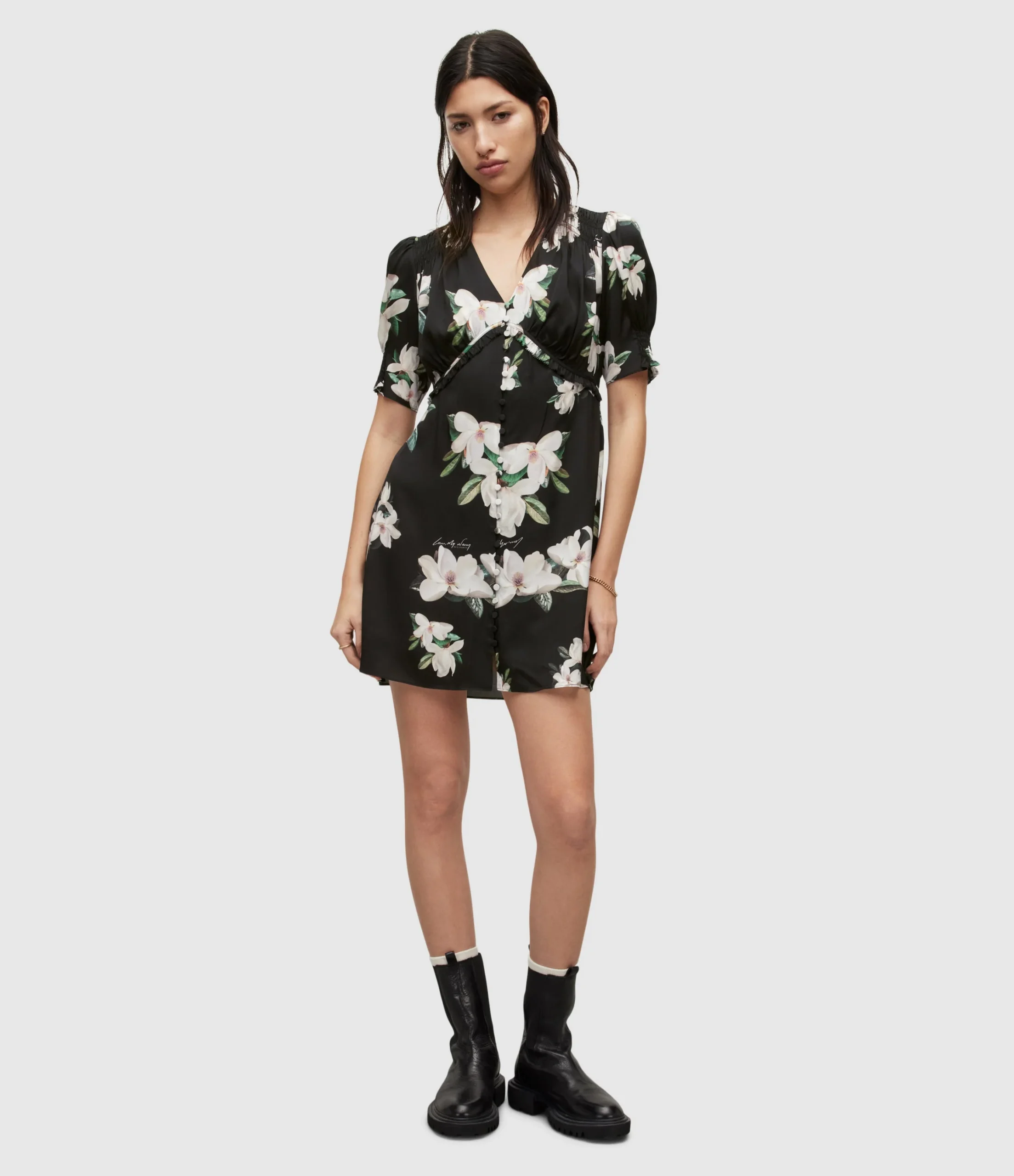 Vestido Demi Alessandra Negro para mujer, marca AllSaints. COMPOSICIÓN Y LAVADO: Consultar etiqueta interna.
