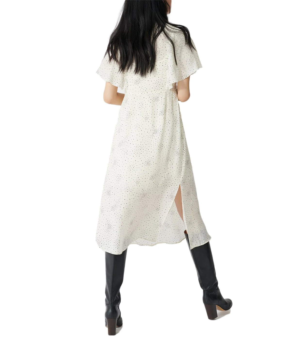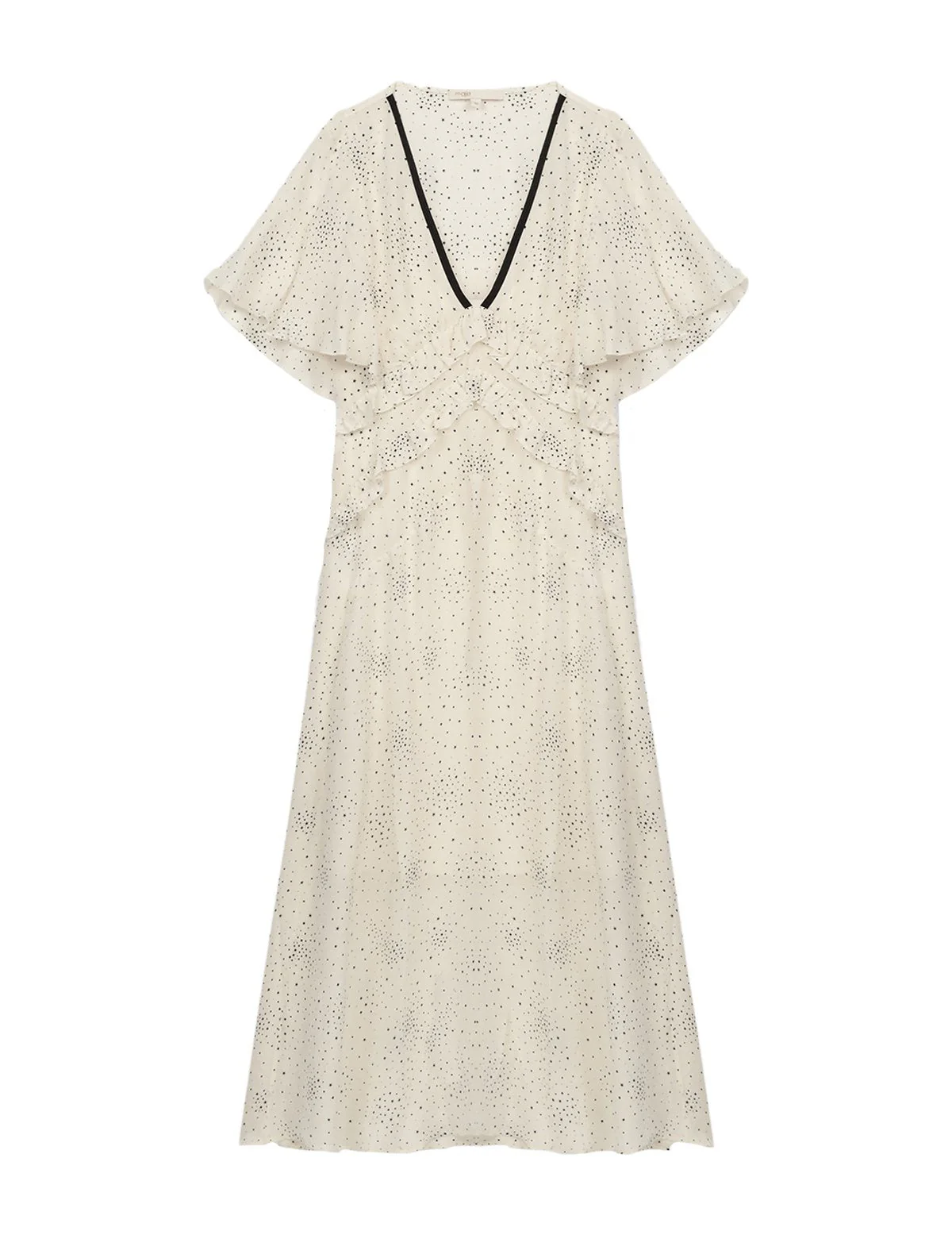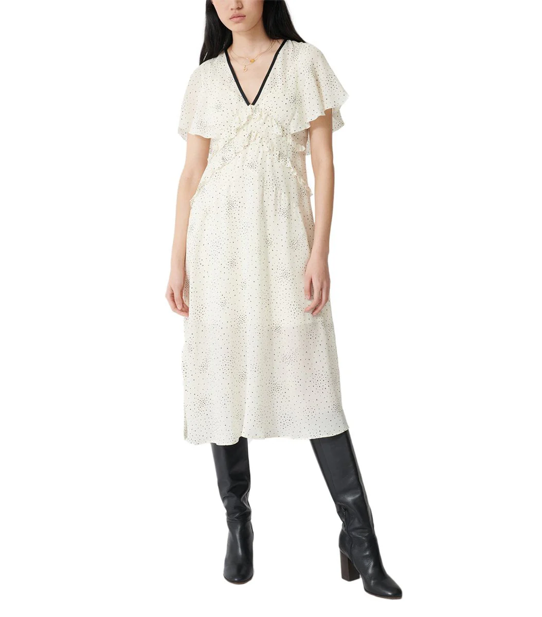 VESTIDO RACKY ECRU/NOIR, MARCA MAJE. INSTRUCCIONES DE LAVADO EN ETIQUETA INTERNA.