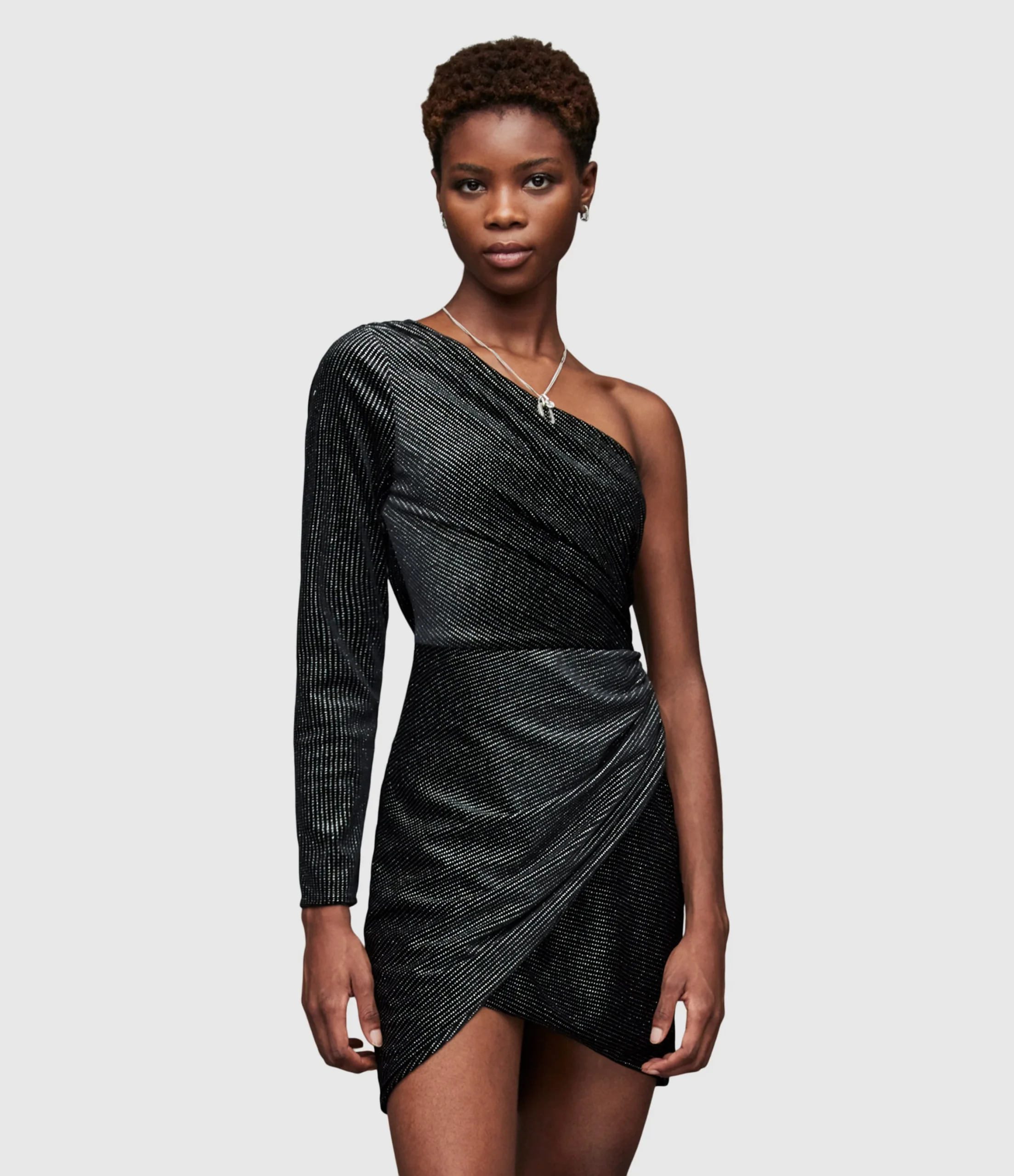 Vestido Ezra Sparkle Negro para mujer, marca AllSaints. COMPOSICIÓN Y LAVADO: Consultar etiqueta interna.