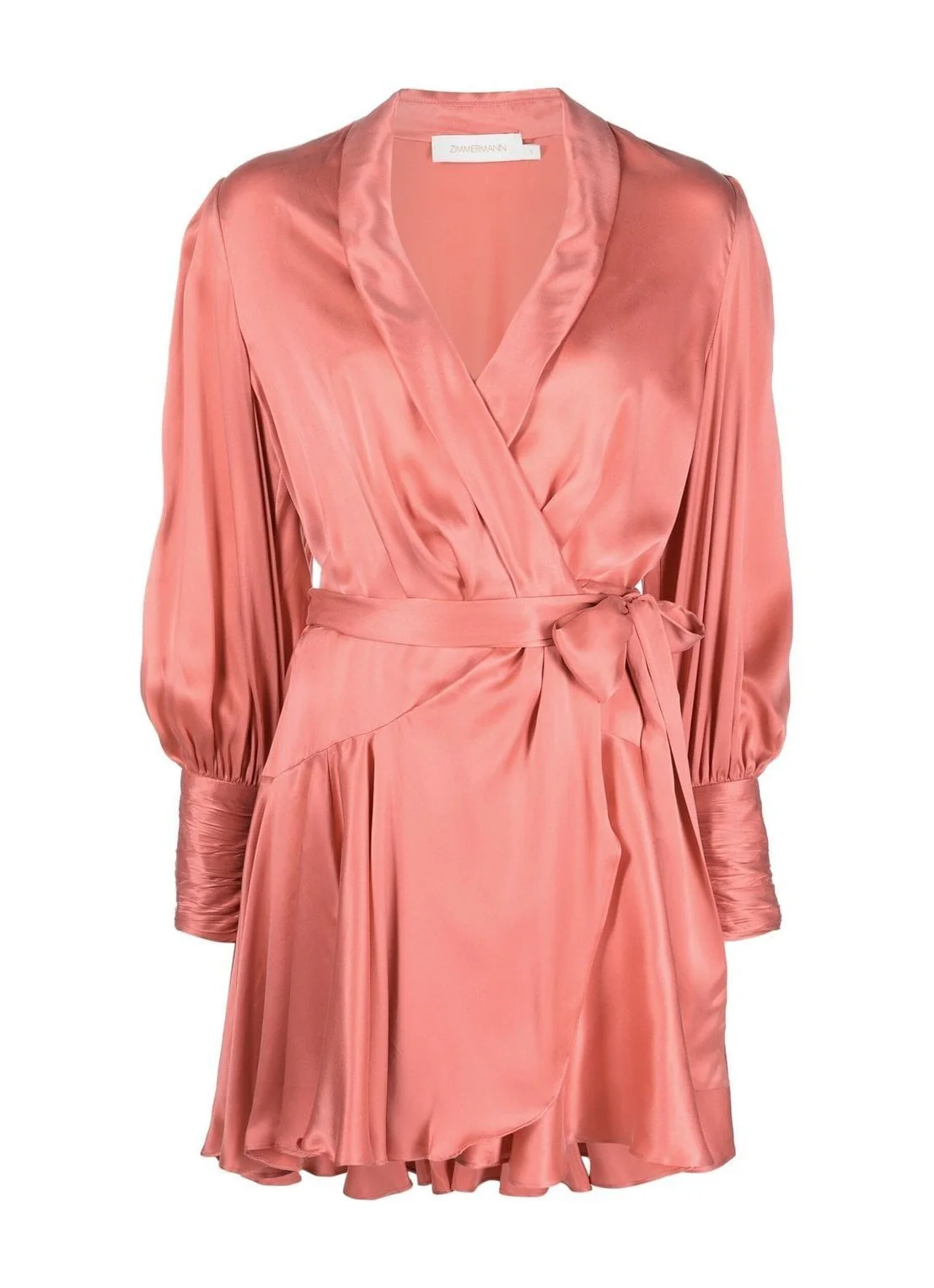 Vestido Formal Silk Wrap Mini Rosa, marca Zimmermann. Consultar composición y cuidados de lavado en etiqueta interna.