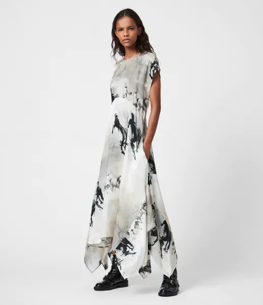 Vestido Gianna Epoto Ecru White, marca AllSaints. Composición: 65% lyocell 35% silk