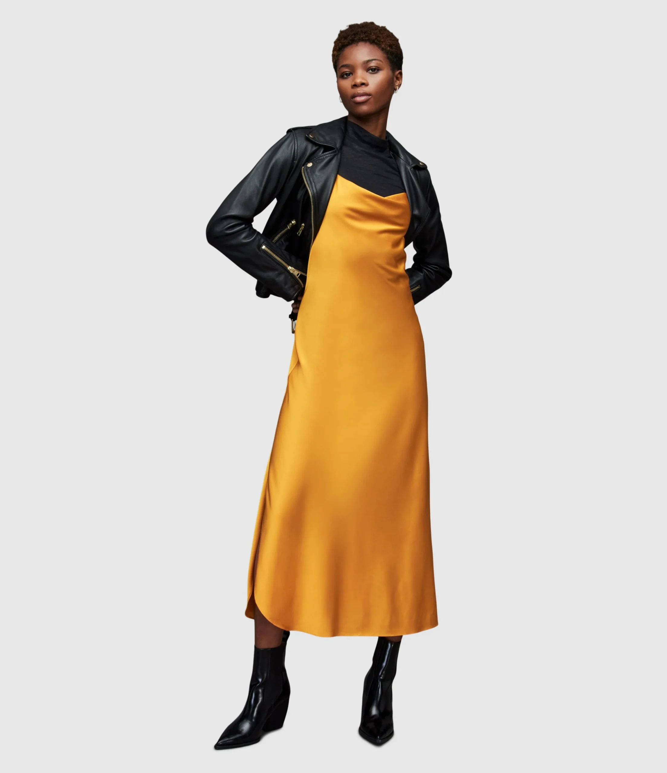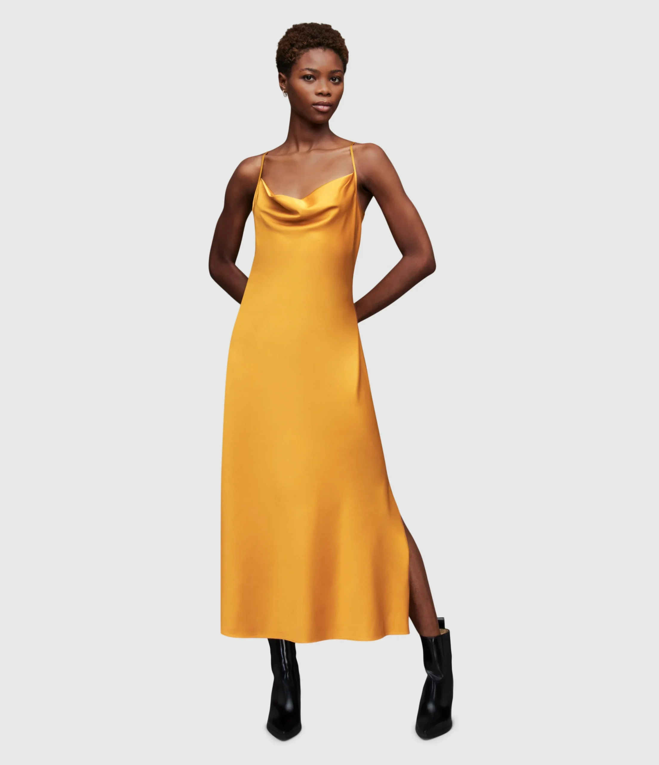 Vestido Hadley Amarillo para mujer, marca AllSaints. COMPOSICIÓN Y LAVADO: Consultar etiqueta interna.