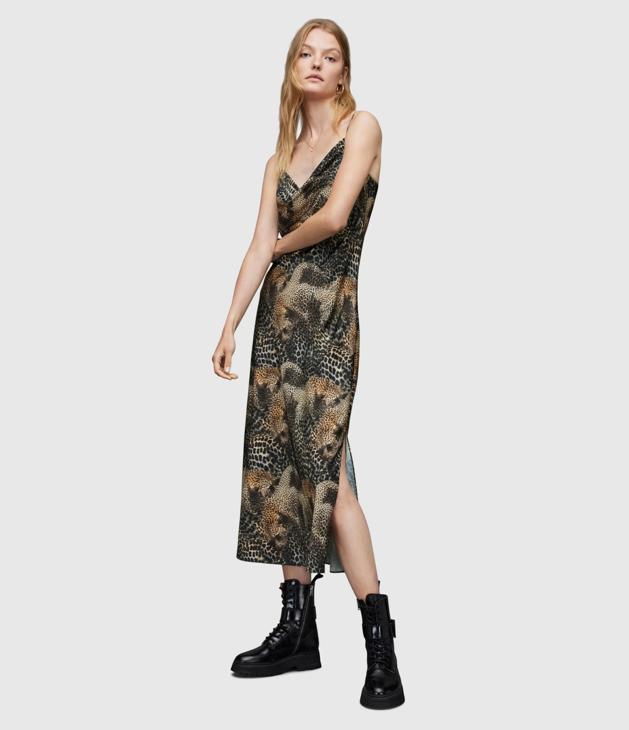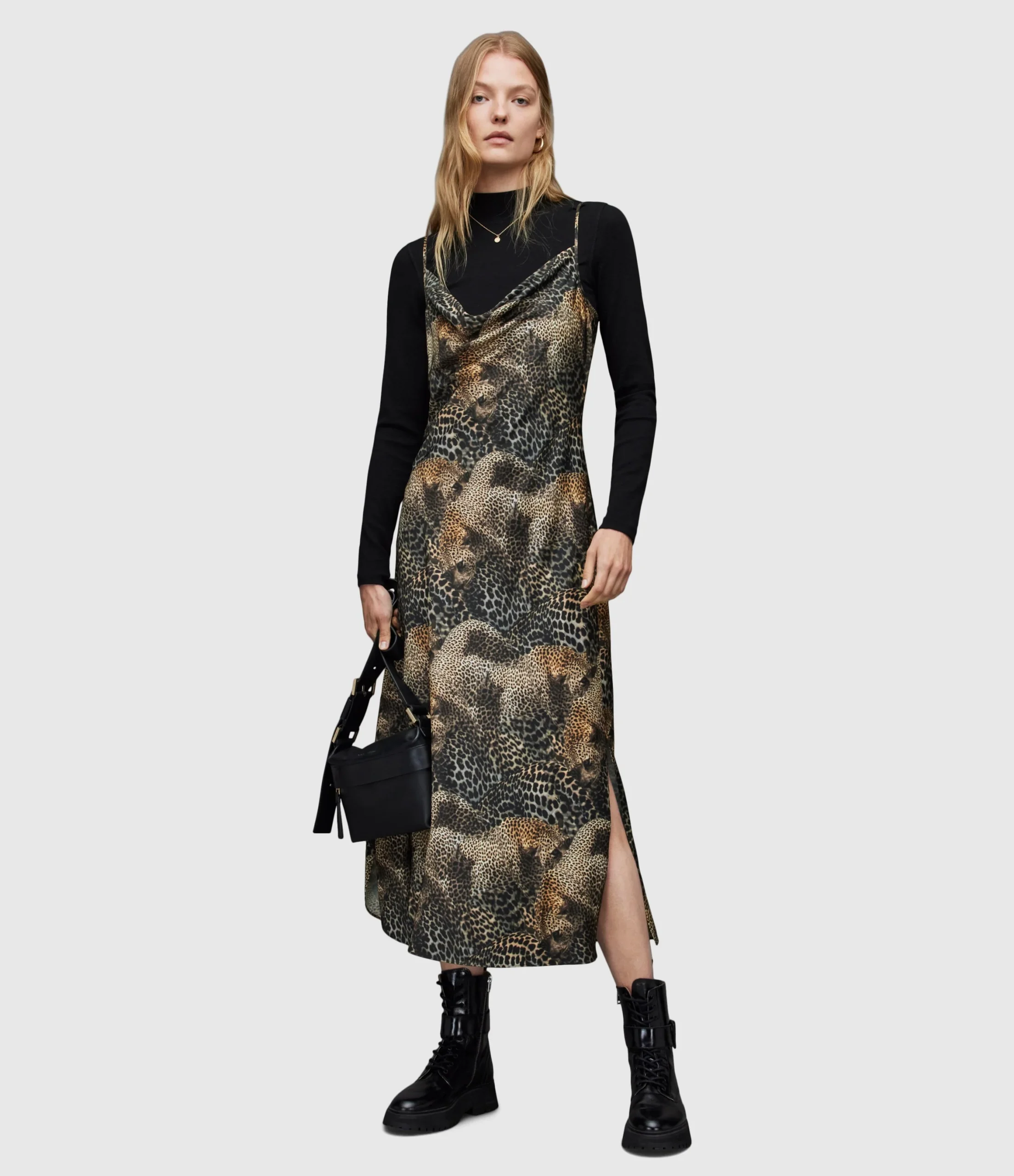 Vestido Hadley Emelia Café para mujer, marca AllSaints. COMPOSICIÓN Y LAVADO: Consultar etiqueta interna.