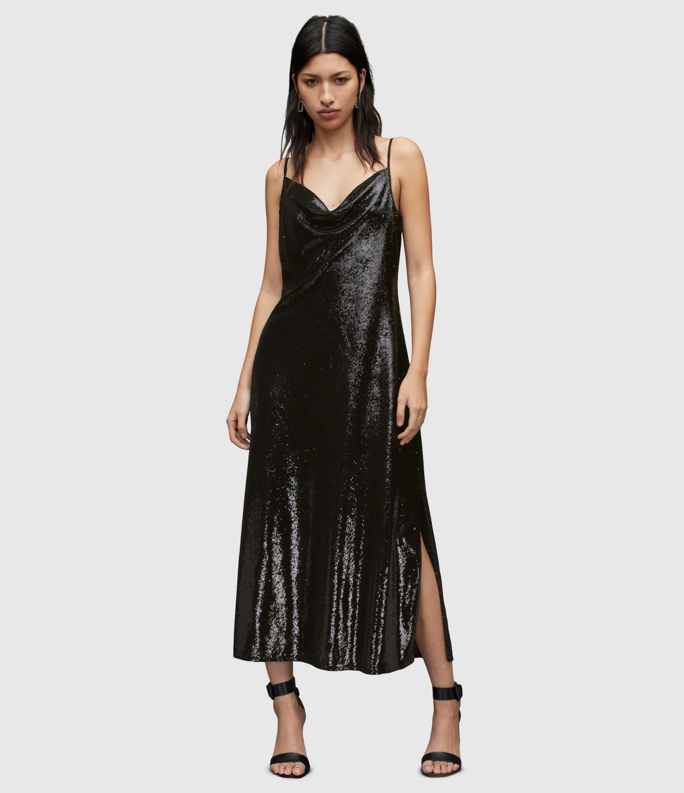 Vestido Hadley Negro para mujer, marca AllSaints, de lentejuelas. COMPOSICIÓN Y LAVADO: Consultar etiqueta interna.