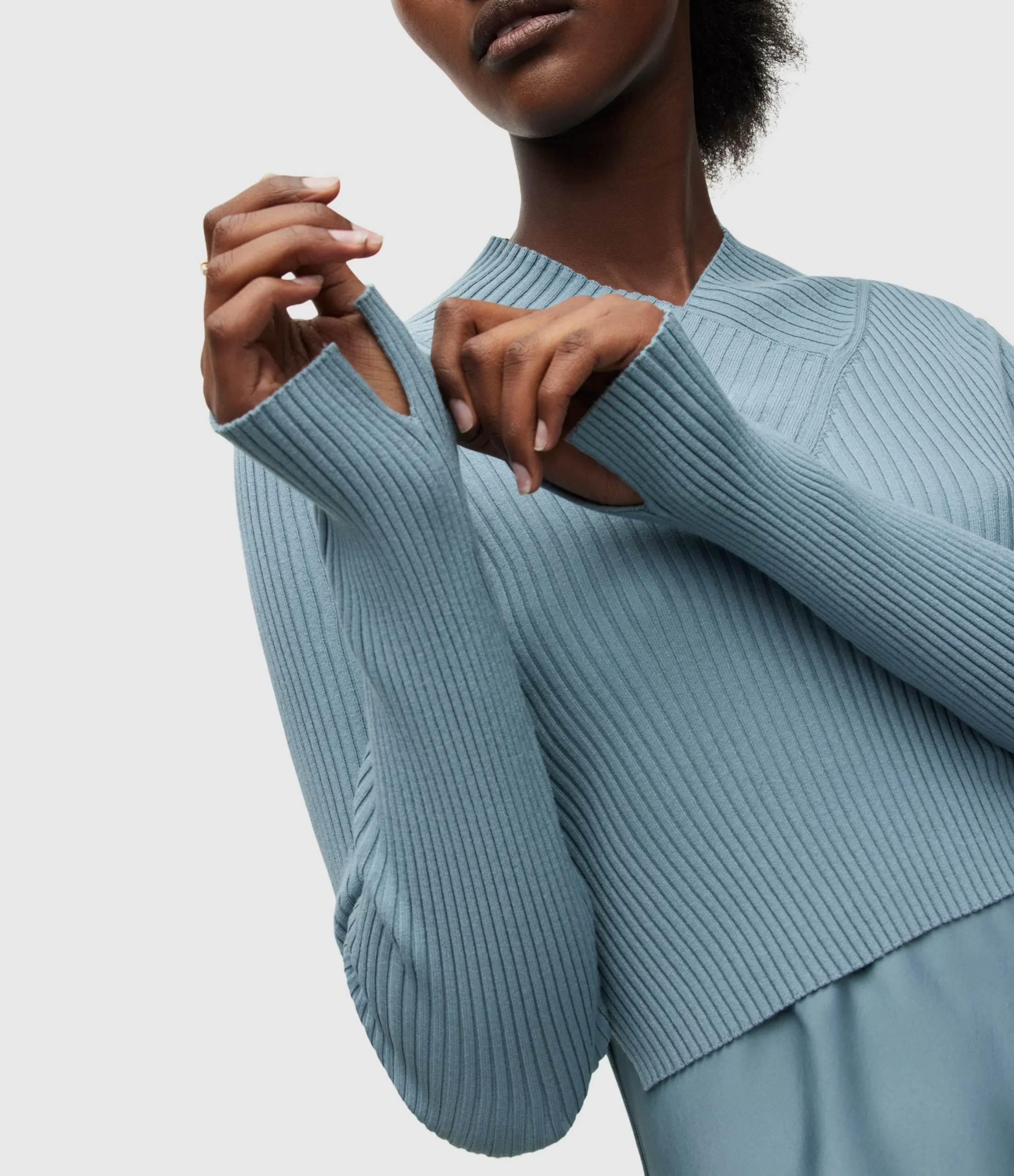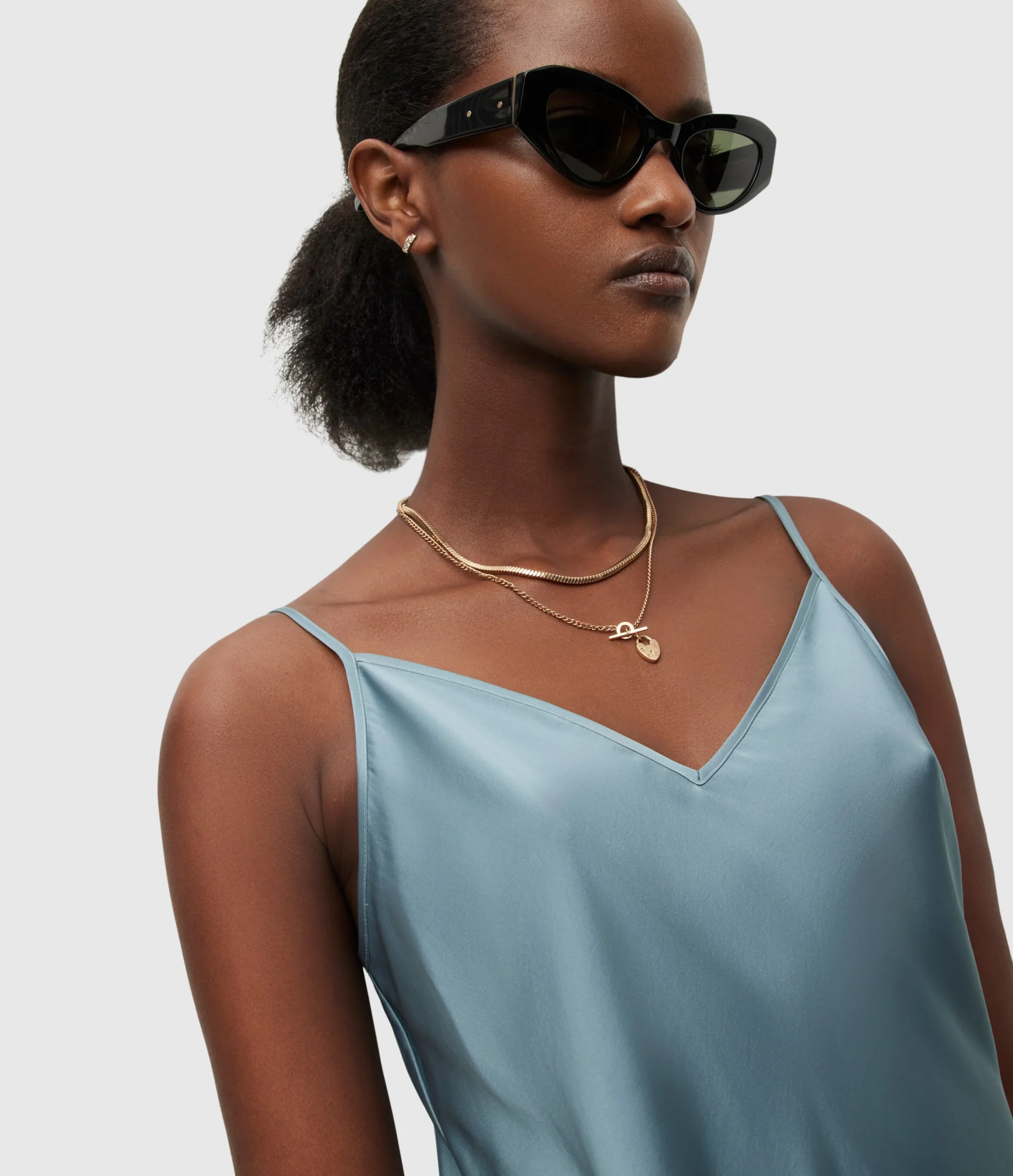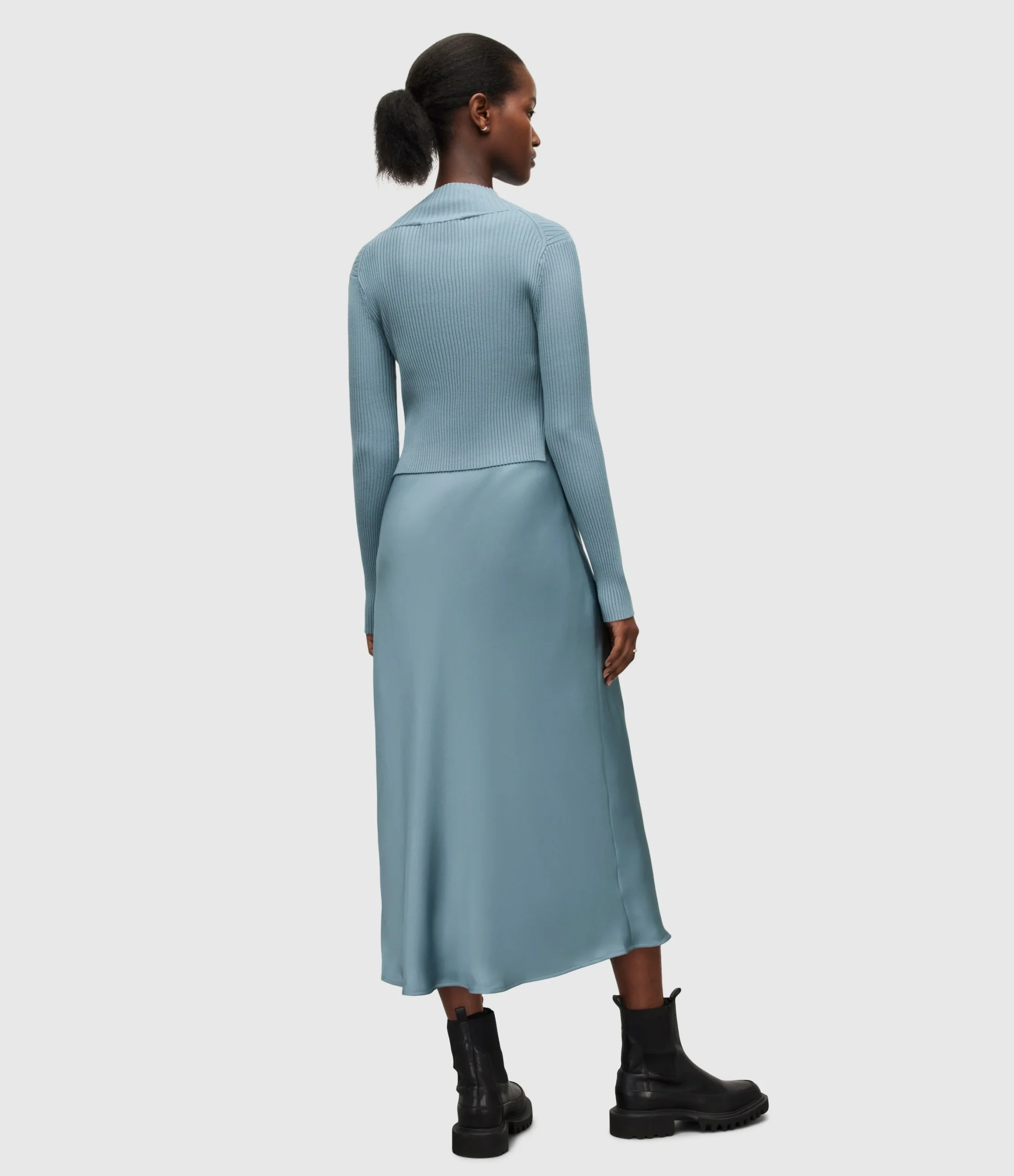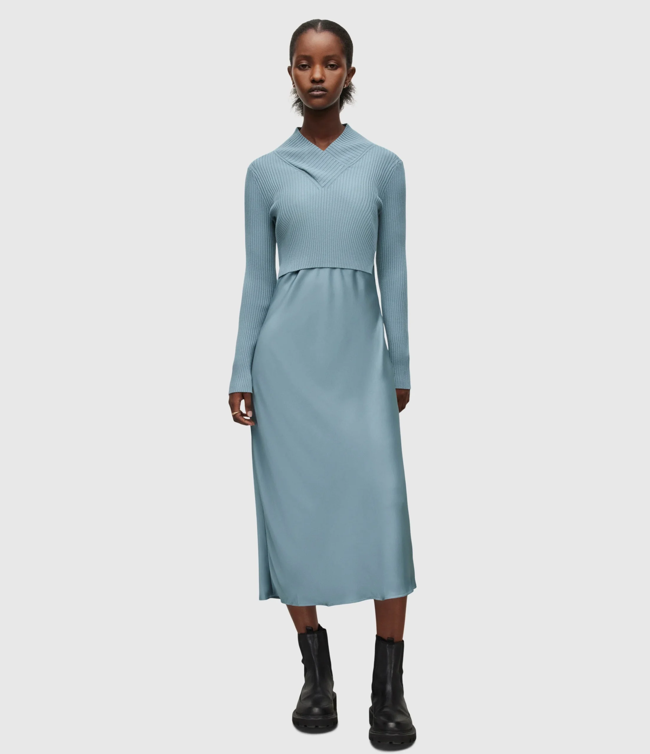 Vestido Hana Azul Medio para mujer, marca AllSaints. COMPOSICIÓN Y LAVADO: Consultar etiqueta interna.