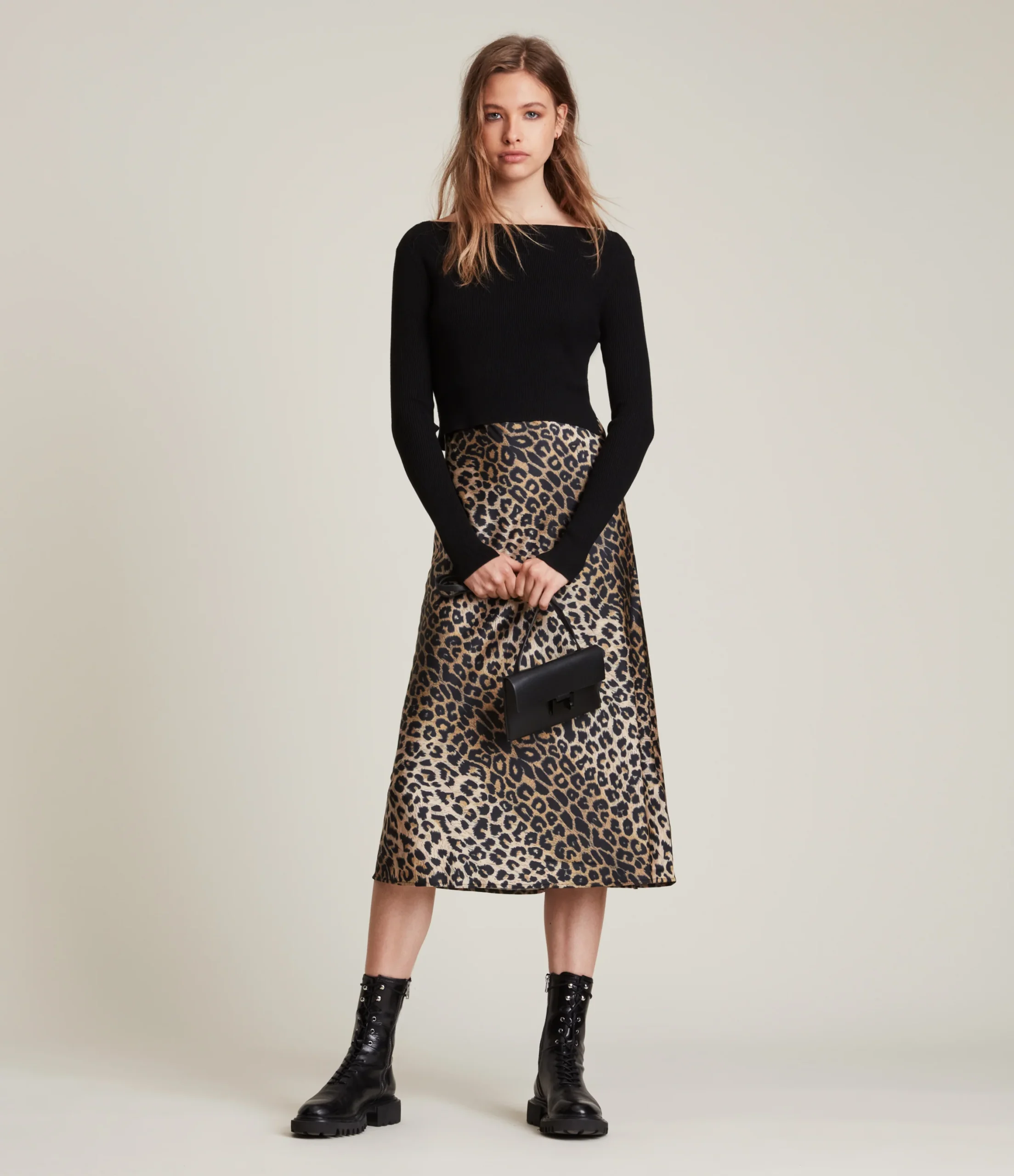 Vestido Hera Leppo Black, marca AllSaints. Composición: 71% VISCOSE 29% POLYESTER