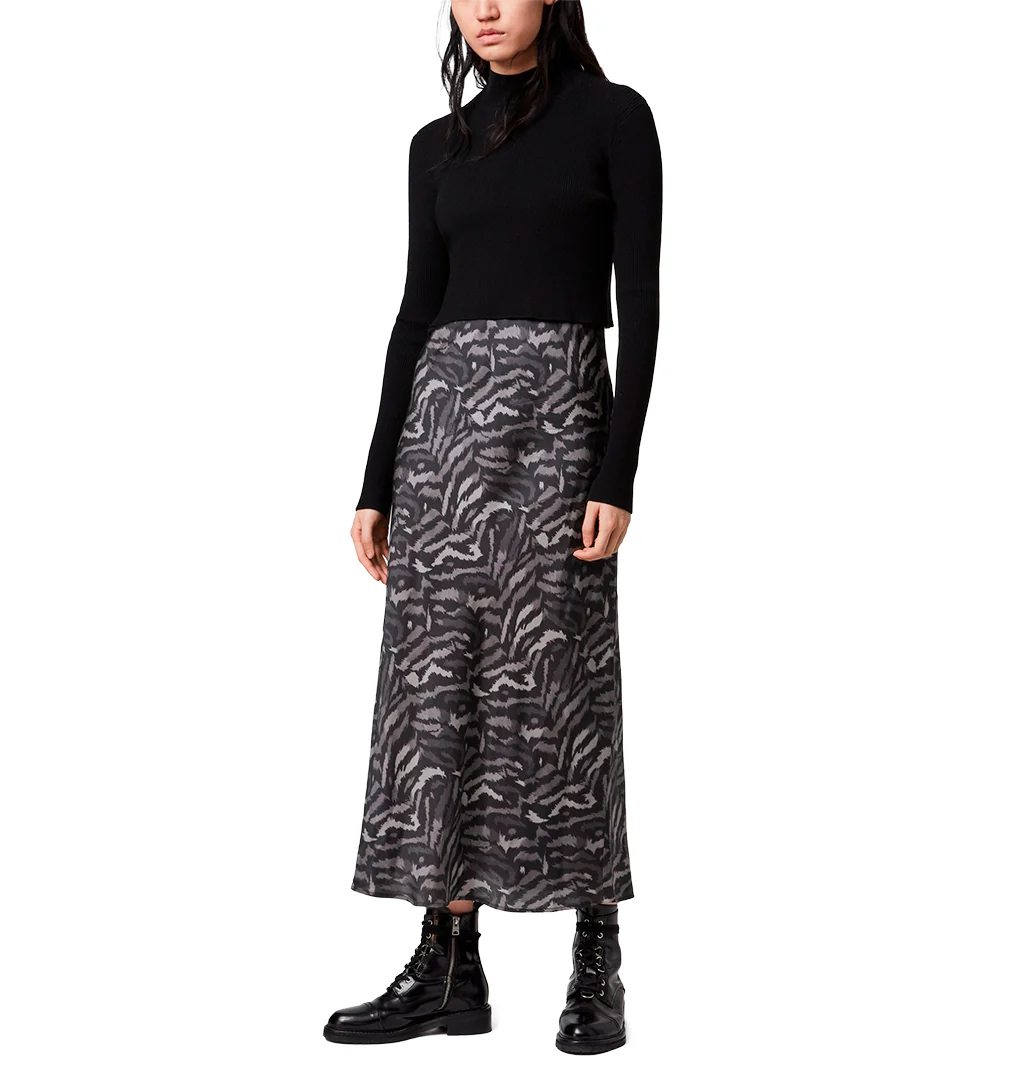 VESTIDO HERA REMIX DRESS NEGRO, MARCA ALLSAINTS. INSTRUCCIONES DE LAVADO: CONSULTAR ETIQUETA INTERNA. COMPOSICIÓN: CONSULTAR ETIQUETA INTERNA.