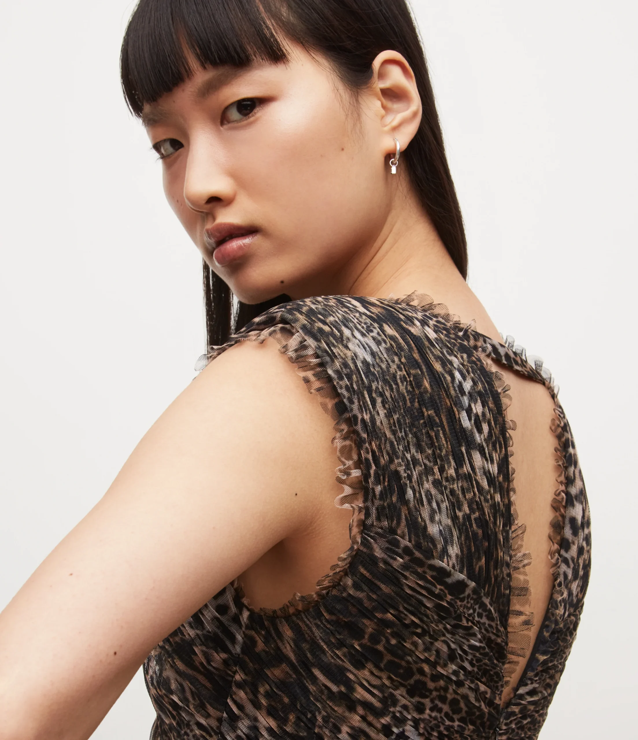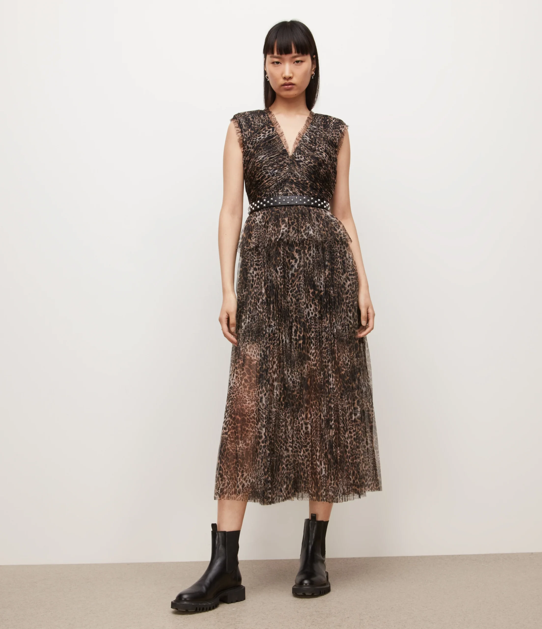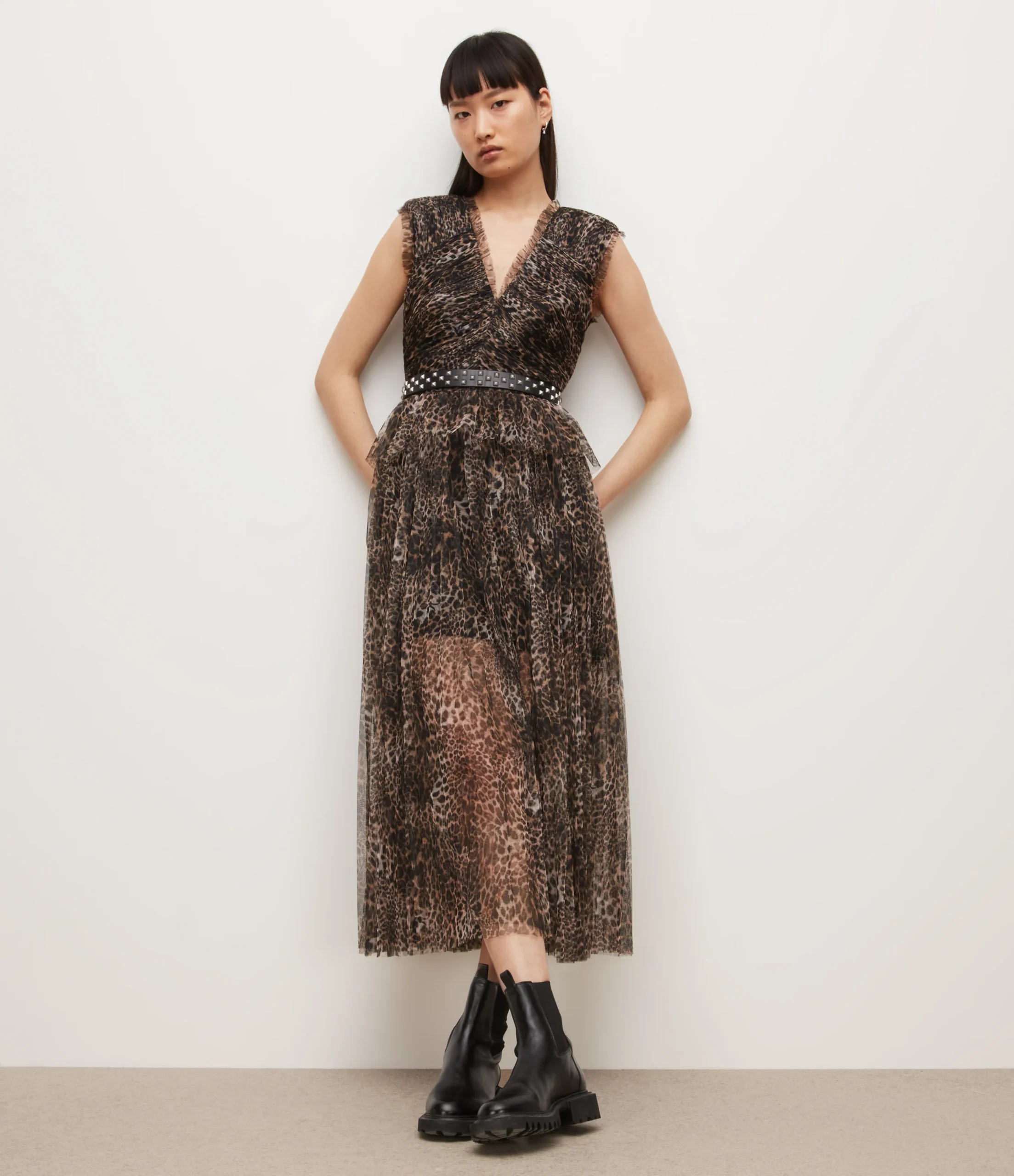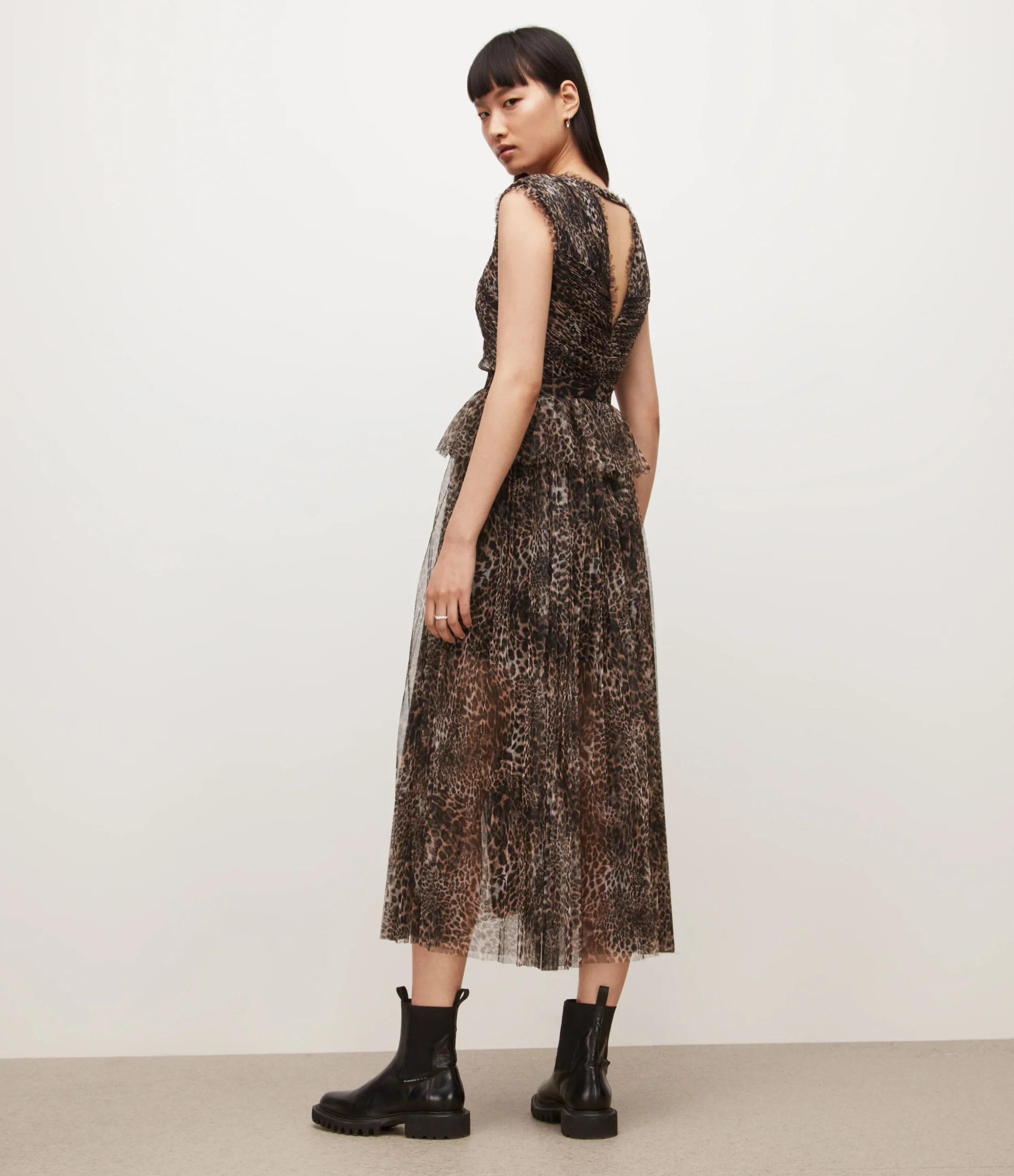Vestido Indra Kiku Café, marca AllSaints. Composición: 100% polyester