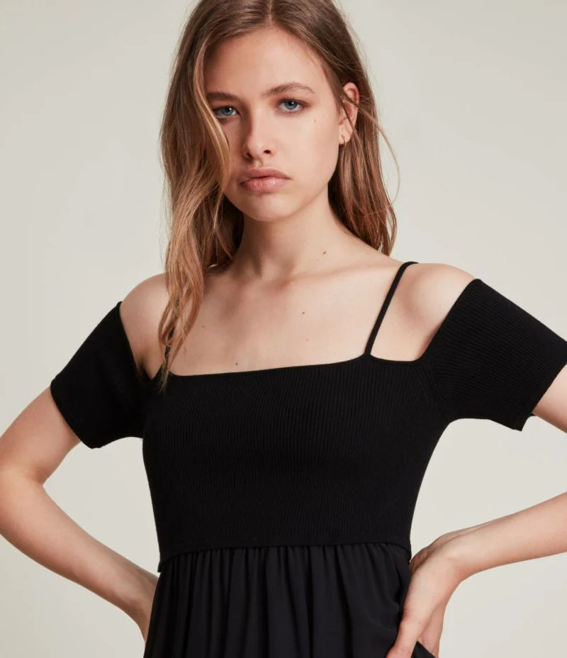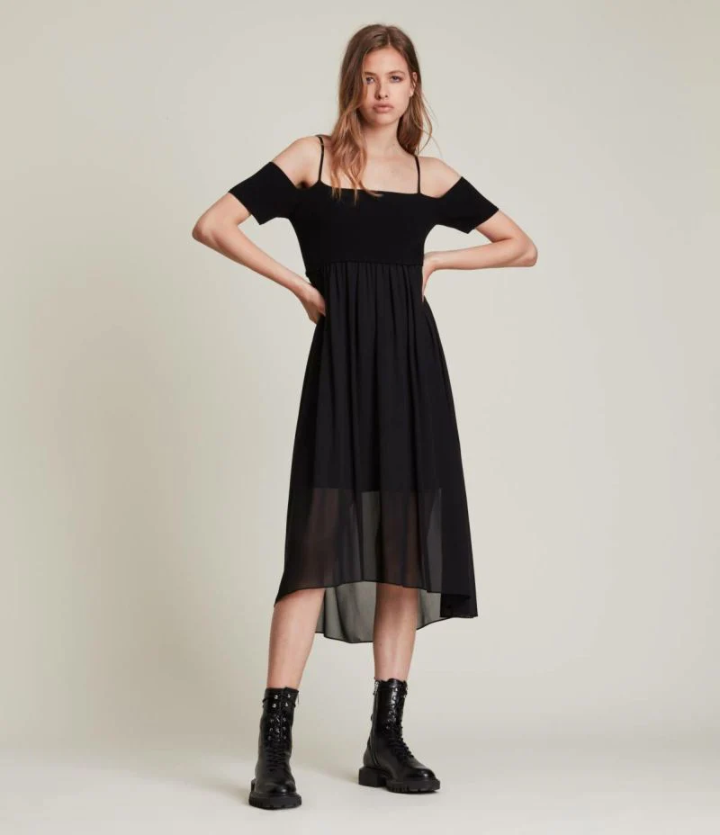 Vestido Jojo Black, marca AllSaints. Composición: 71% viscose 29% polyester