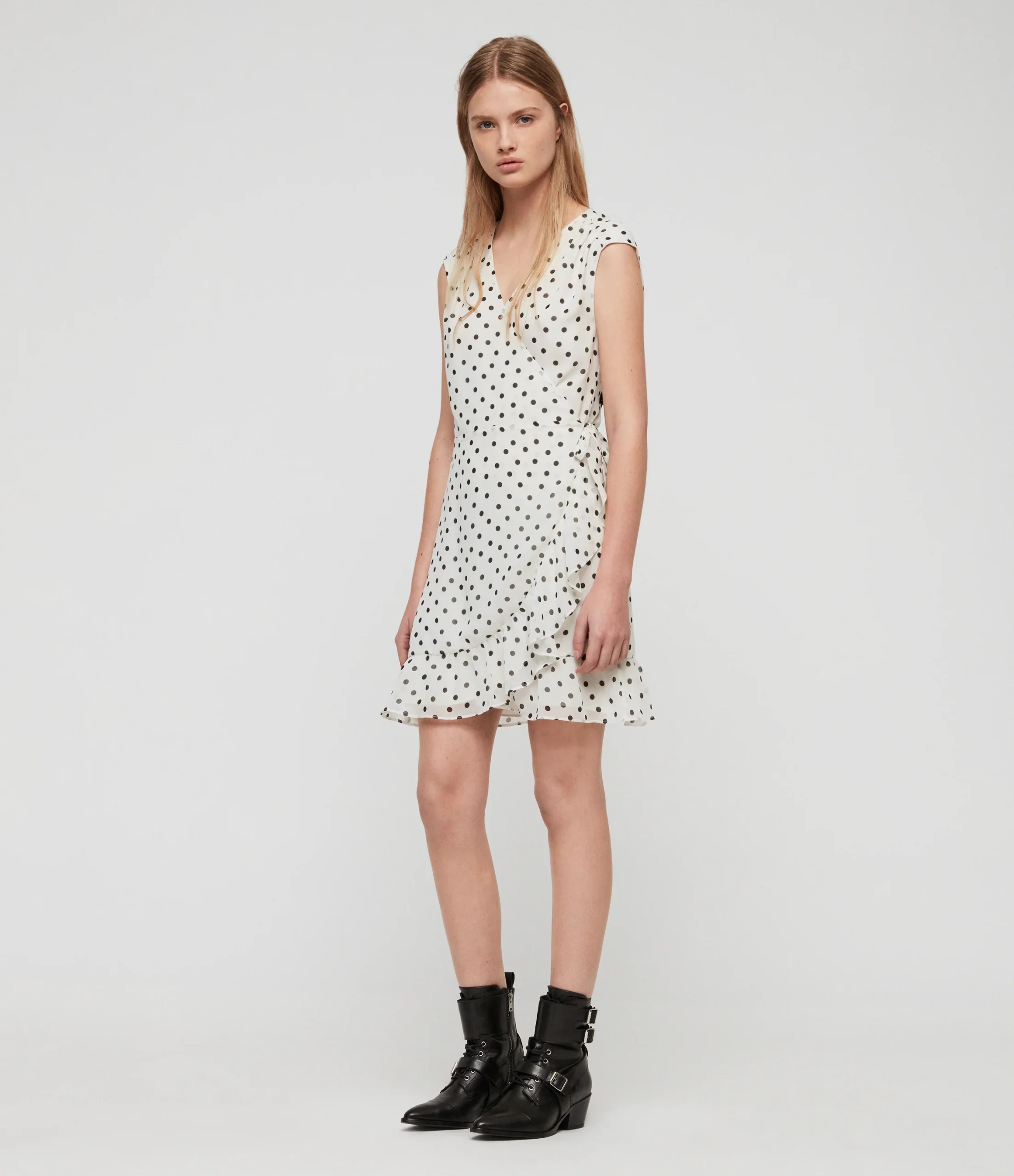 VESTIDO KRYSTAL DOT DRESS BLANCO, MARCA ALLSAINTS. INSTRUCCIONES DE LAVADO: CONSULTAR ETIQUETA INTERNA. COMPOSICIÓN: CONSULTAR ETIQUETA INTERNA.