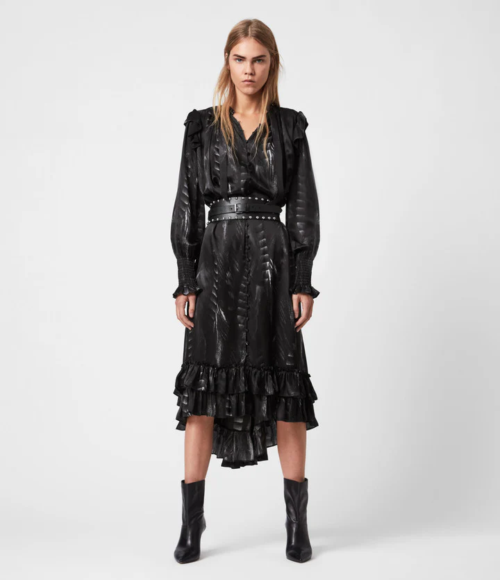 Vestido Lara Viola Black, marca AllSaints. Composición: 67% VISCOSA 33% SEDA