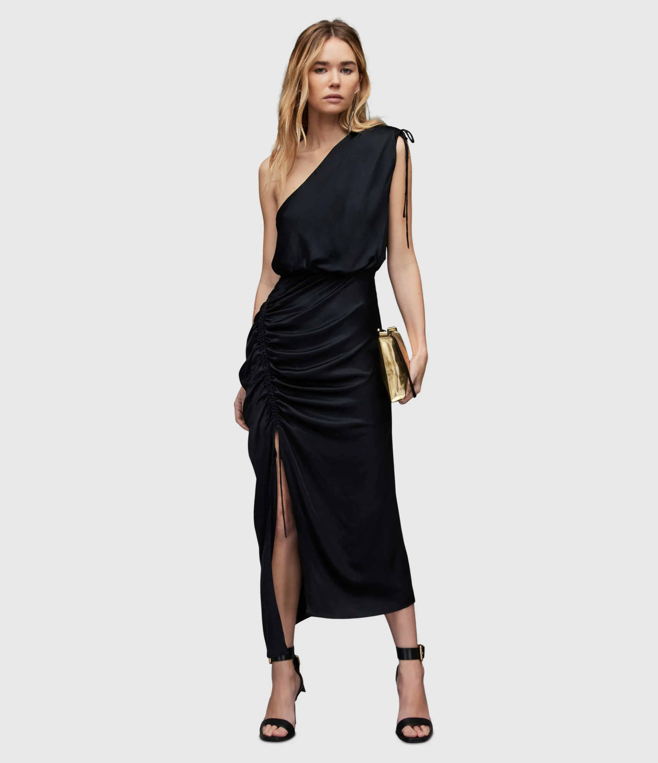Vestido Laura Negro para mujer, marca AllSaints. COMPOSICIÓN Y LAVADO: Consultar etiqueta interna.