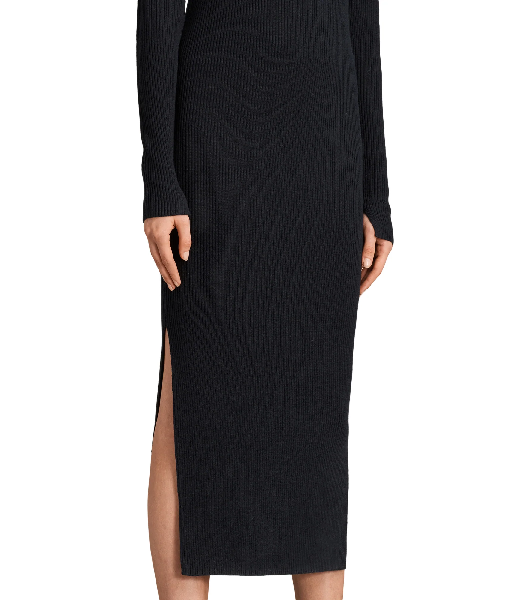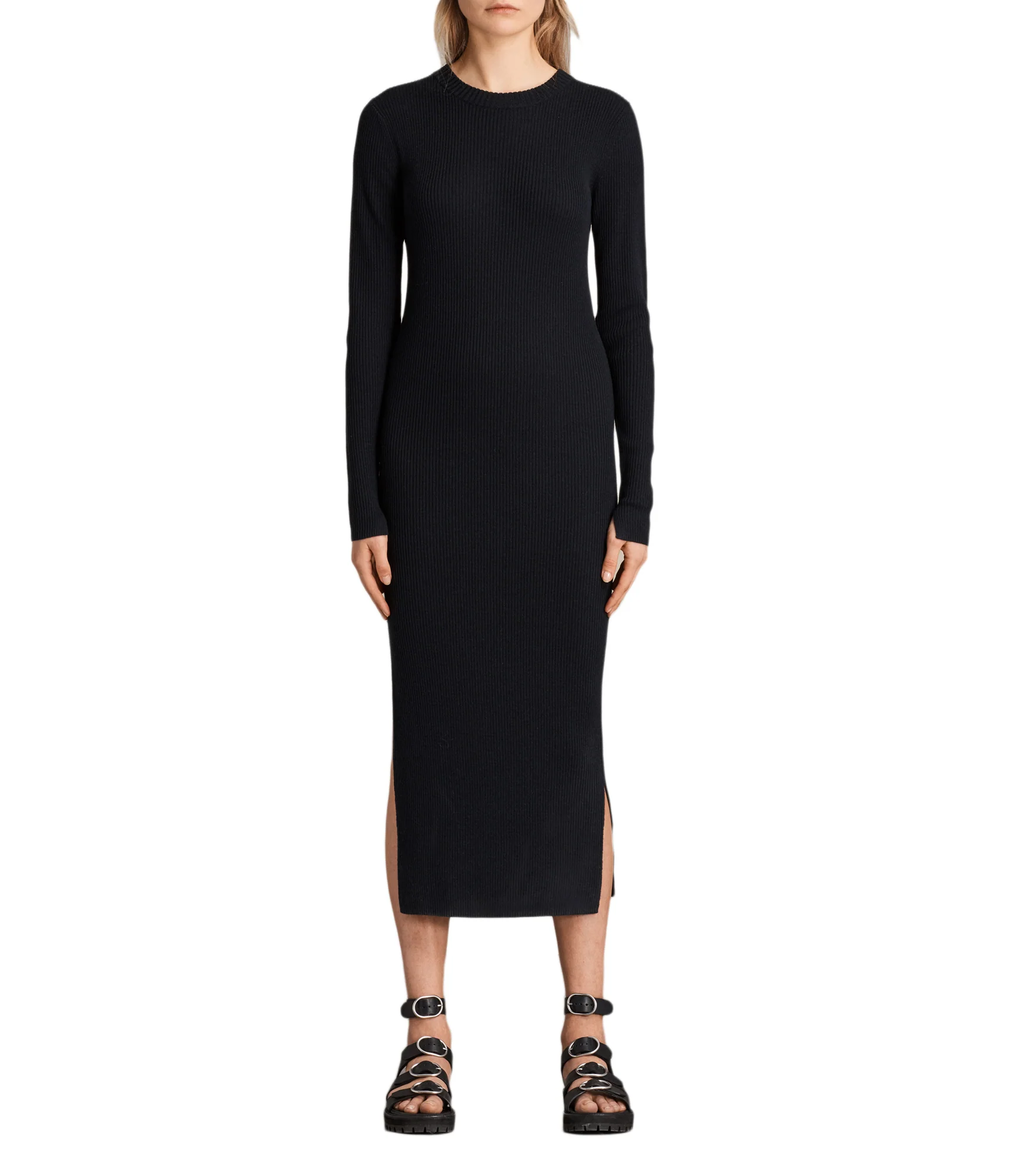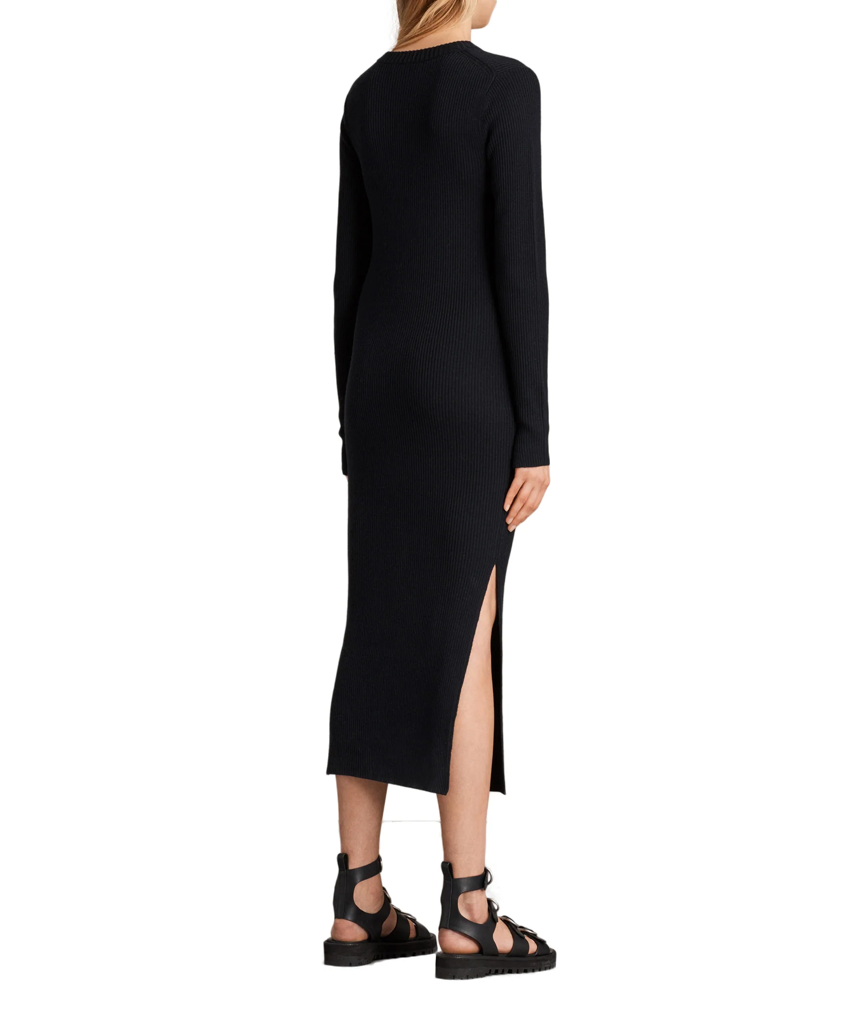 VESTIDO LAVINE CREW NECK, MARCA ALLSAINTS. VESTIDO LARGO CUELLO REDONDO, MANGAS LARGAS CON ABERTURA EN LOS PUÑOS, ABERTURAS EN LOS LATERALES INFERIORES. 100% LANA . LAVAR A MÁQUINA AL REVÉS.
