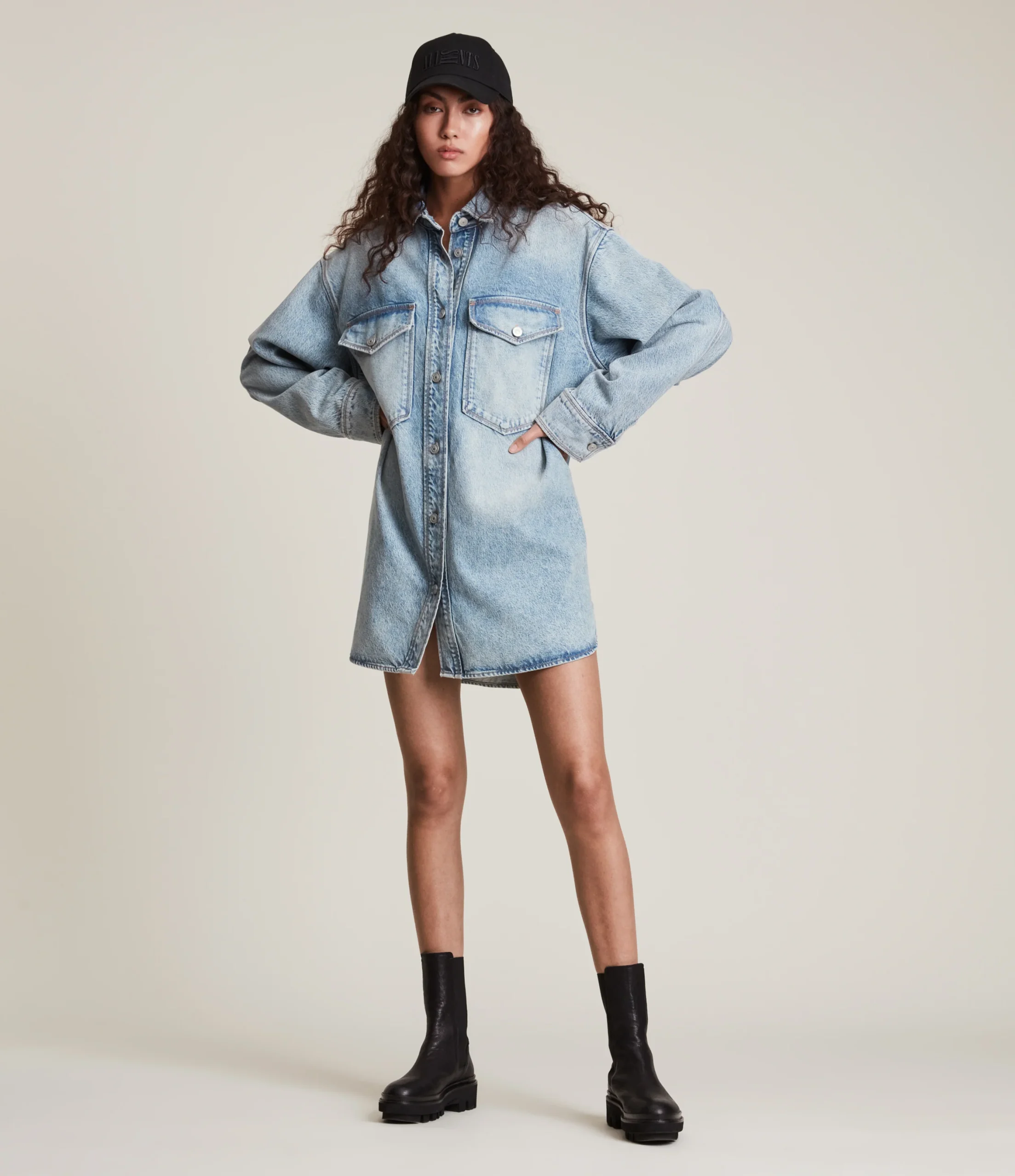 Vestido Lily Shacket Indigo, marca AllSaints. Composición: 43% lyocell 40% cotton (recycled) 17% cotton