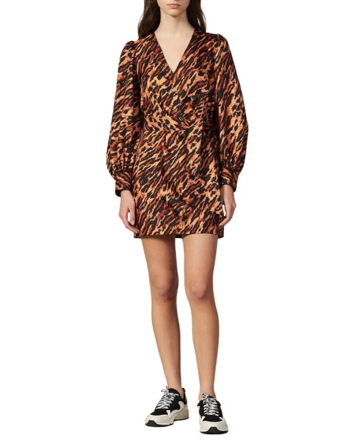 VESTIDO CORTO MANGA LARGA, ESCOTE V EN ANIMAL PRINT, MARCA SANDRO. 100% SEDA. LIMPIEZA EN SECO PROFESIONAL. REVISAR ETIQUETA INTERNA DE LAVADO PARA MÁS INFORMACIÓN.