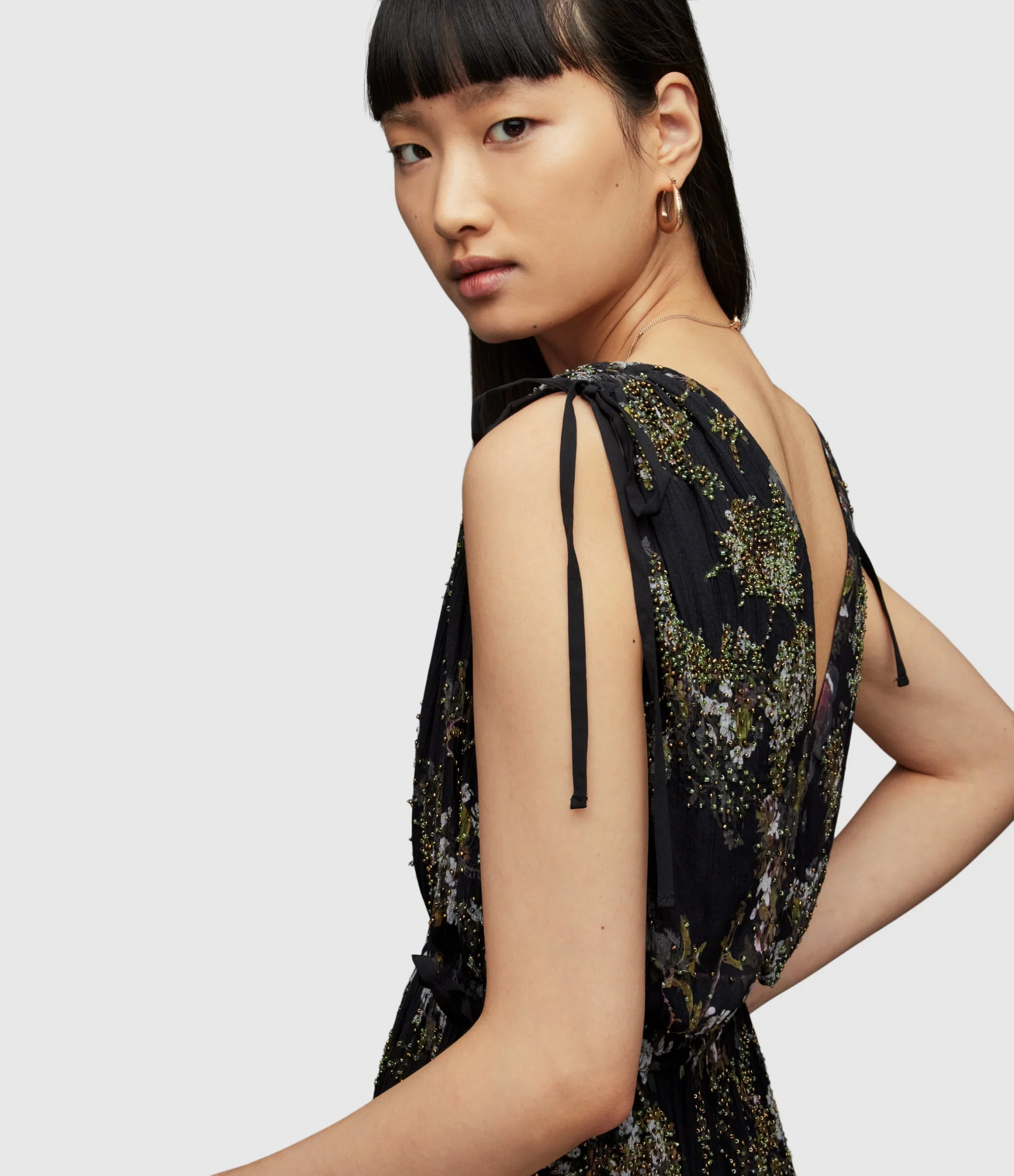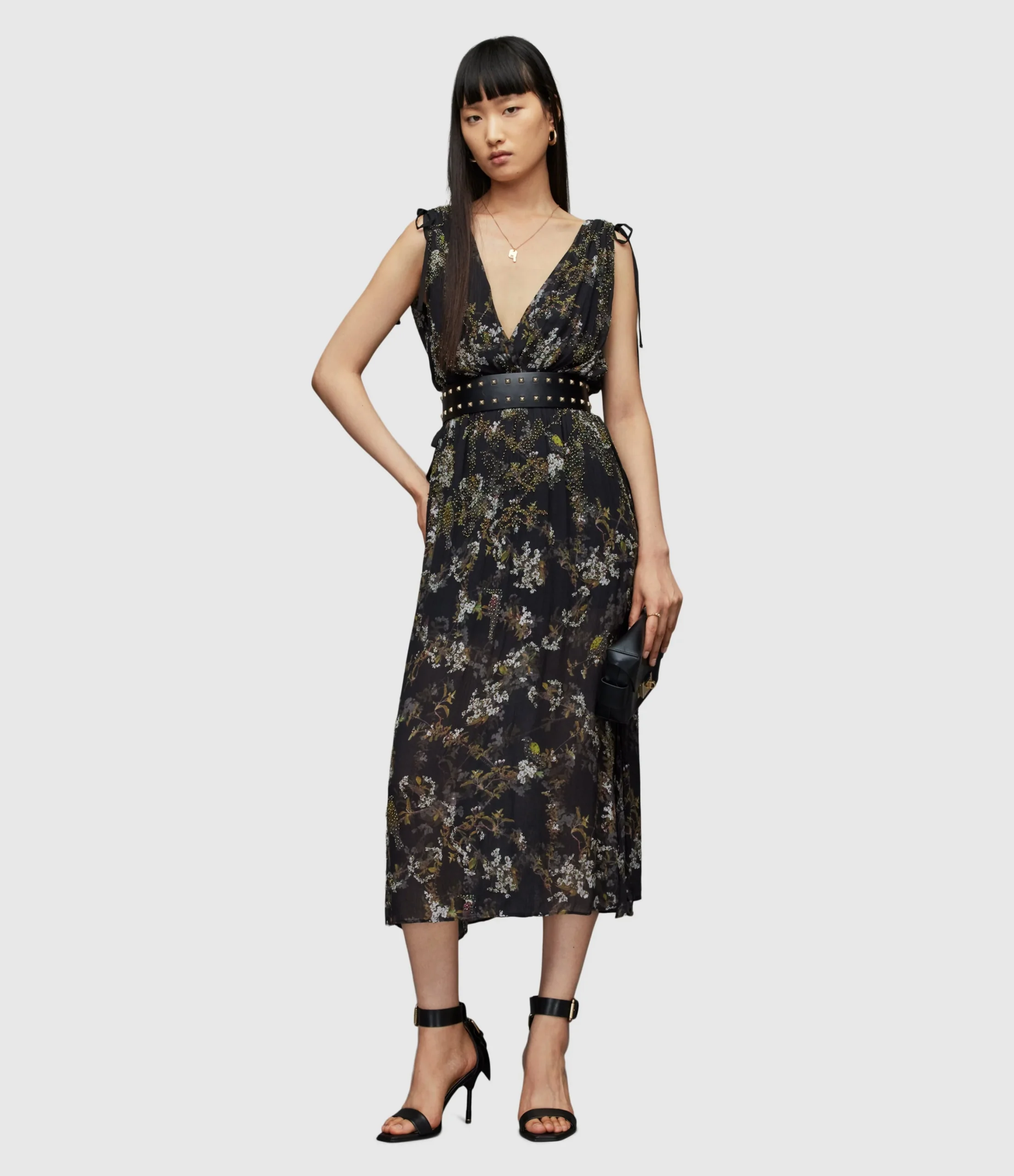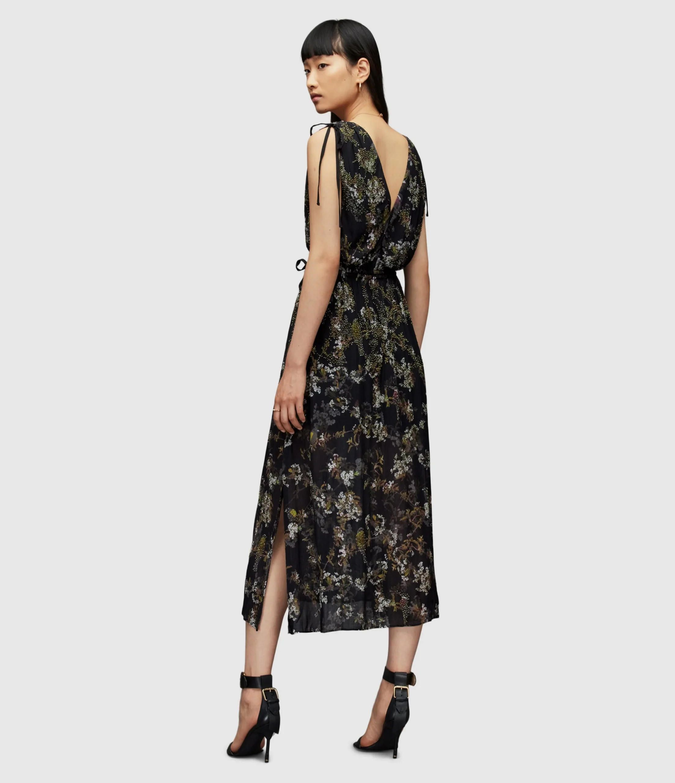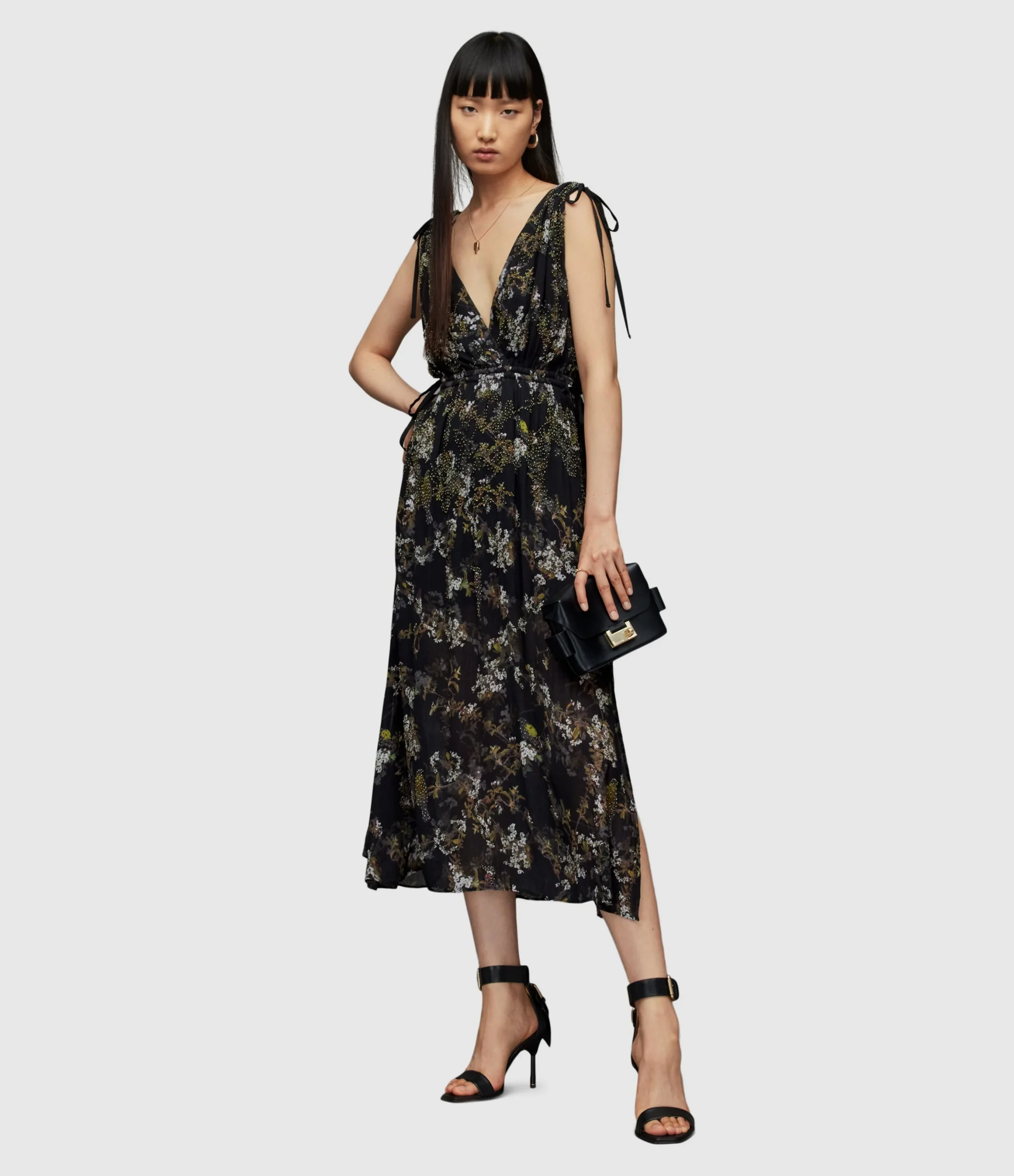 Vestido Maia Viola Negro para mujer, marca AllSaints. COMPOSICIÓN Y LAVADO: Consultar etiqueta interna.