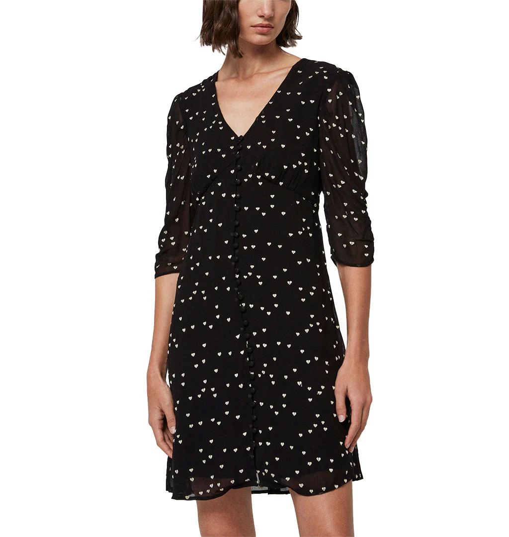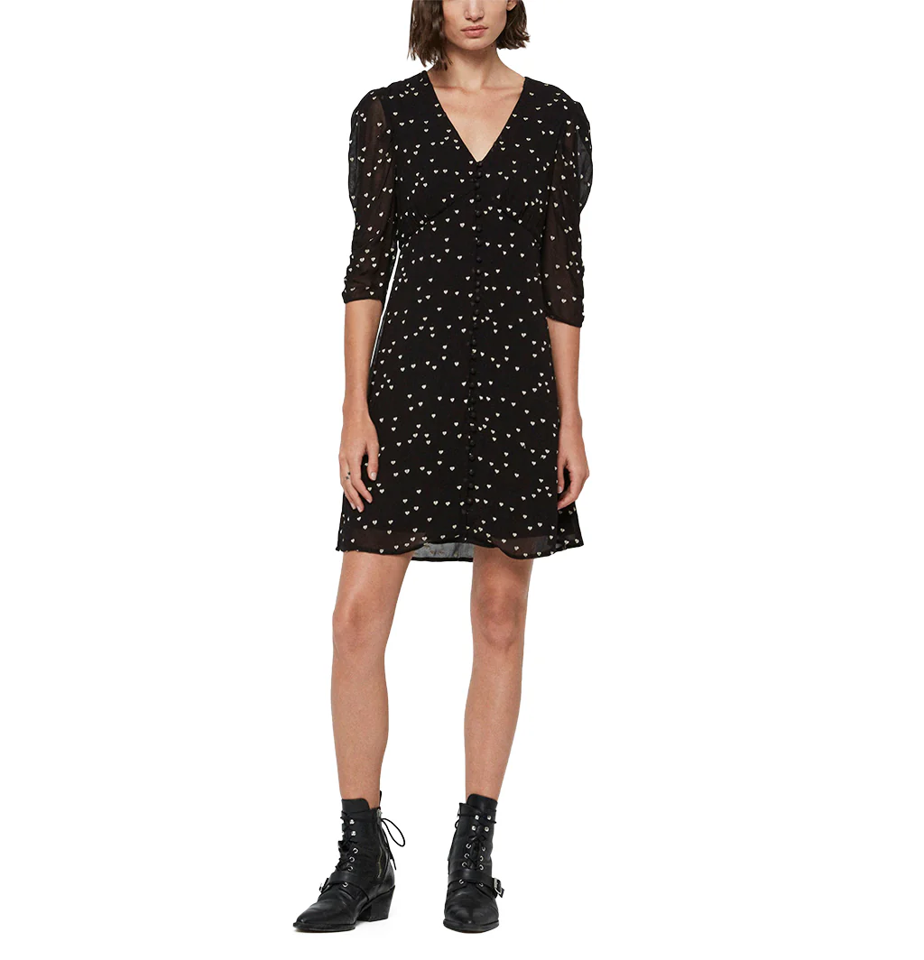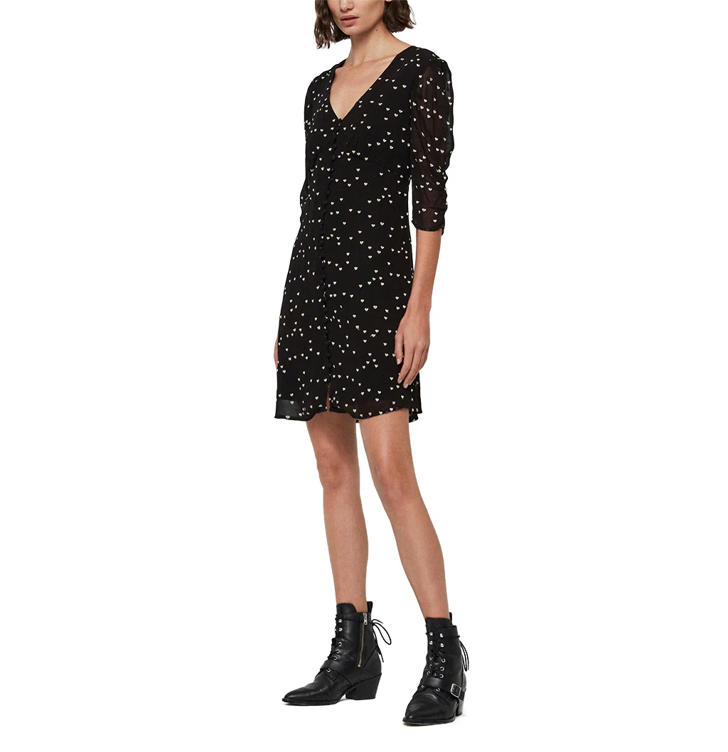 VESTIDO MALIE HEARTS DRESS NEGRO, MARCA ALLSAINTS. INSTRUCCIONES DE LAVADO: CONSULTAR ETIQUETA INTERNA. COMPOSICIÓN: CONSULTAR ETIQUETA INTERNA.