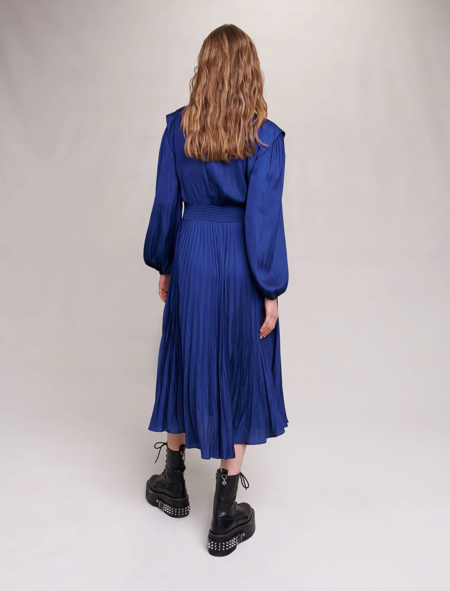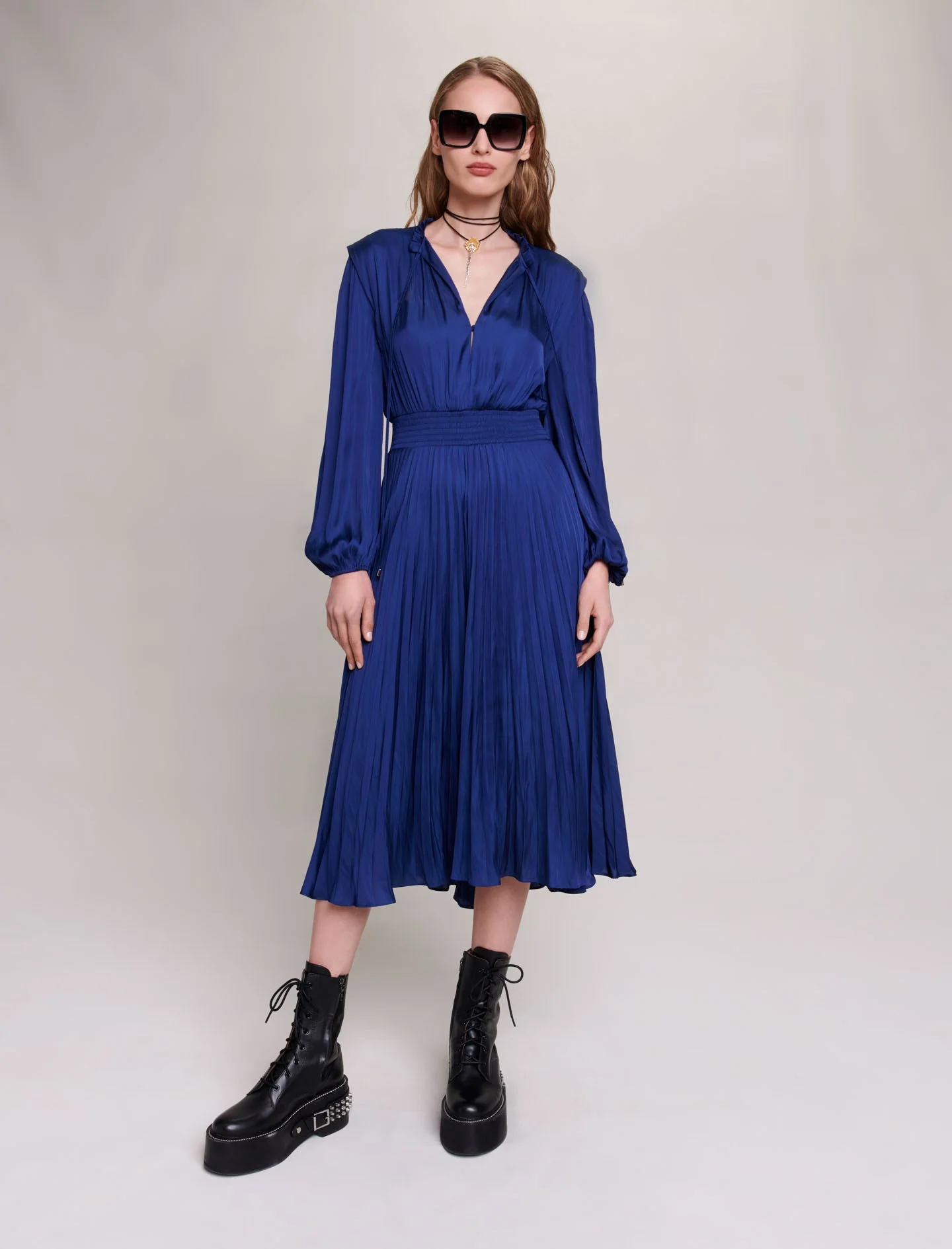 fabricado íntegramente con poliéster reciclado.• Vestido midi plisado y satinado