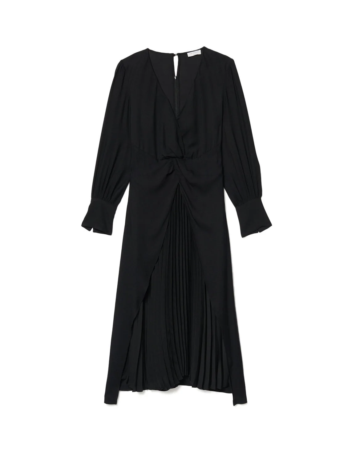VESTIDO LARGO, MANGA LARGA, ESCOTE V Y DRAPEADO FRONTAL, MARCA SANDRO. 100% VISCOSA. LIMPIEZA EN SECO PROFESIONAL. REVISAR ETIQUETA INTERNA DE LAVADO PARA MÁS INFORMACIÓN.