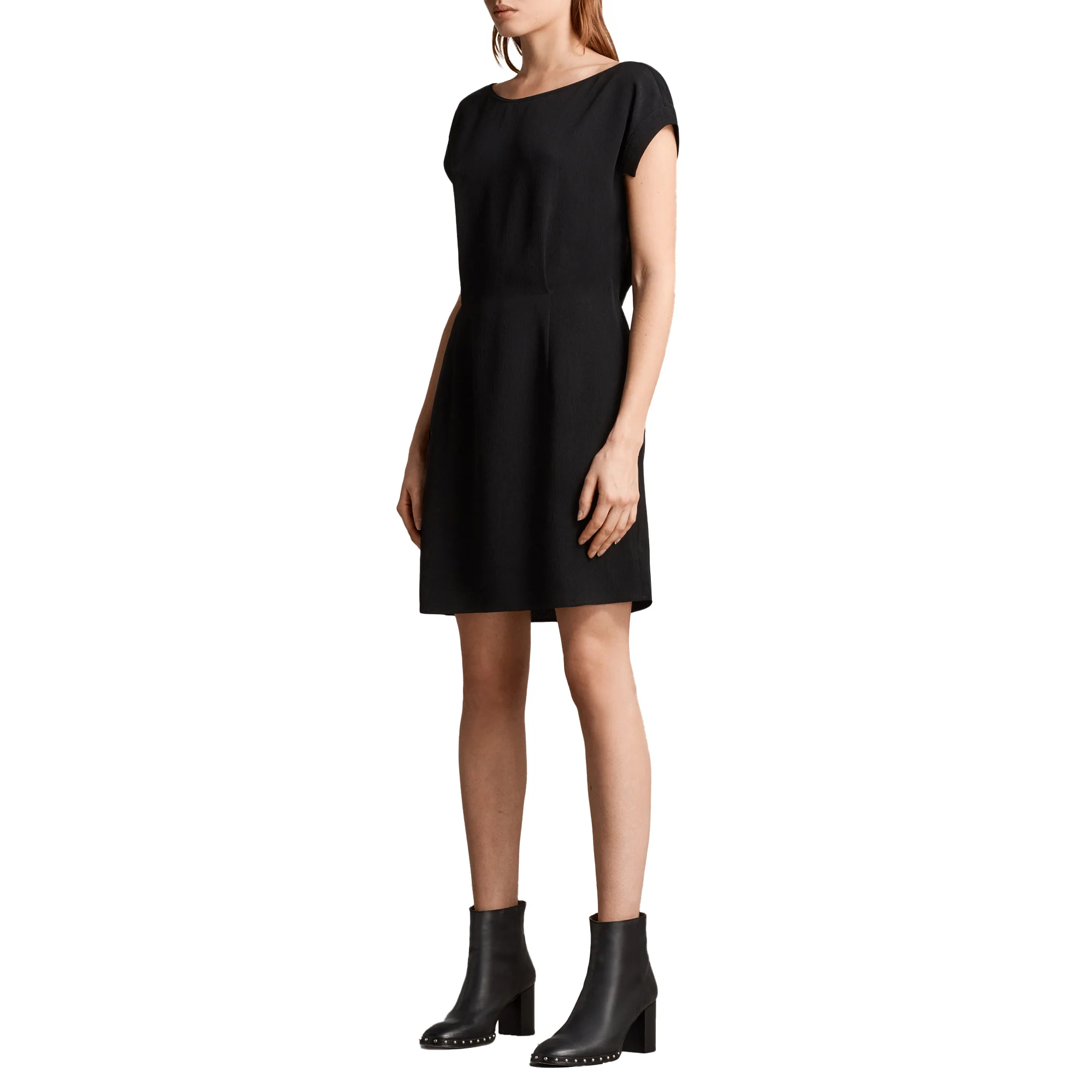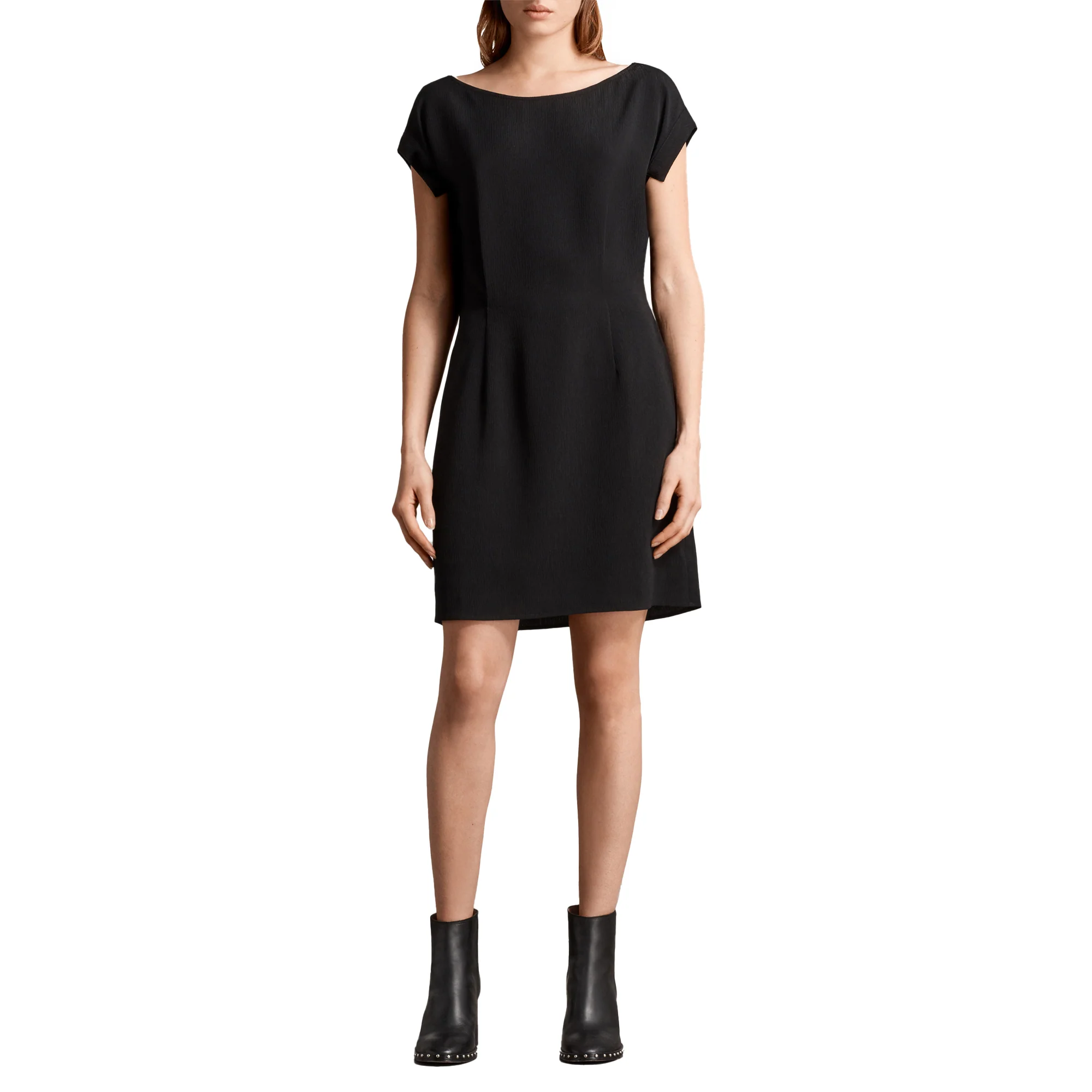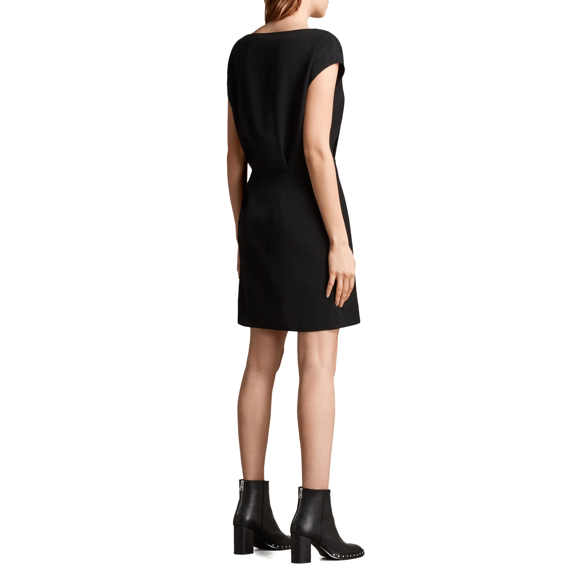 VESTIDO MIRA, MARCA ALLSAINTS. VESTIDO CORTO RECTO SIN MANGAS, CREMALLERA LATERAL OCULTA. 100% POLIÉSTER. LAVADO EN SECO.